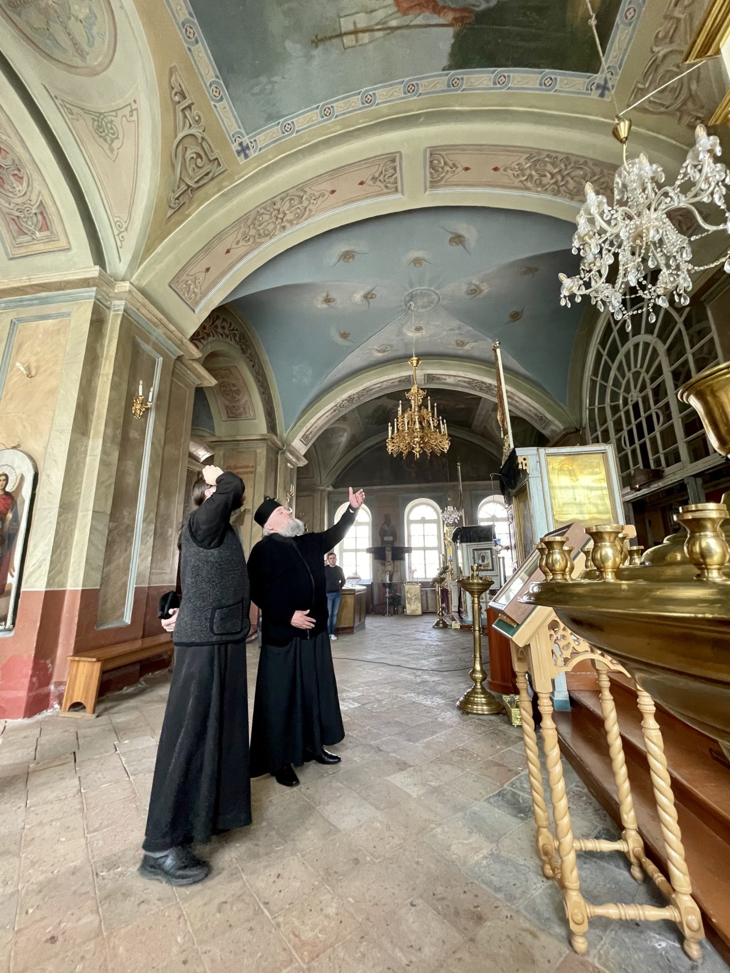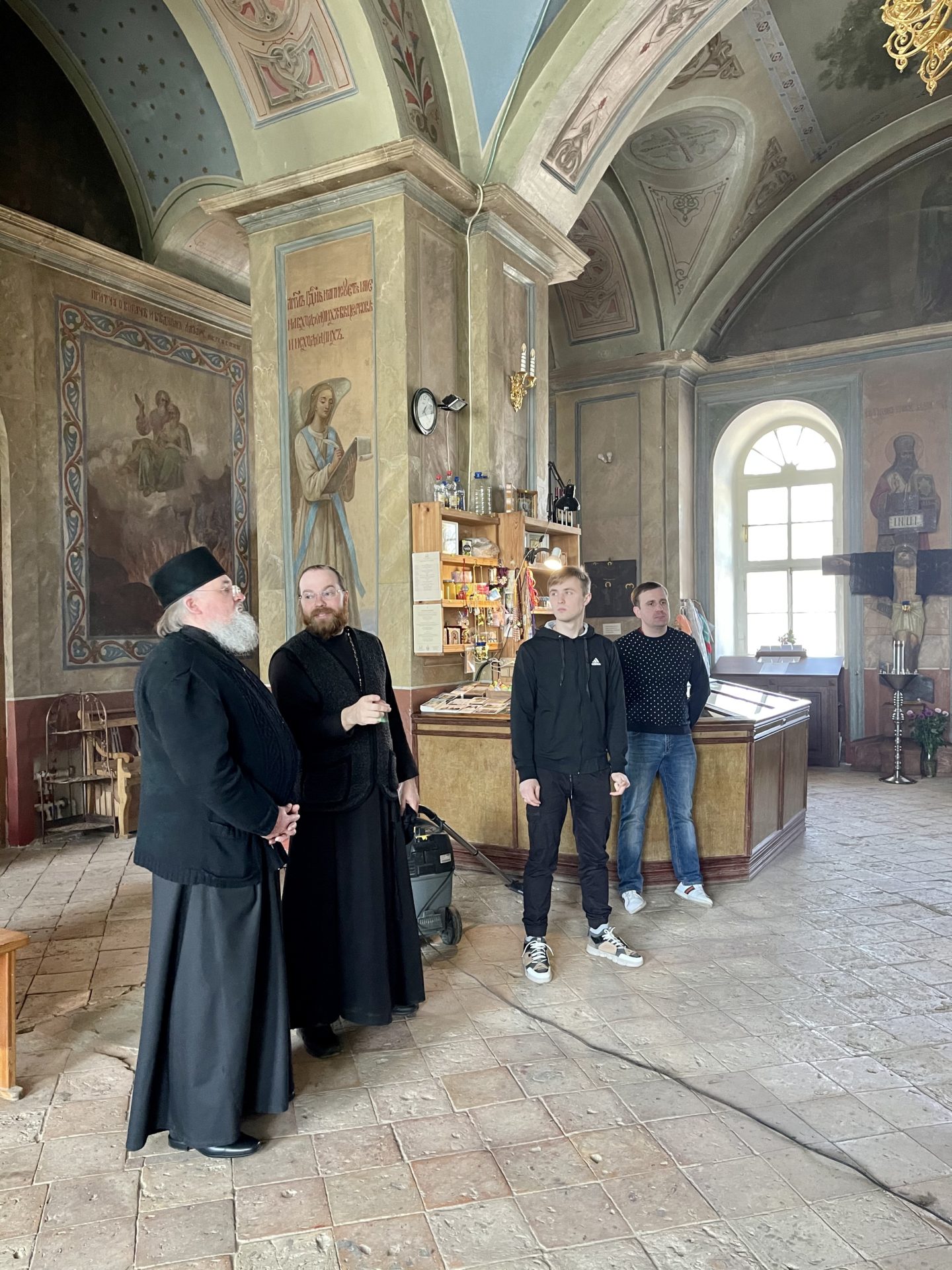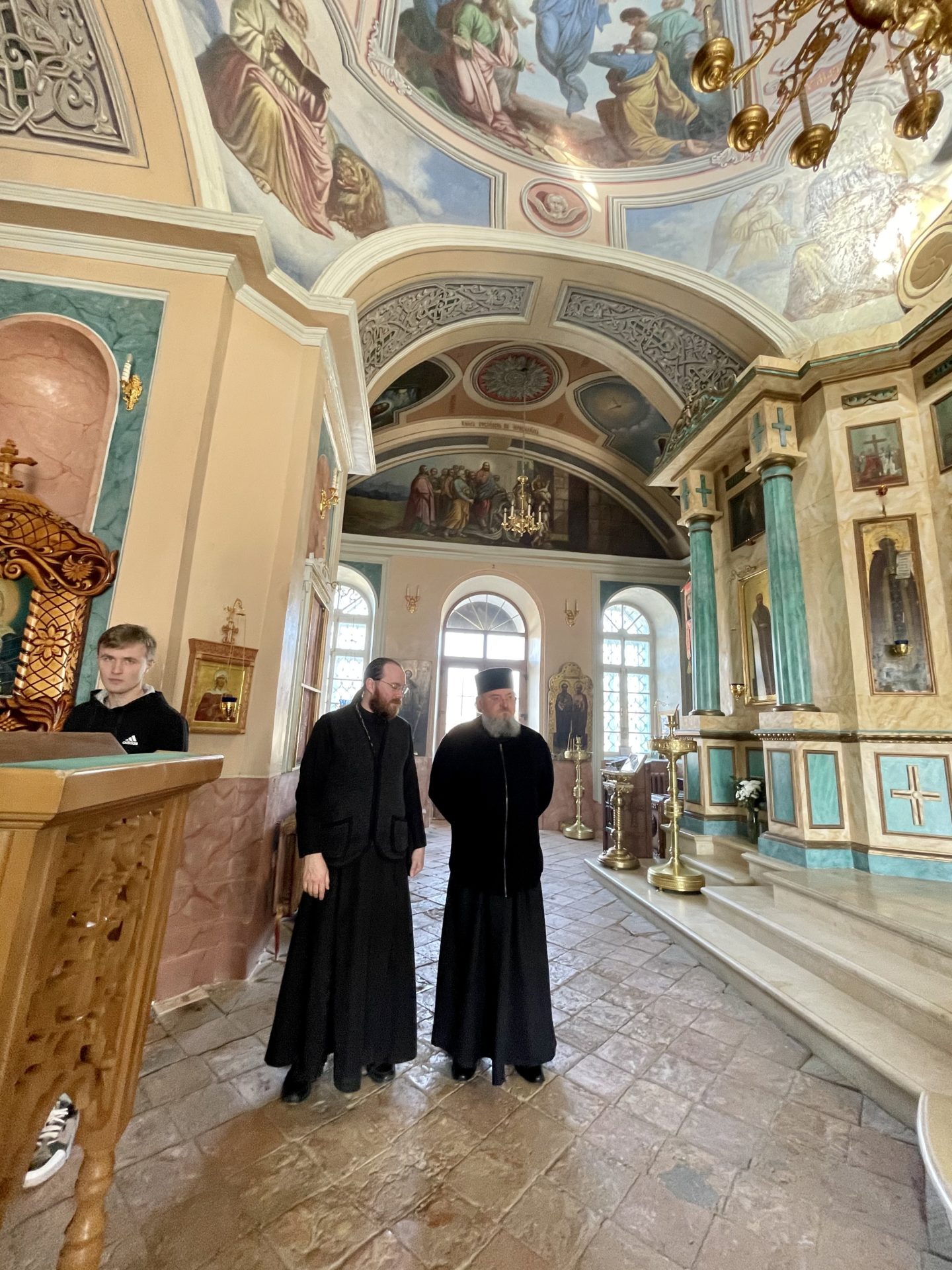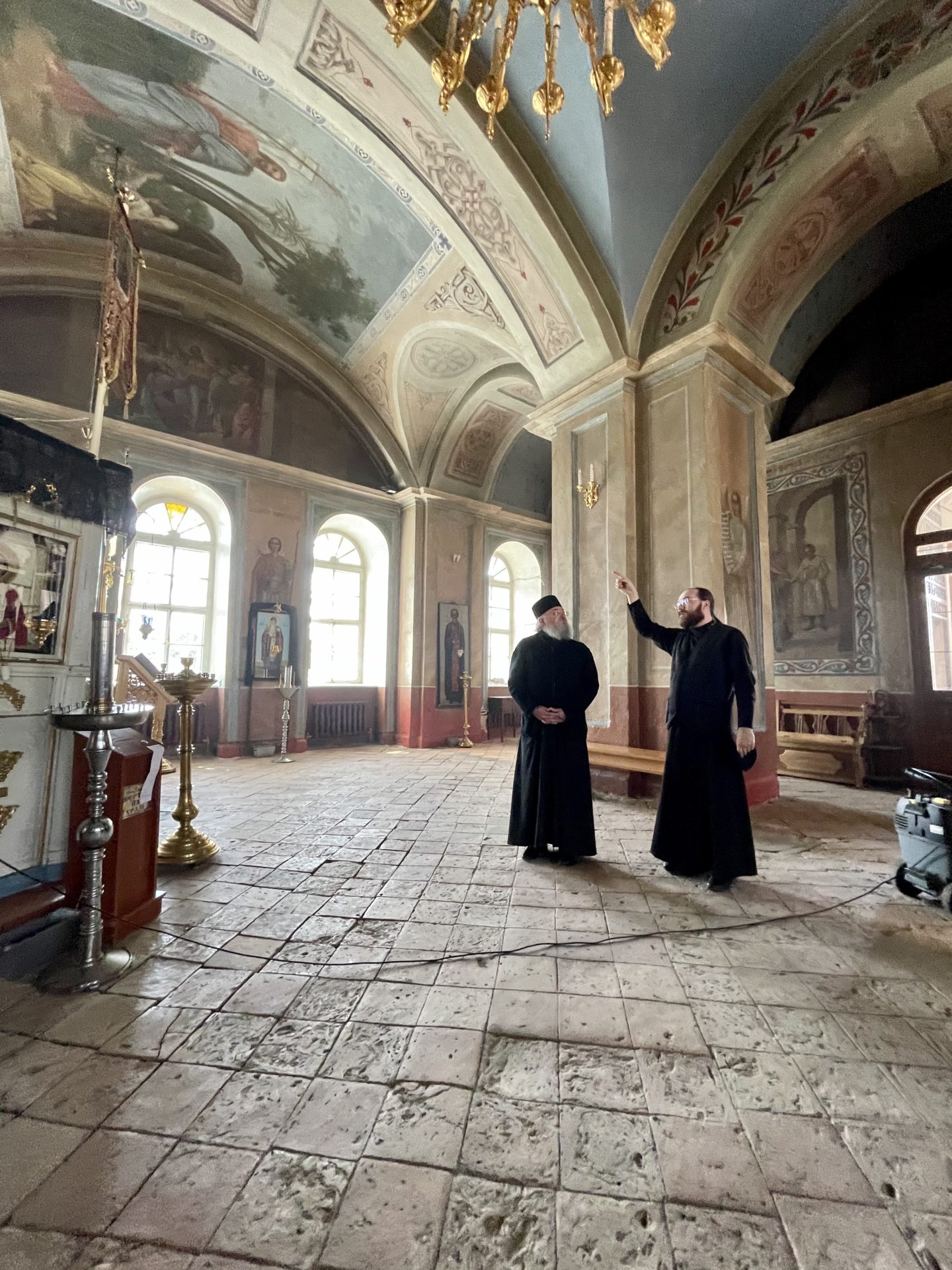 Настоятель храма иерей Тихон Худяков познакомил владыку с текущими работами по реставрации храма и планами на грядущий летний рабочий сезон.