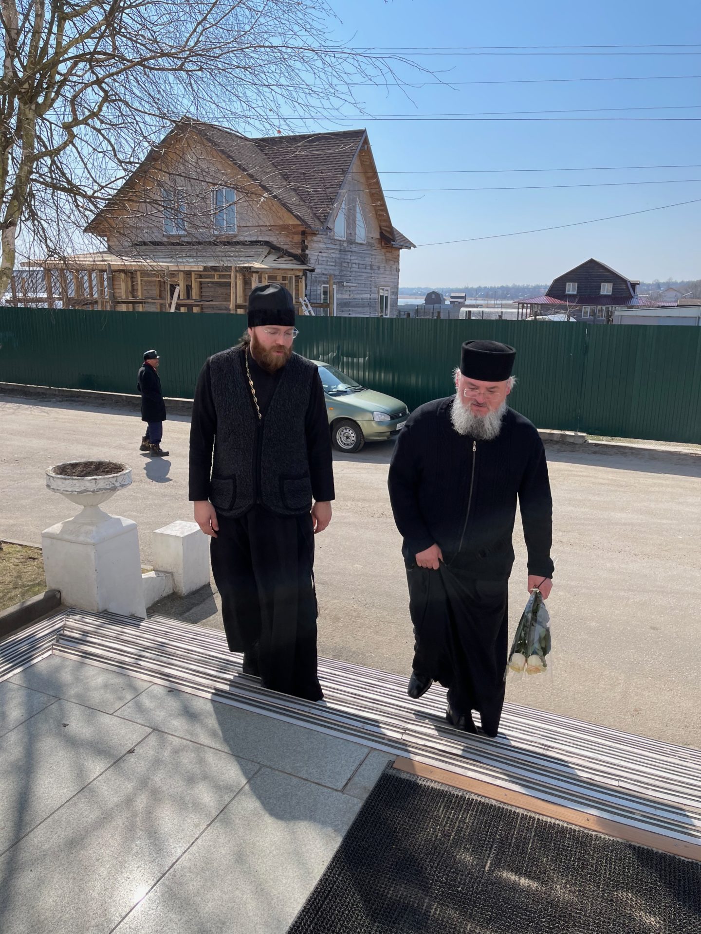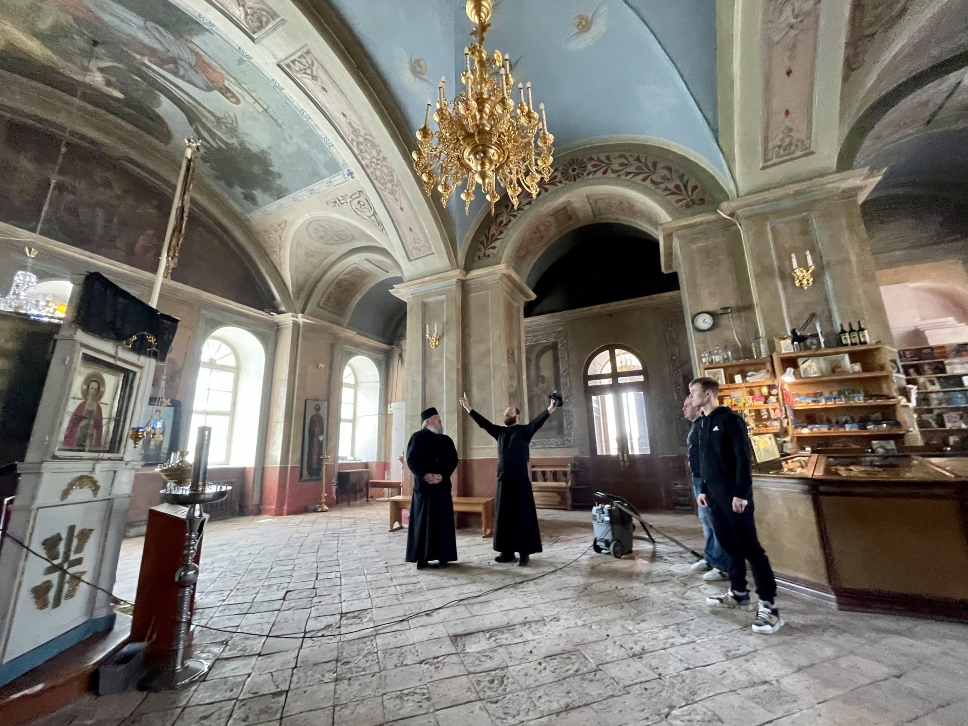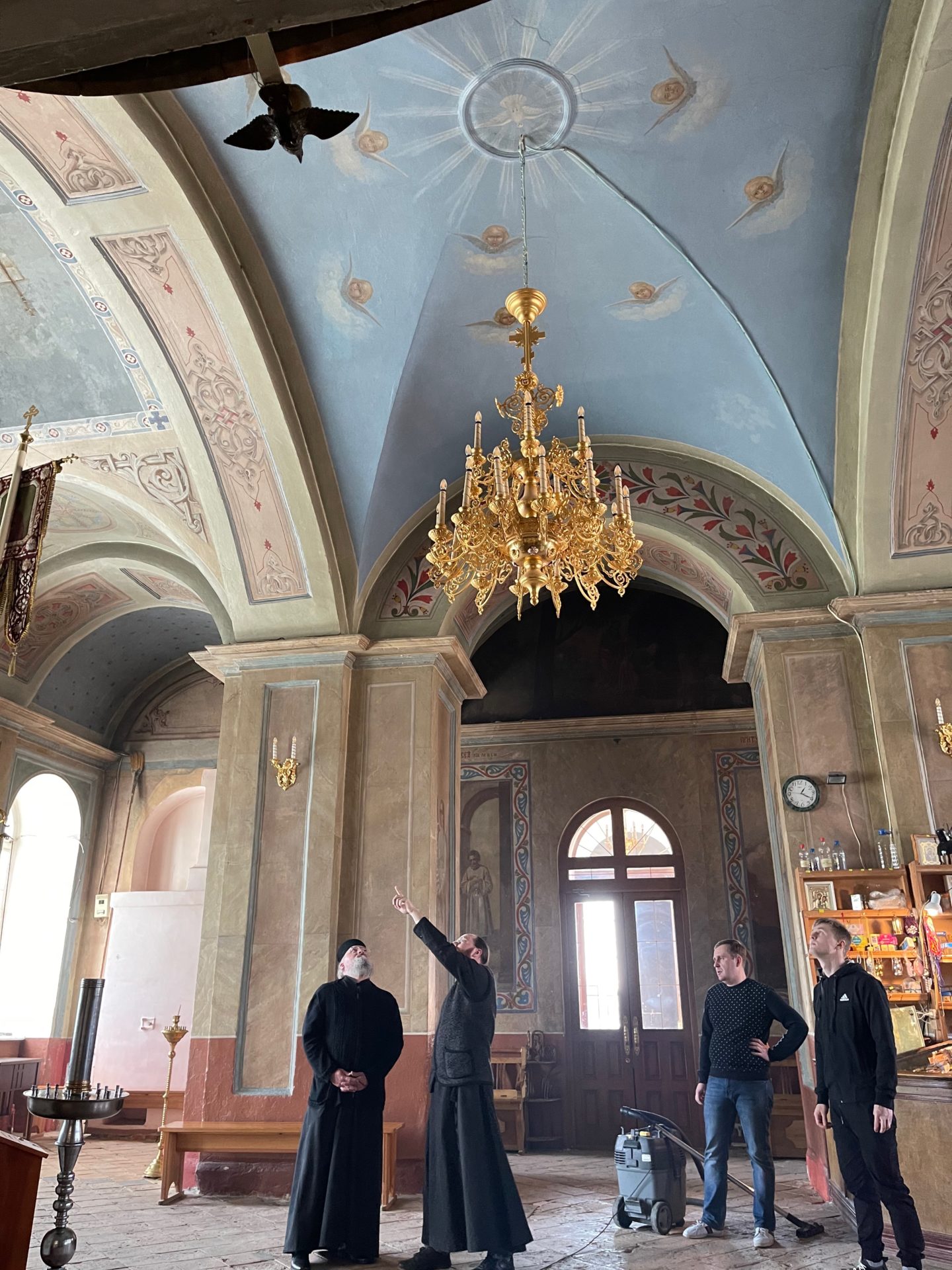 Настоятель храма иерей Тихон Худяков познакомил владыку с текущими работами по реставрации храма и планами на грядущий летний рабочий сезон.