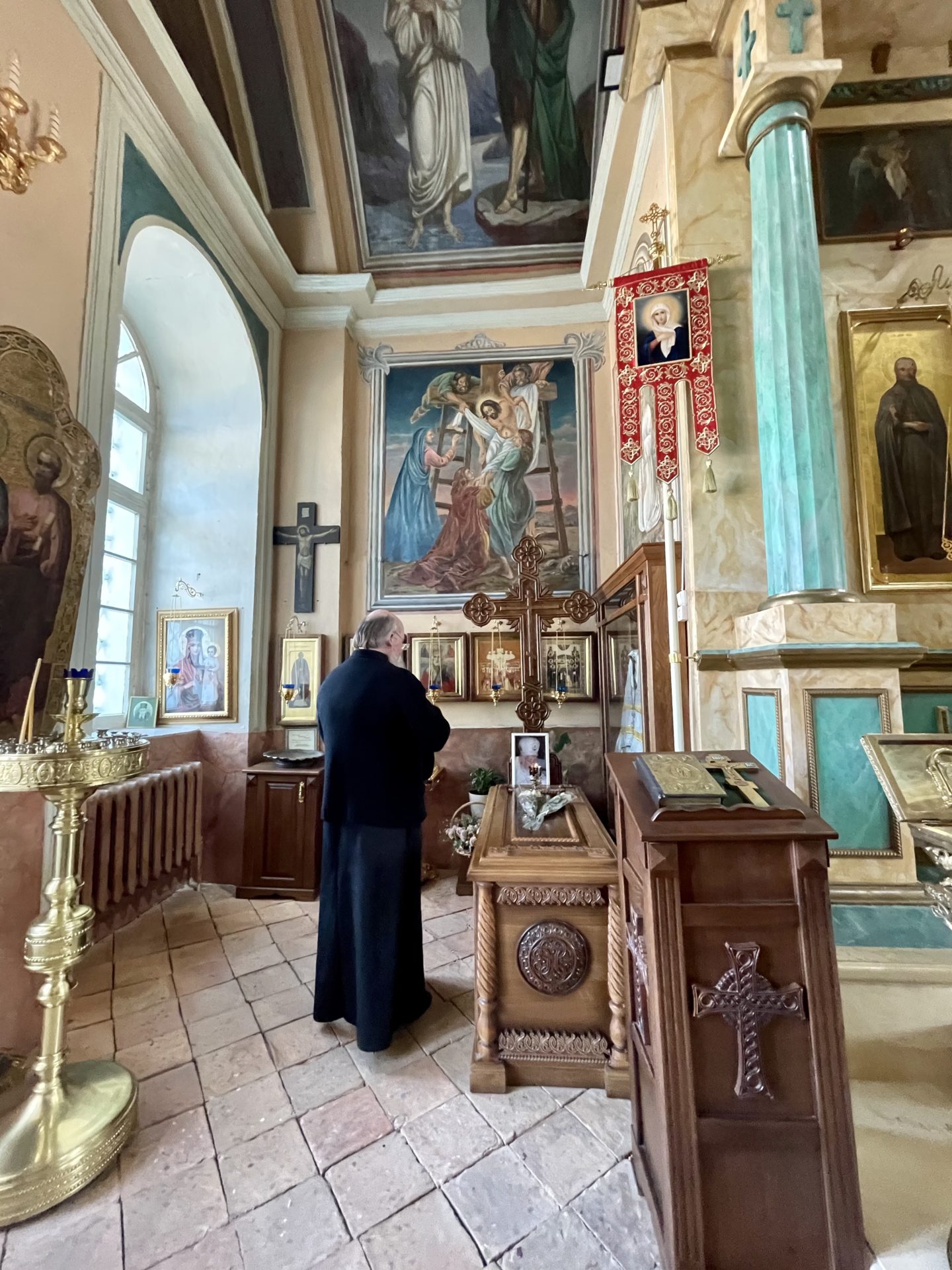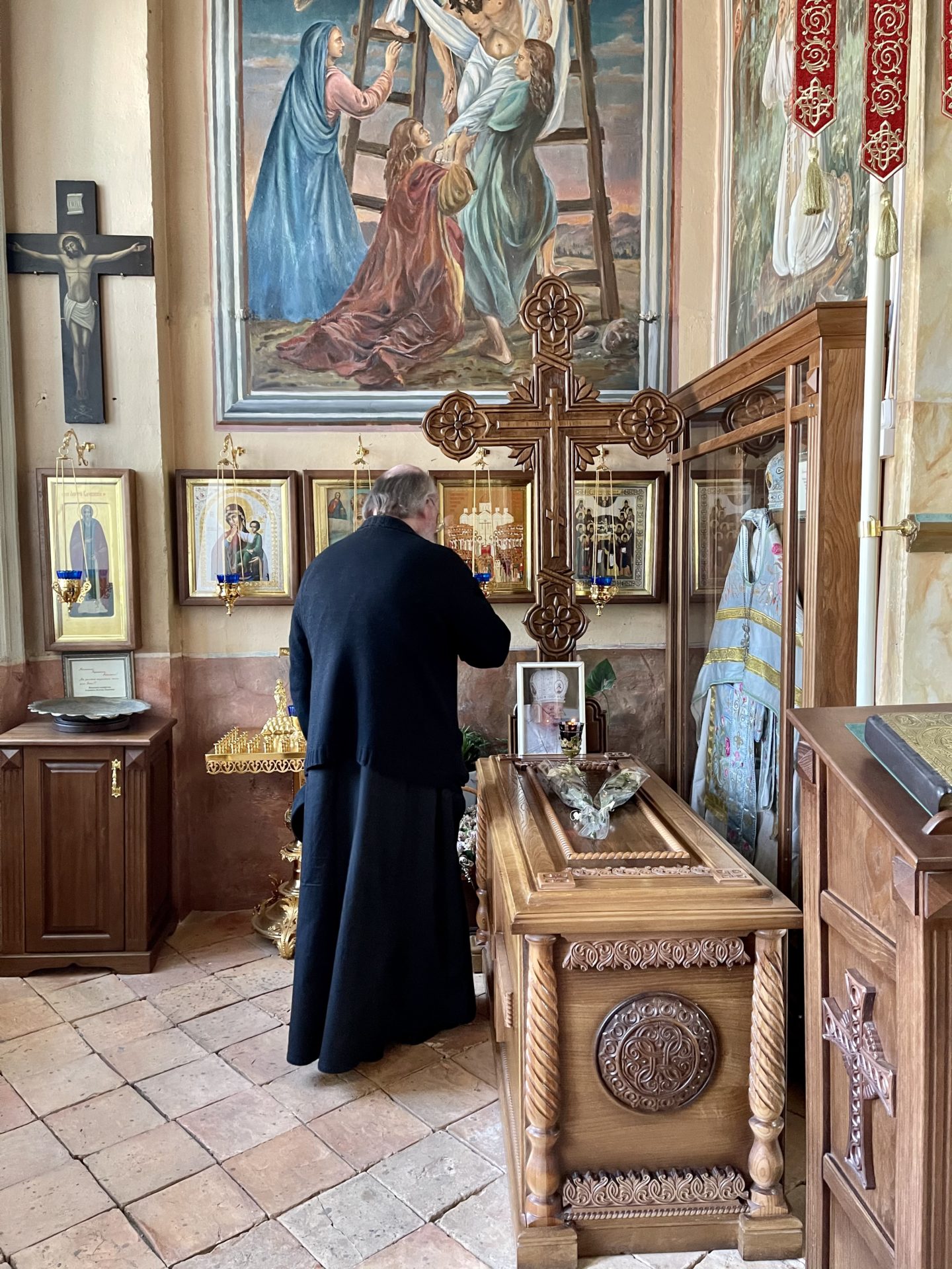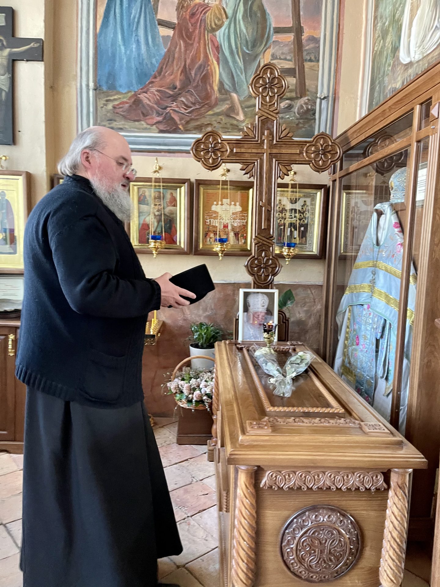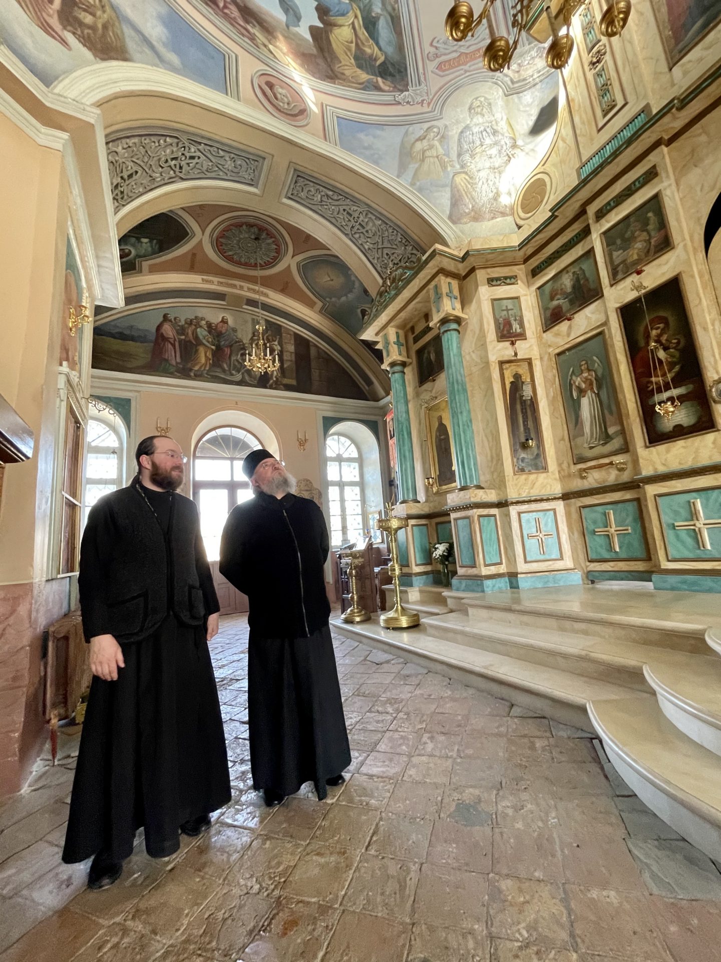 Настоятель храма иерей Тихон Худяков познакомил владыку с текущими работами по реставрации храма и планами на грядущий летний рабочий сезон.