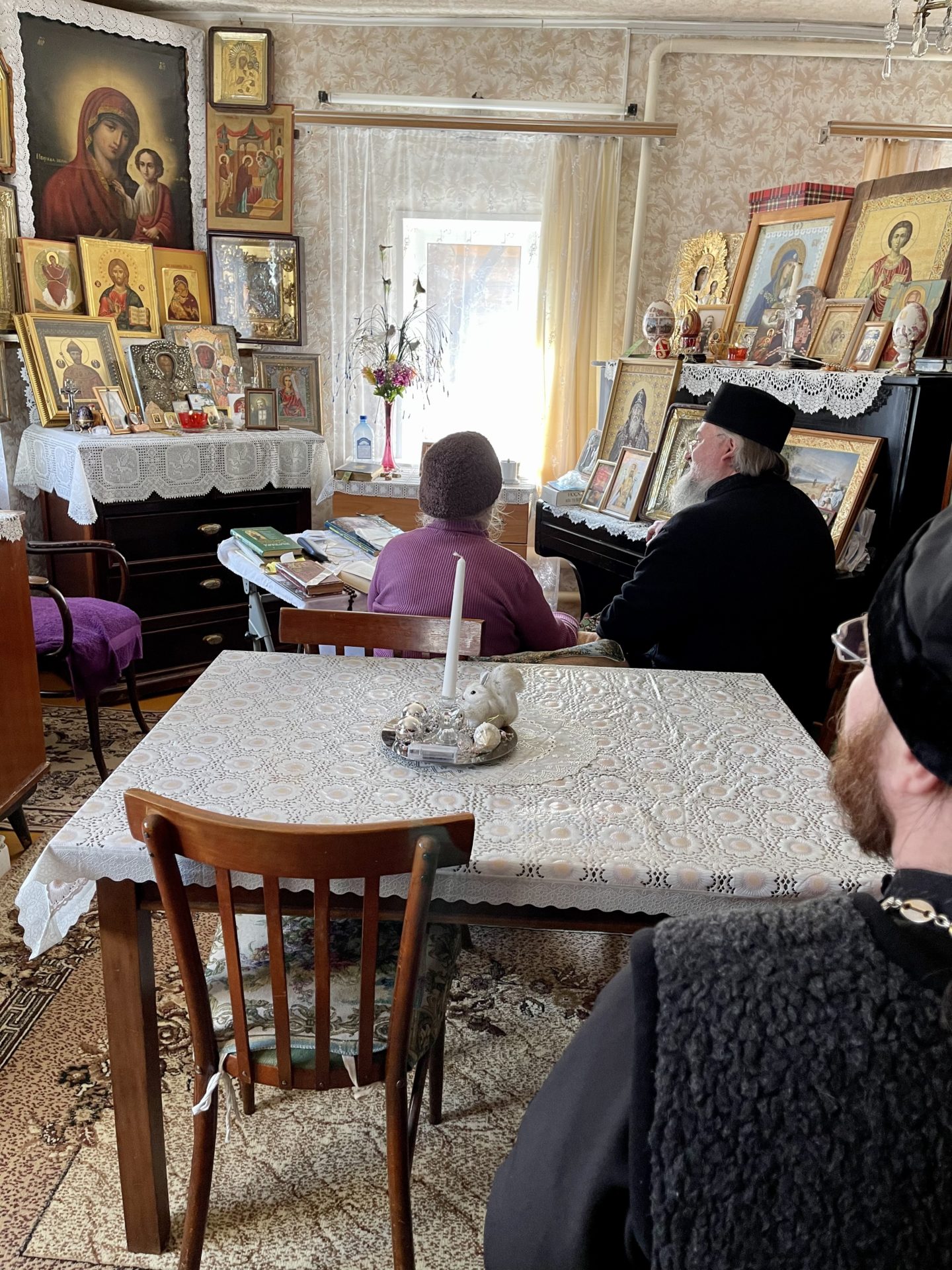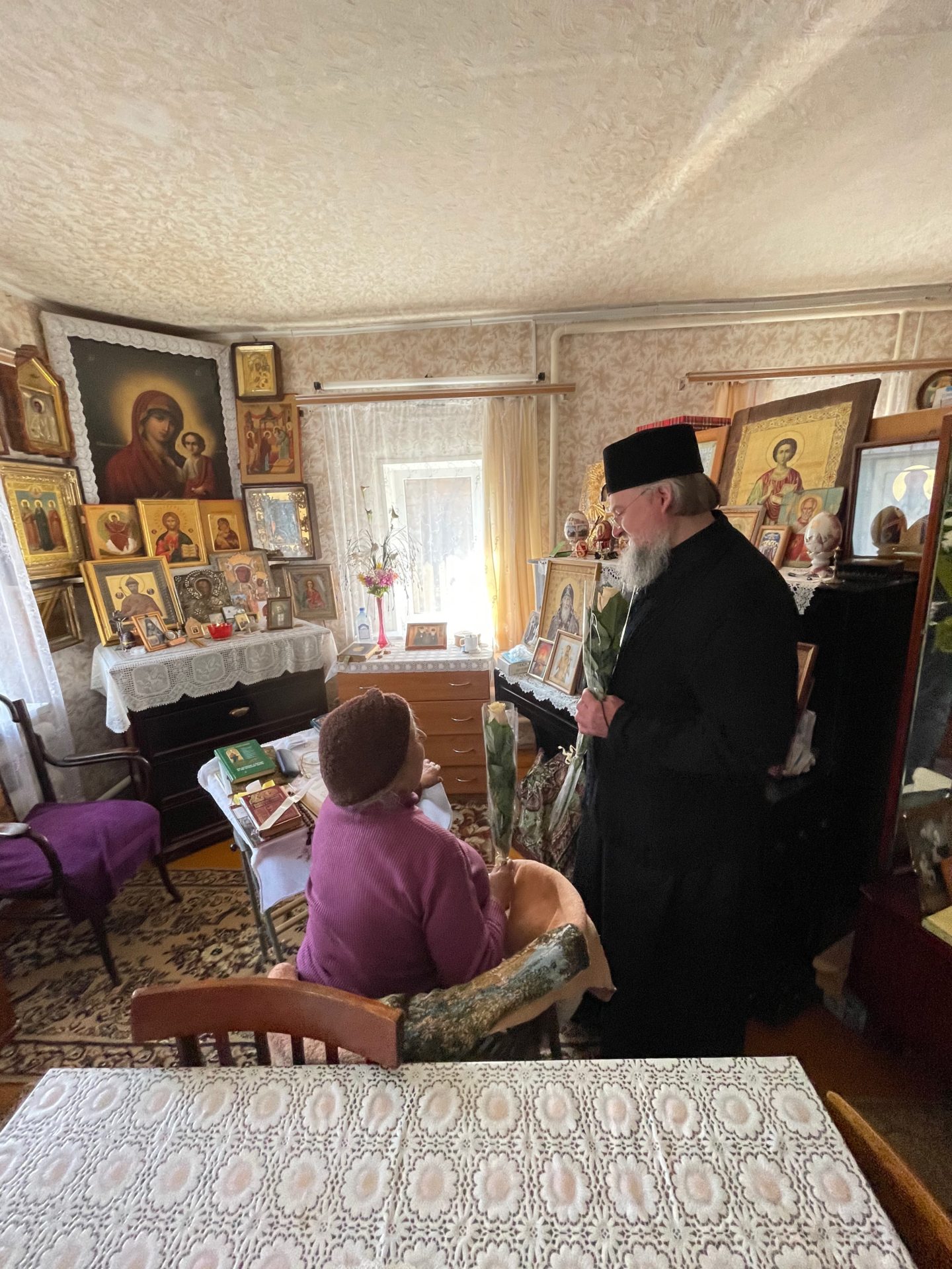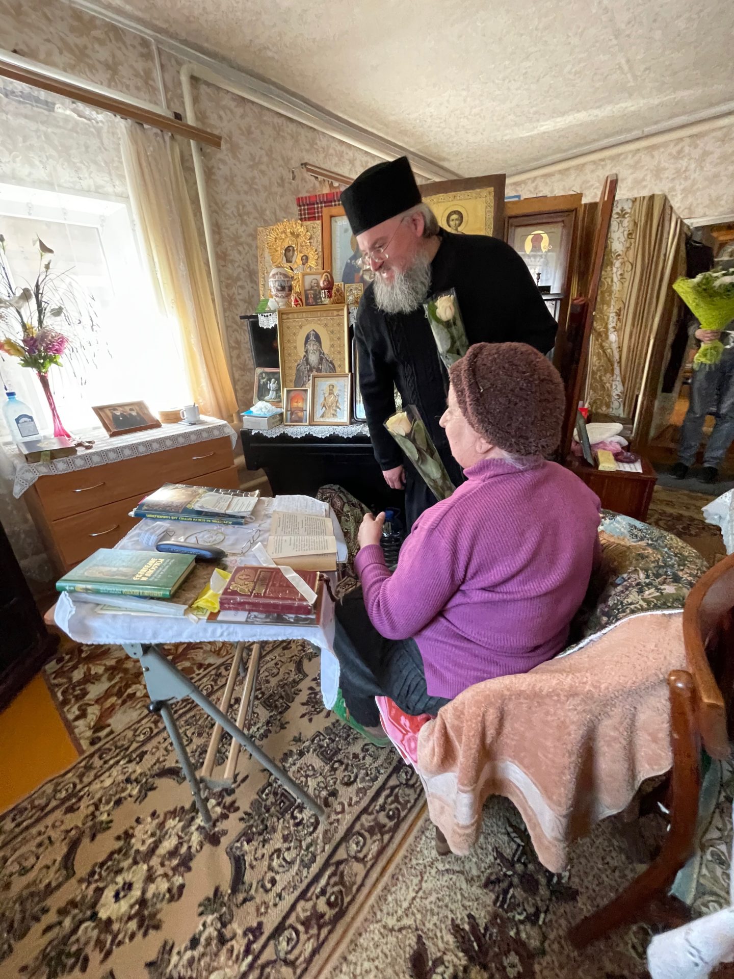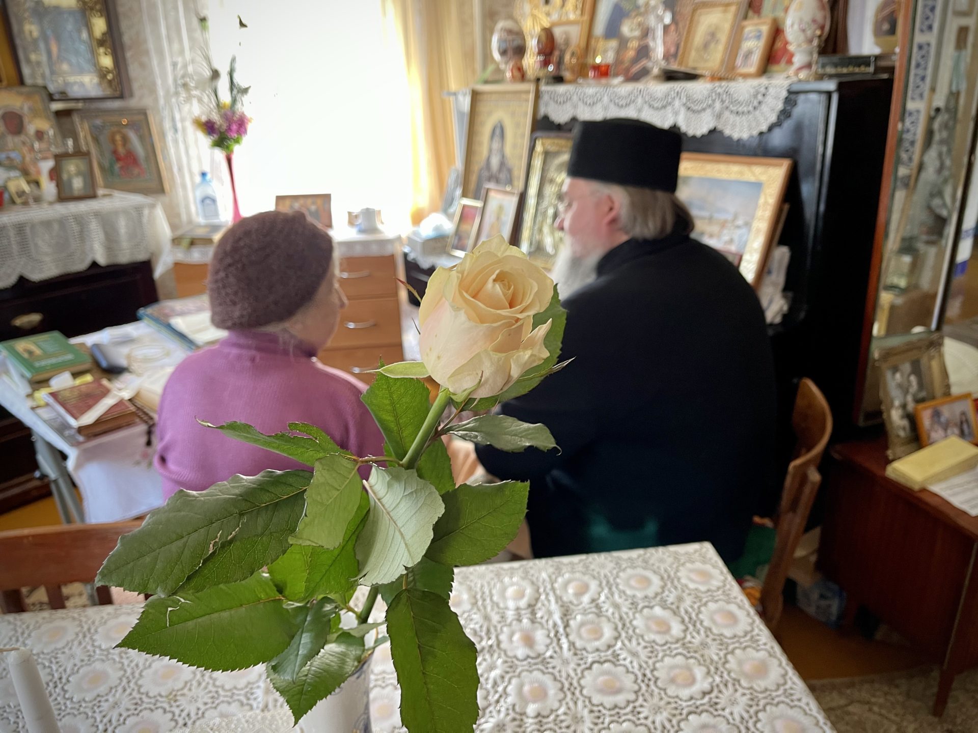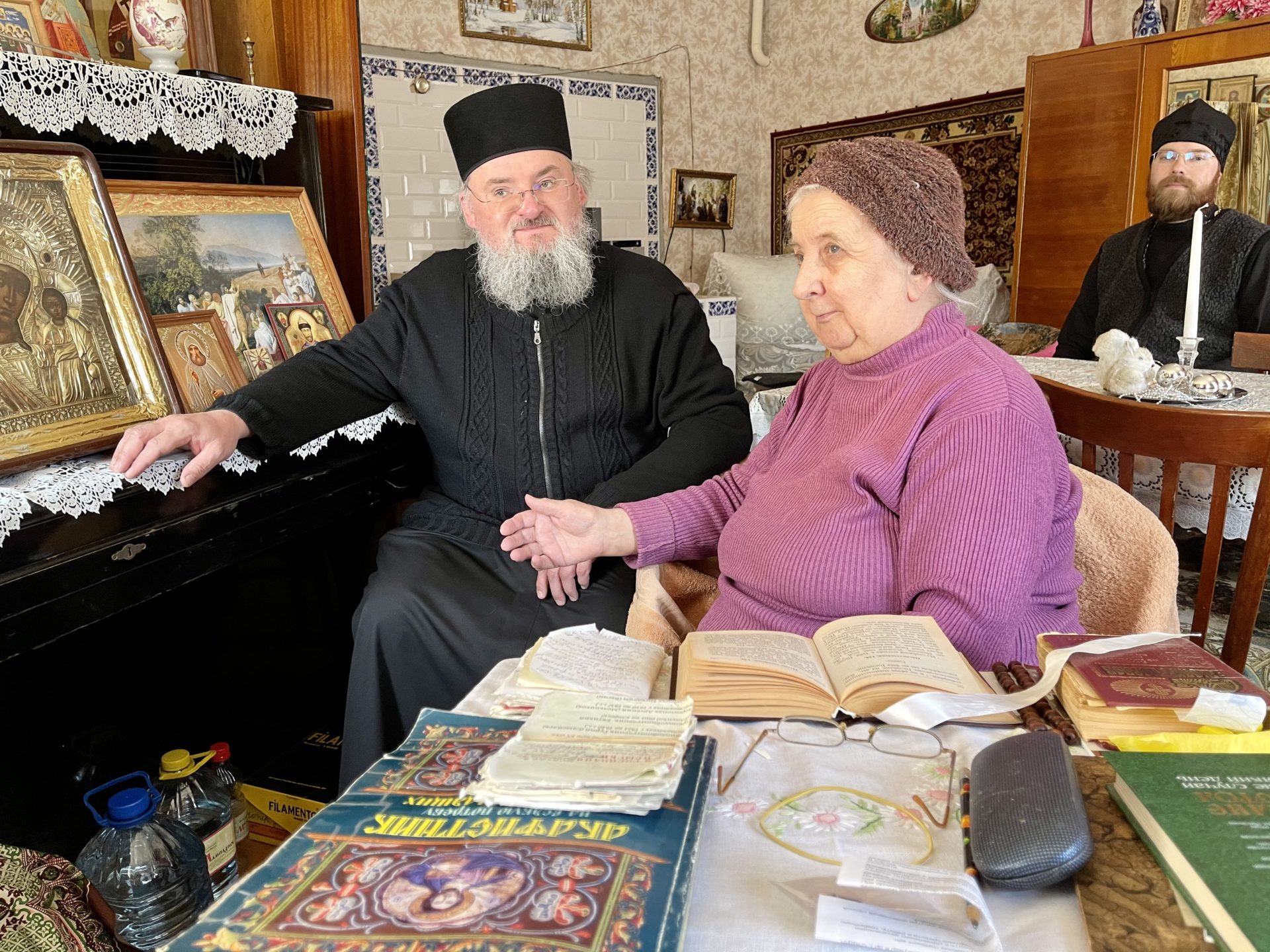 После осмотра храма и знакомства с реставрационными работами, о которых рассказал владыке настоятель храма иерей Тихон Худяков, архипастырь посетил вдову протоиерея Леонтия Никифорова – Тамару Ивановну Никифорову.