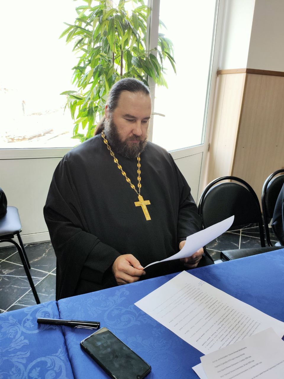 О состоянии дел по составлению реестра и полной описи имущества приходов доложил заведующий канцелярией епархии диакон Евгений Васильев.
