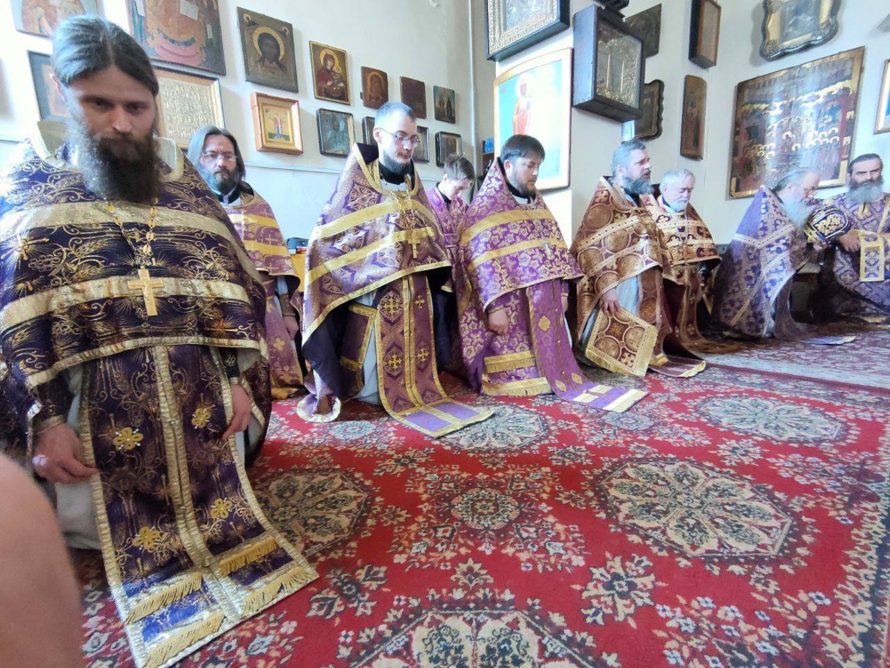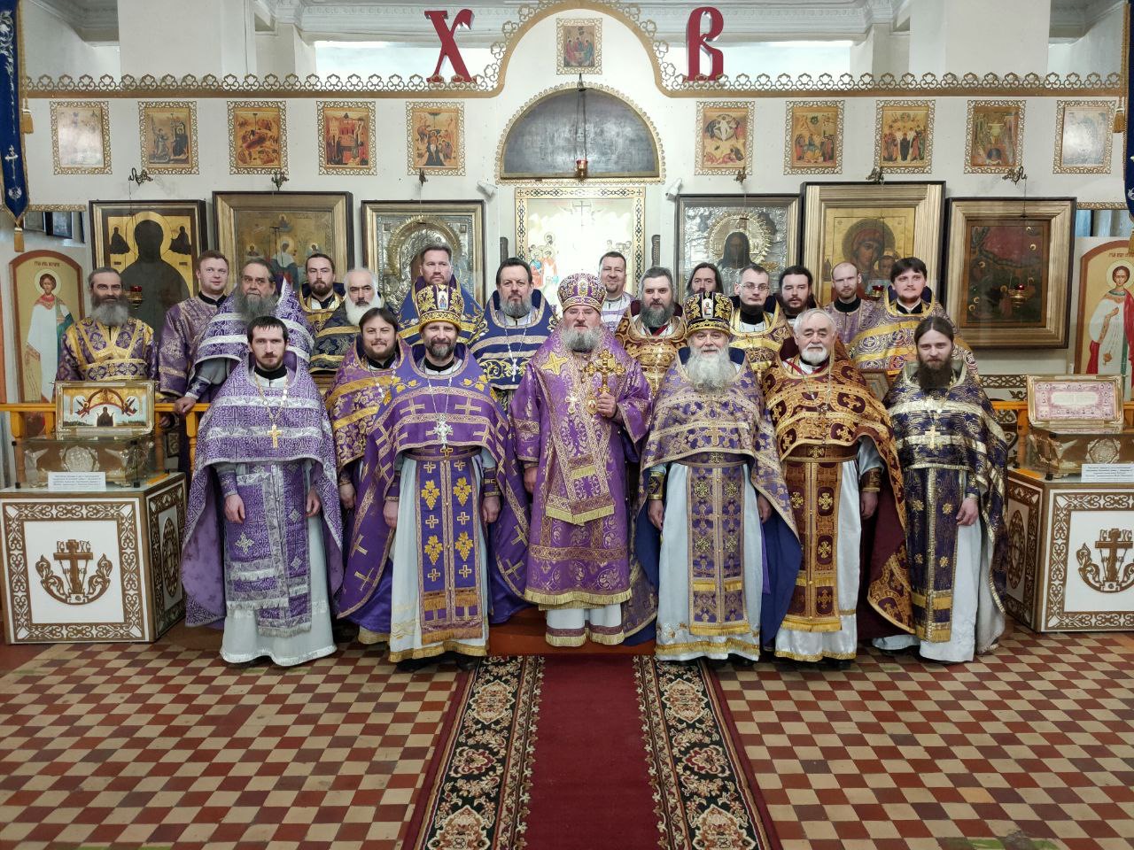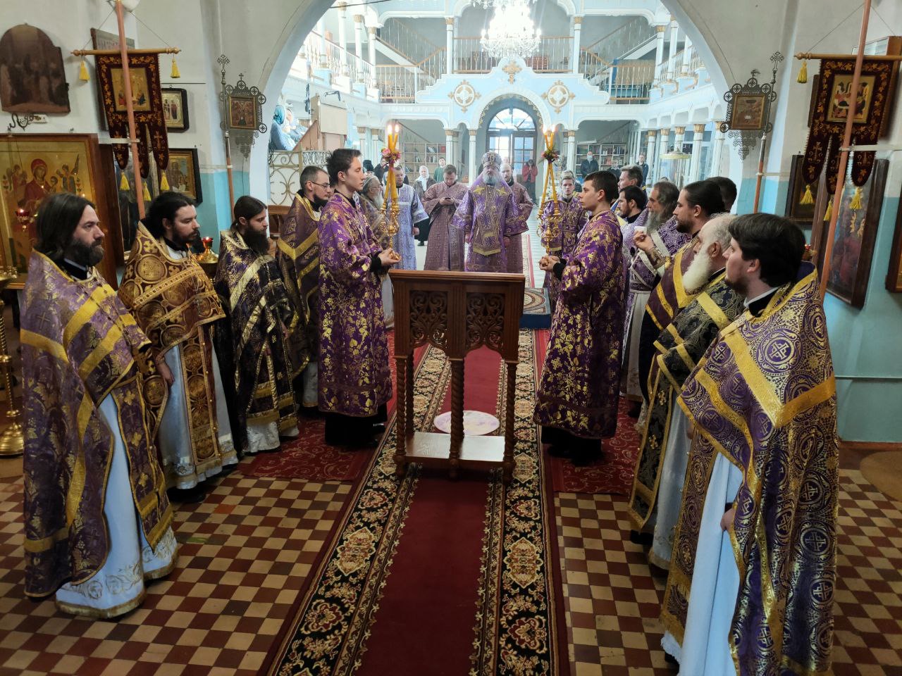 Перед богослужением состоялась великопостная исповедь священнослужителей, которую принял духовник епархии, настоятель собора протоиерей Алексий Жиганов.