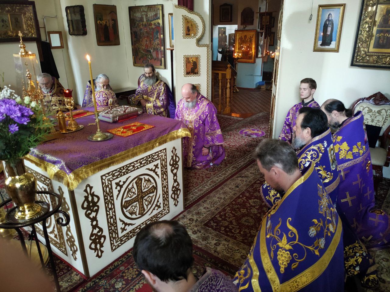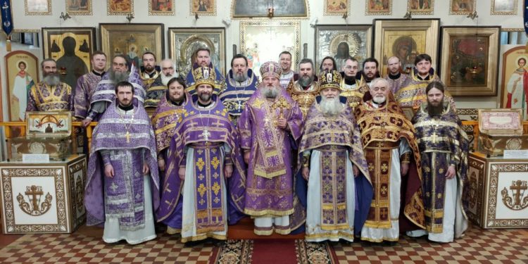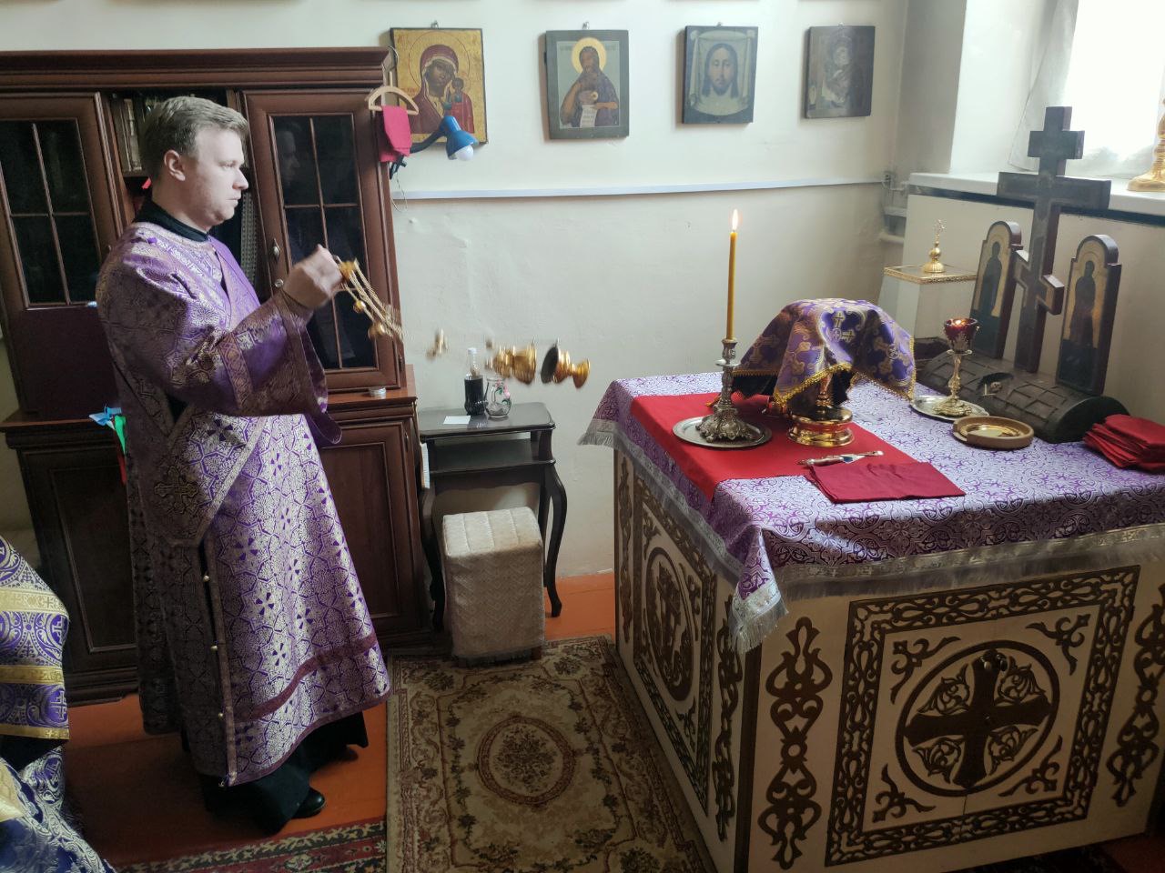 Перед богослужением состоялась великопостная исповедь священнослужителей, которую принял духовник епархии, настоятель собора протоиерей Алексий Жиганов.