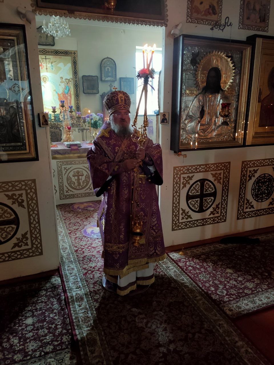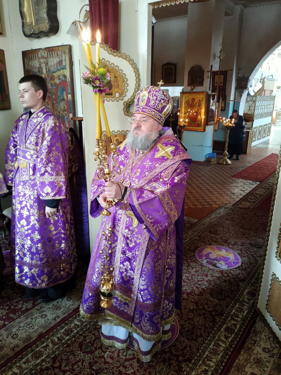 Епископ Козельский и Людиновский Никита совершил вечерню в соединении с Божественной литургией Преждеосвященных Даров в Казанском кафедральном соборе города Людиново.