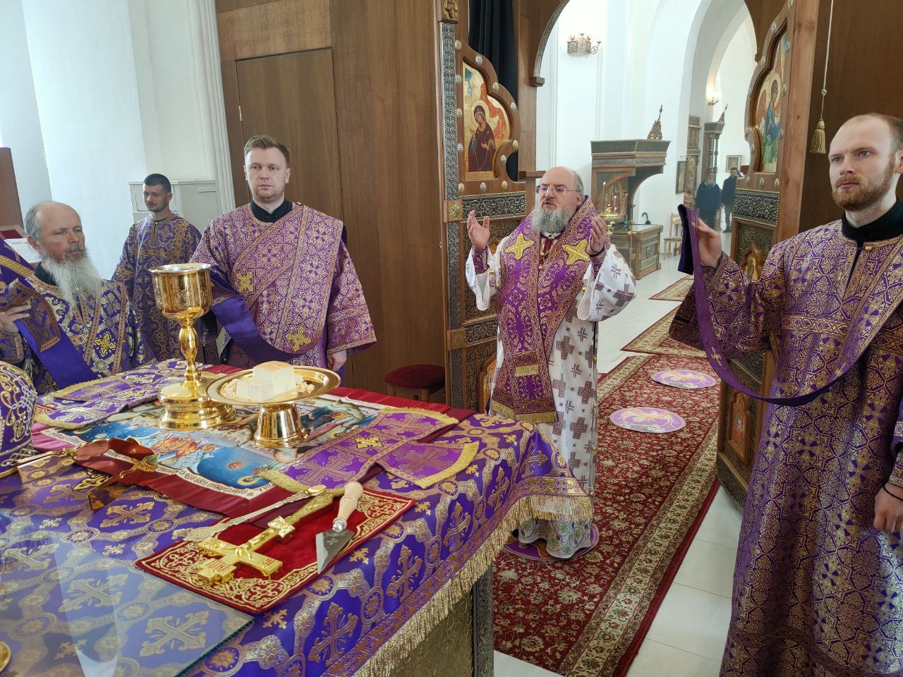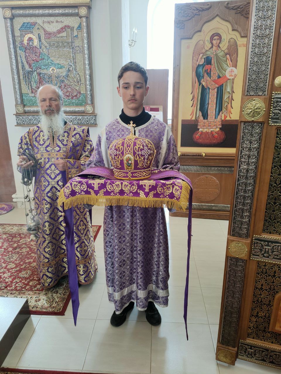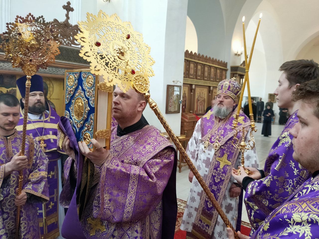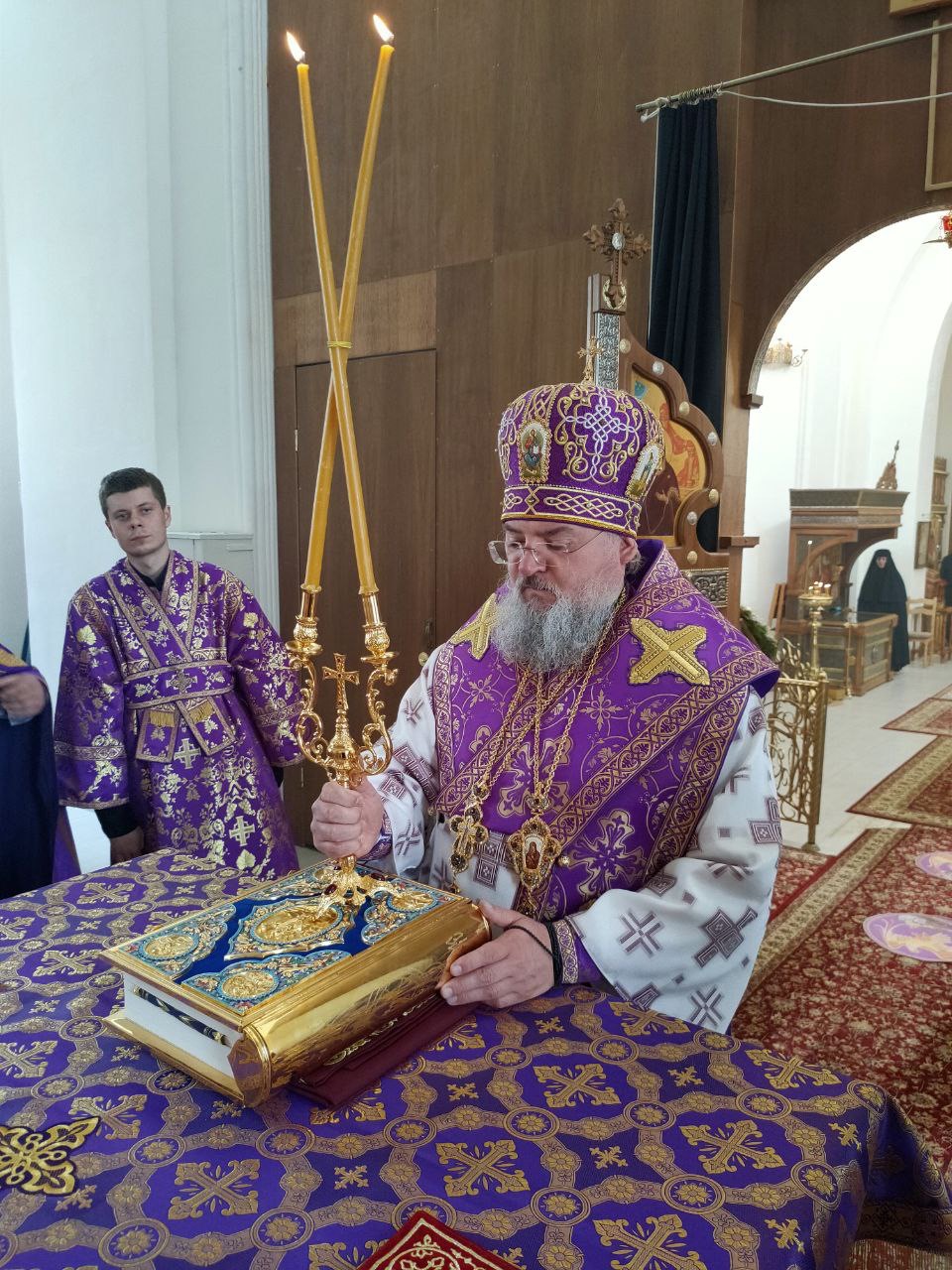 Его Преосвященству сослужили: протоиерей Владимир Бахаев, секретарь епархии; протоиерей Антоний Хатунцев, иерей Алексий Боков, диакон Евгений Ковригин, иеродиакон Алексий (Гудименко) и иеродиакон Лука (Старостин).