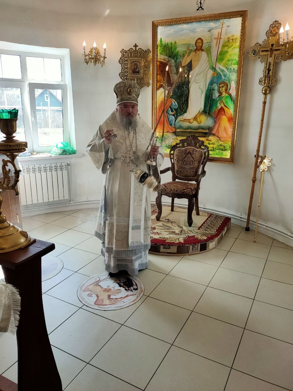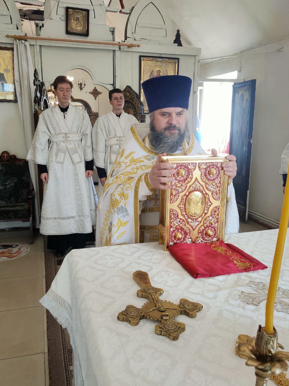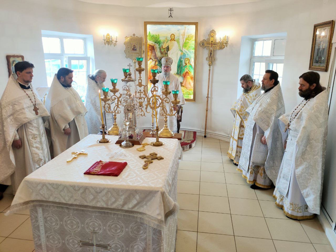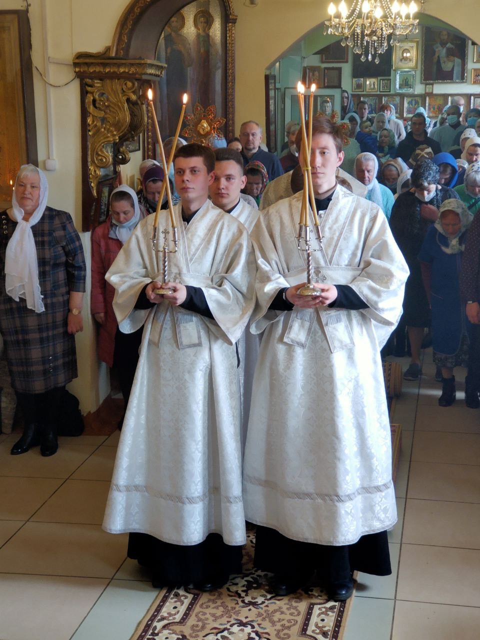 Его Преосвященству сослужили: протоиерей Василий Биляк – благочинный округа, протоиерей Алексий Жиганов – духовник епархии, протоиерей Михаил Карпенко – настоятель храма, протоиерей Антоний Хатунцев, иерей Георгий Краснов, иерей Иоанн Майоров, диакон Евгений Ковригин и иеродиакон Лука (Старостин).
