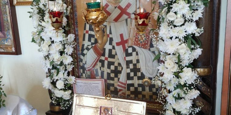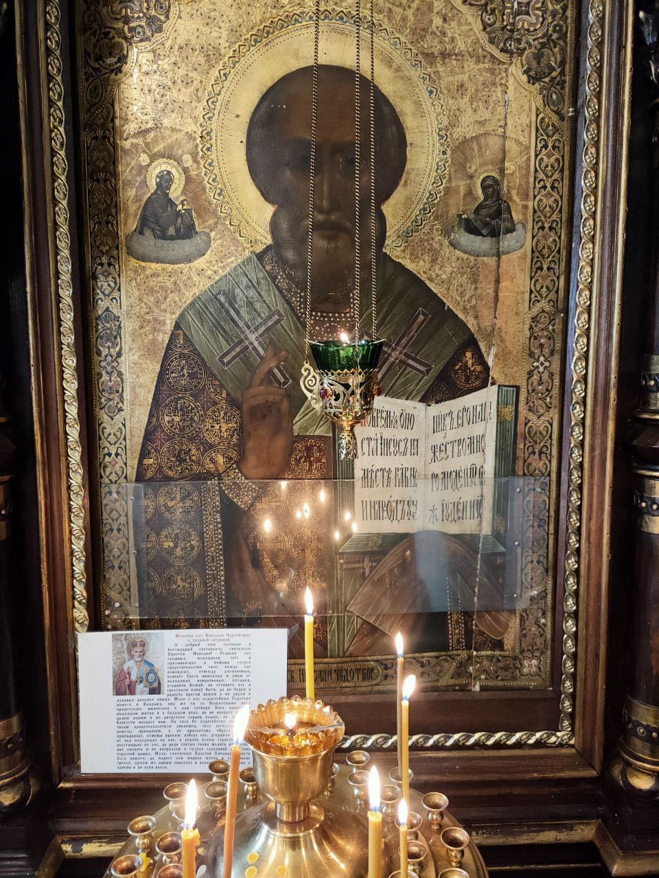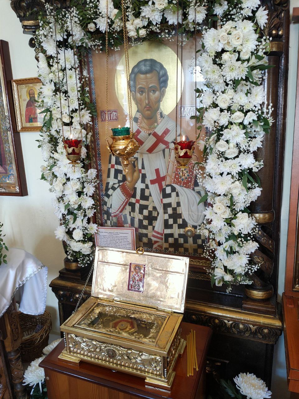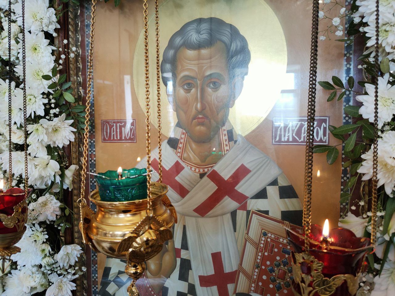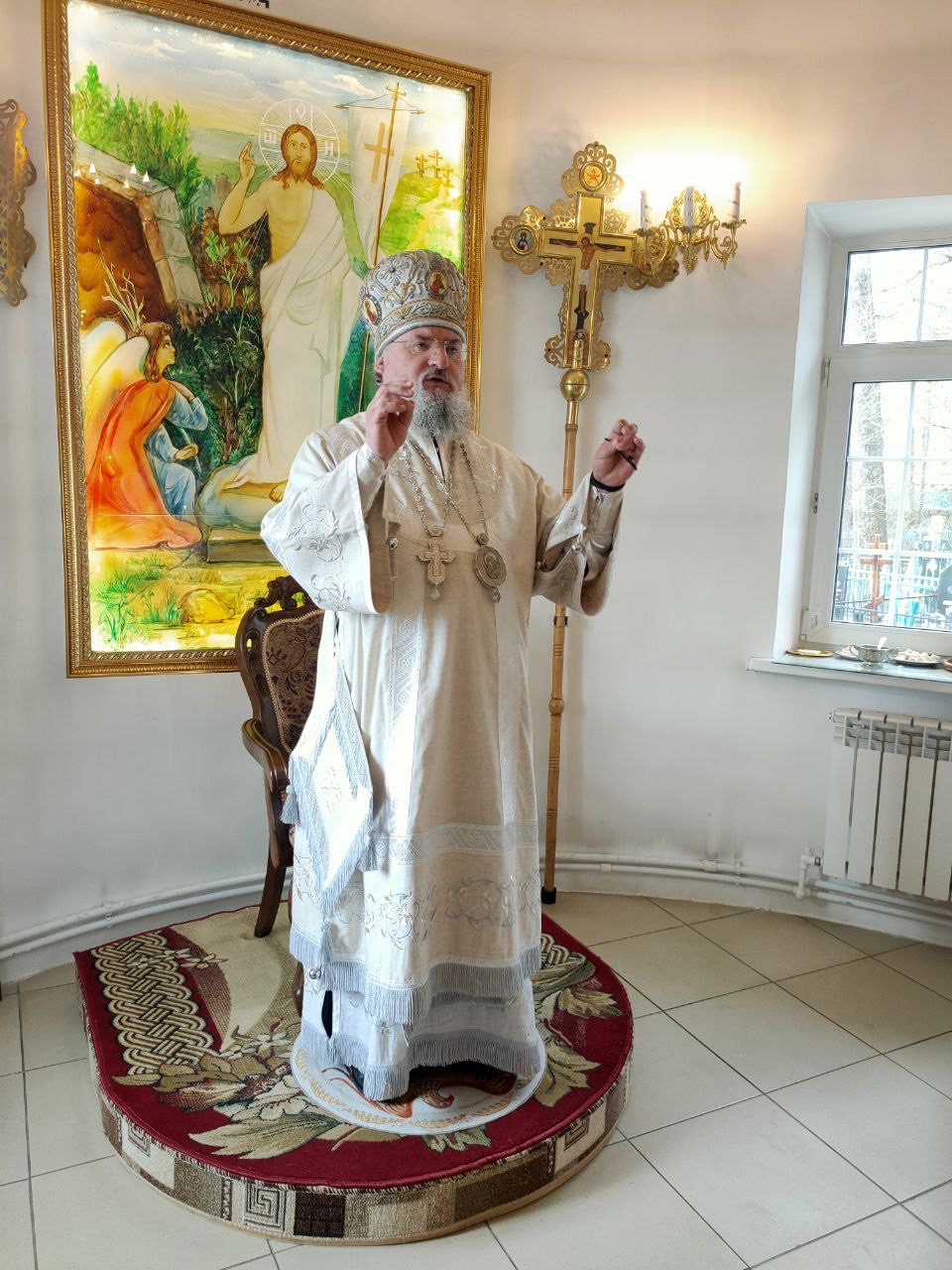 По отпусте литургии священнослужители совершили славление праведному Лазарю Четверодневному, в завершении которого, вознеся молитву угоднику Божию, владыка обратился к богомольцам с проповедью.