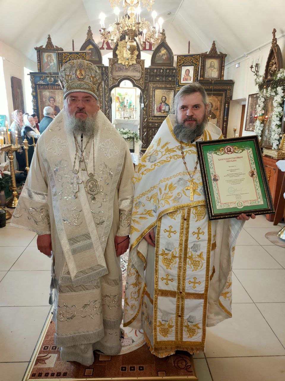 Во внимание к усердным трудам во славу святой Церкви и в связи с сорокапятилетнем со дня рождения архипастырь вручил настоятелю храма протоиерею Михаилу Карпенко благодарственное письмо.