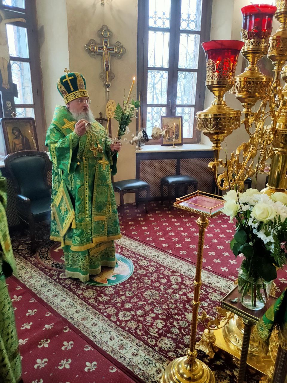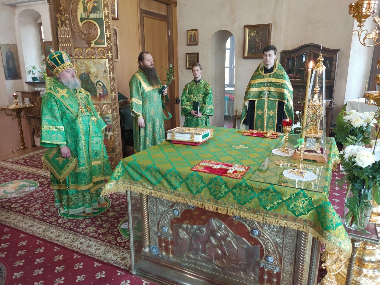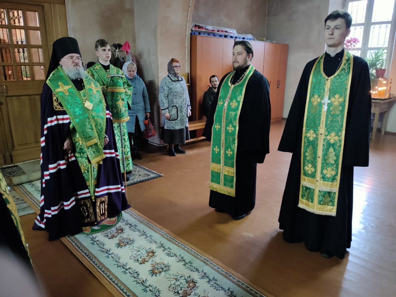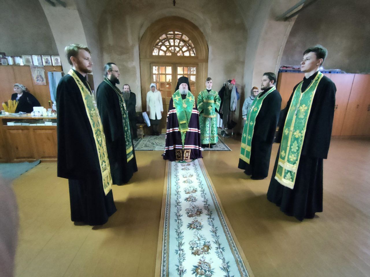 Архипастырю сослужили: настоятель собора иеромонах Паисий (Курмаз), протоиерей Антоний Хатунцев, иерей Елисей Тимофеев, иерей Филипп Лисенков, диакон Евгений Ковригин, иеродиакон Виталий (Павленко), иеродиакон Лука (Старостин) и диакон Евгений Чуркин.