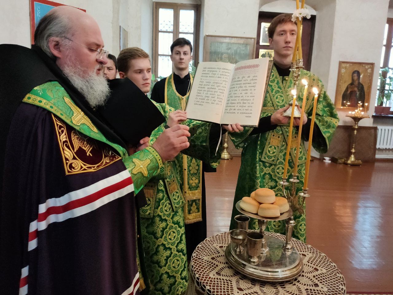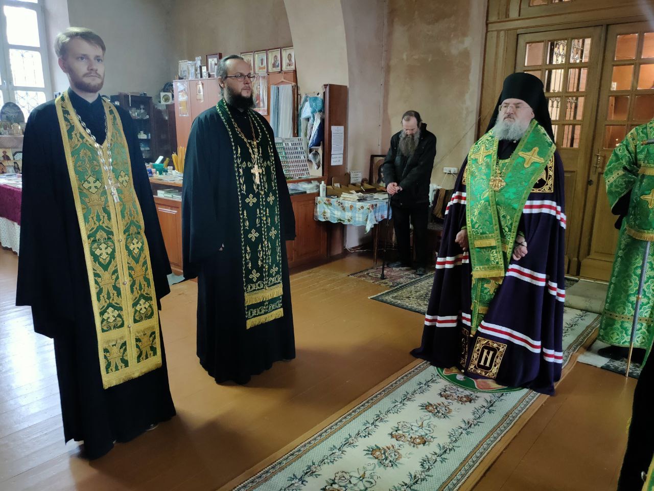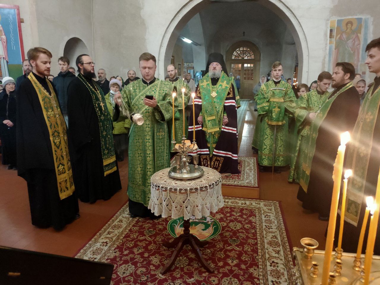 Архипастырю сослужили: настоятель собора иеромонах Паисий (Курмаз), протоиерей Антоний Хатунцев, иерей Елисей Тимофеев, иерей Филипп Лисенков, диакон Евгений Ковригин, иеродиакон Виталий (Павленко), иеродиакон Лука (Старостин) и диакон Евгений Чуркин.