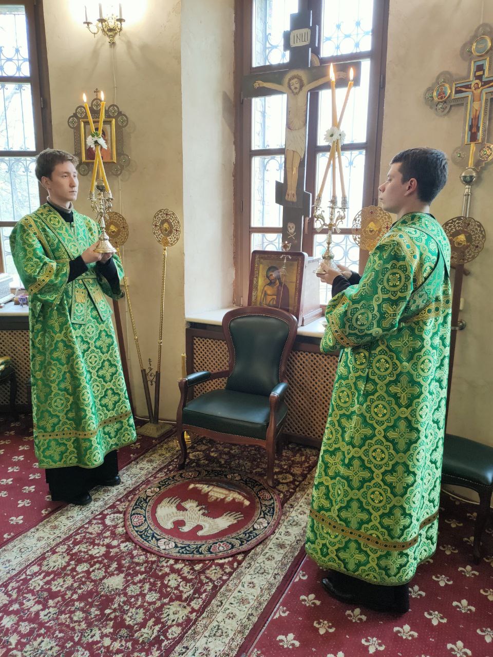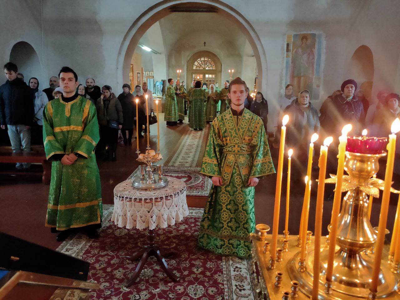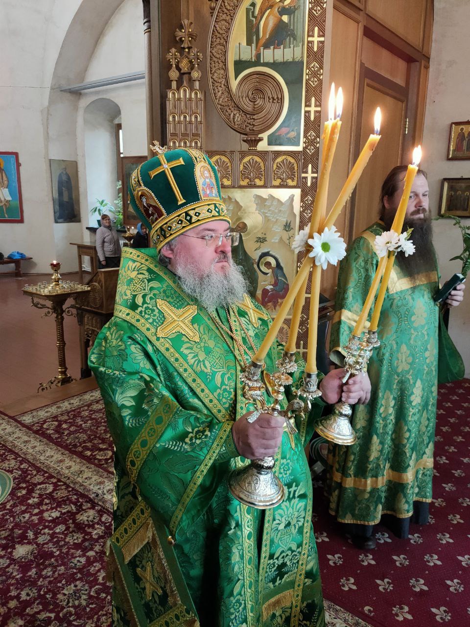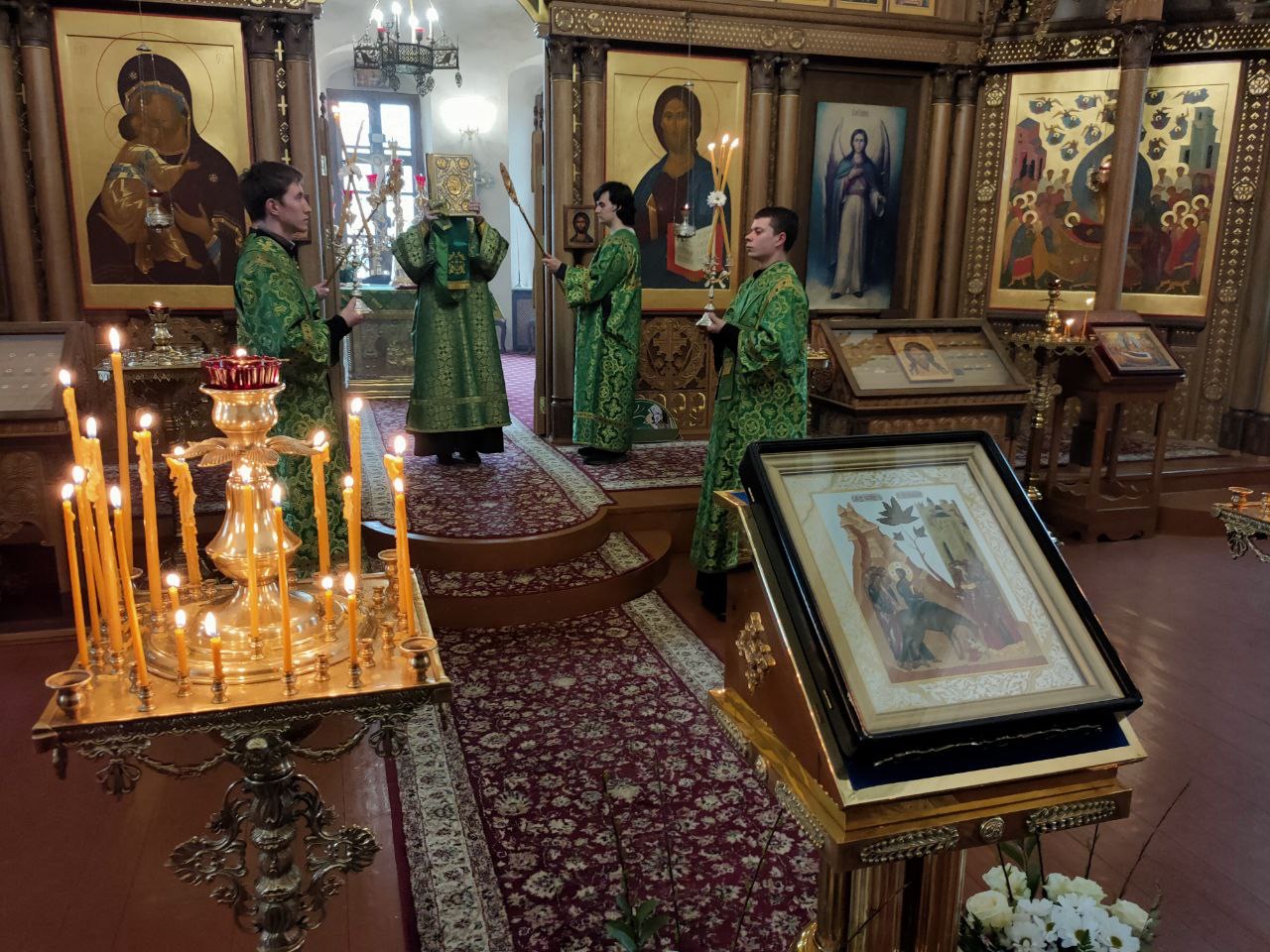 Архипастырю сослужили: настоятель собора иеромонах Паисий (Курмаз), протоиерей Антоний Хатунцев, иерей Елисей Тимофеев, иерей Филипп Лисенков, диакон Евгений Ковригин, иеродиакон Виталий (Павленко), иеродиакон Лука (Старостин) и диакон Евгений Чуркин.