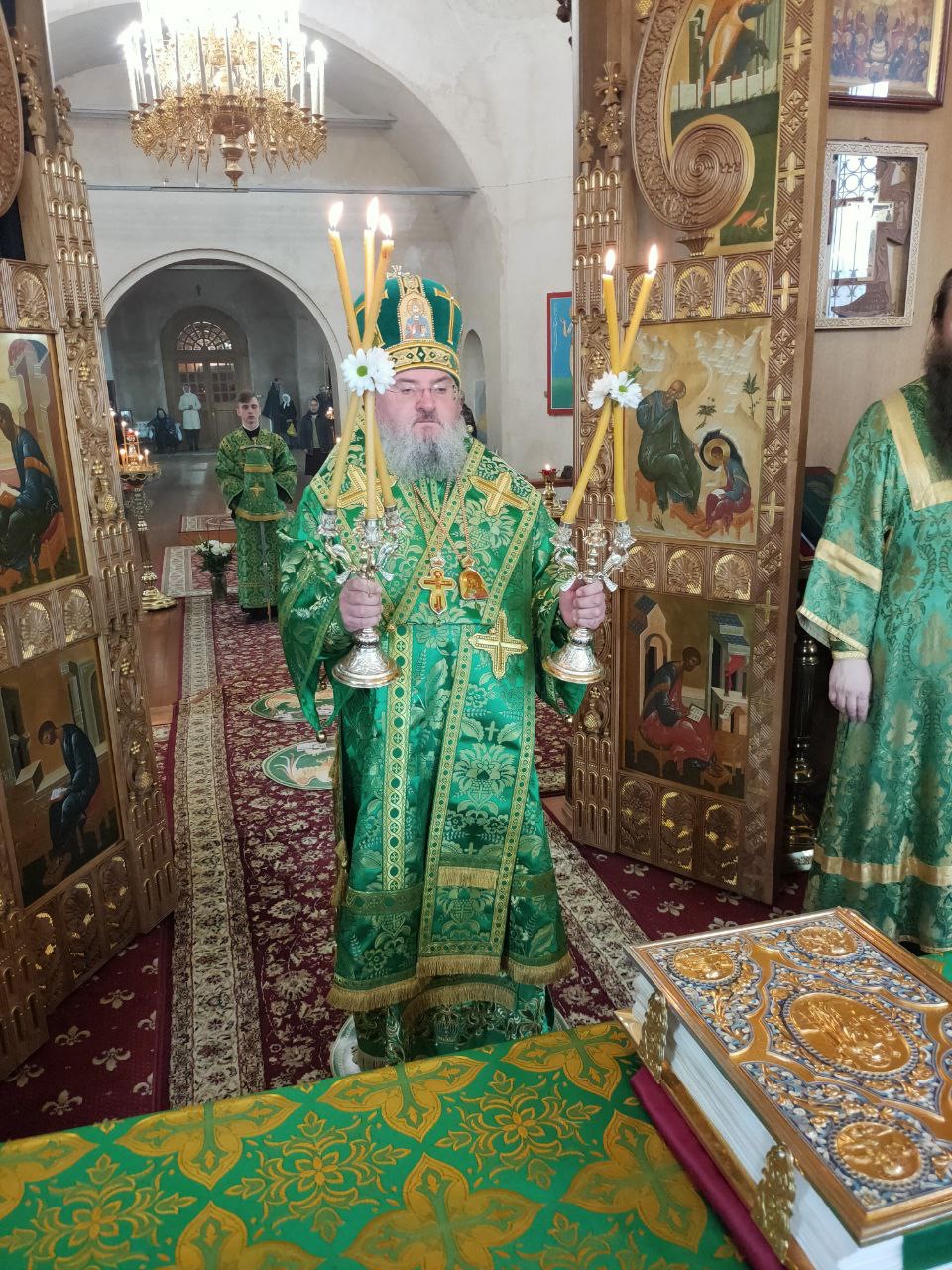 24 апреля накануне Недели ваий епископ Козельский и Людиновский Никита возглавил всенощное бдение в Успенском кафедральном соборе города Козельска.