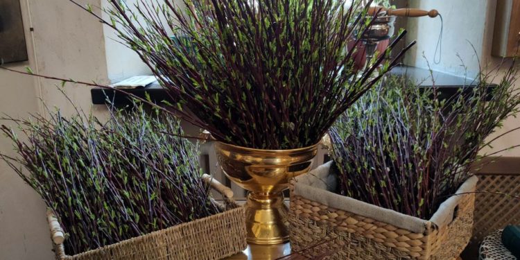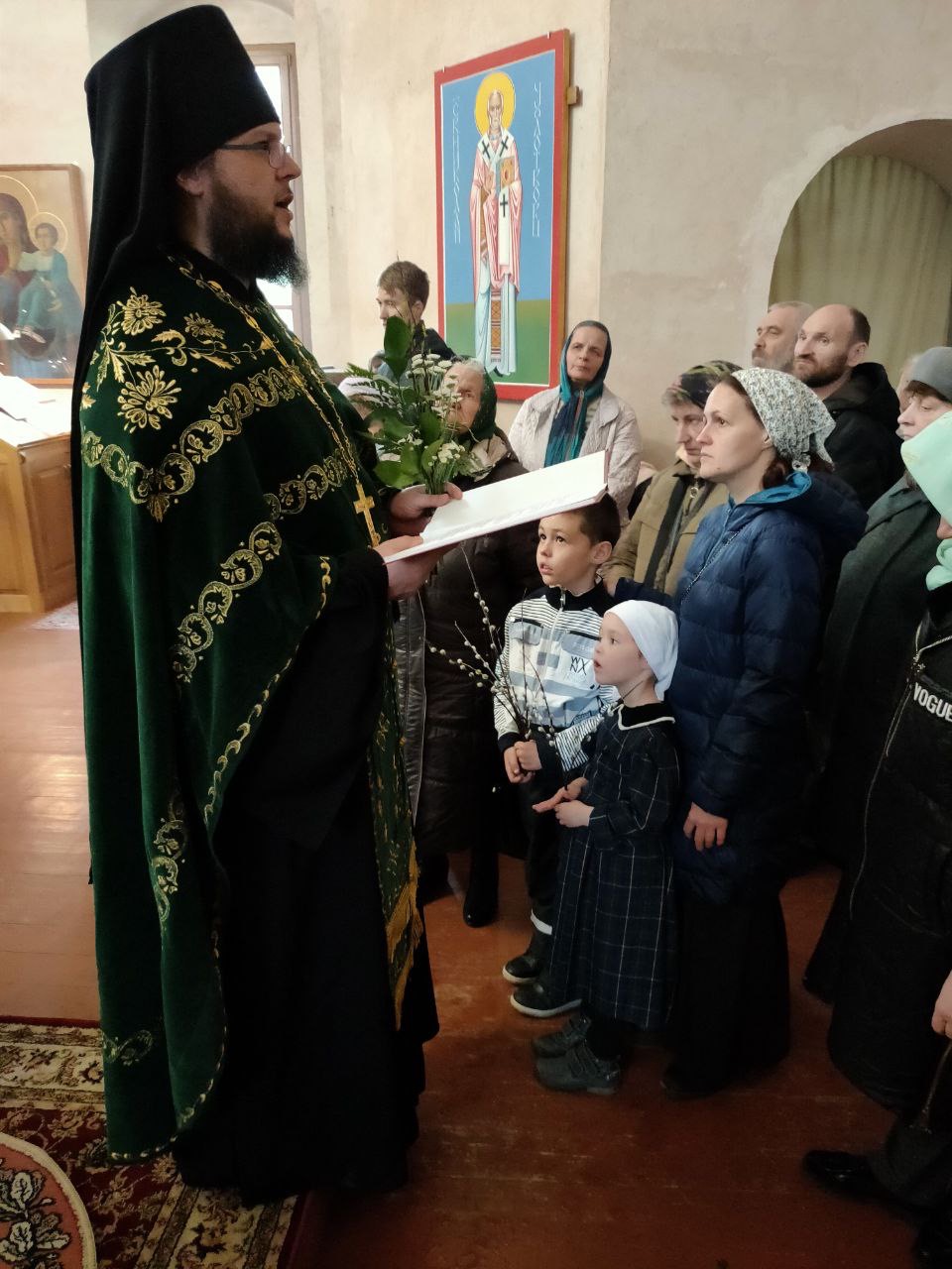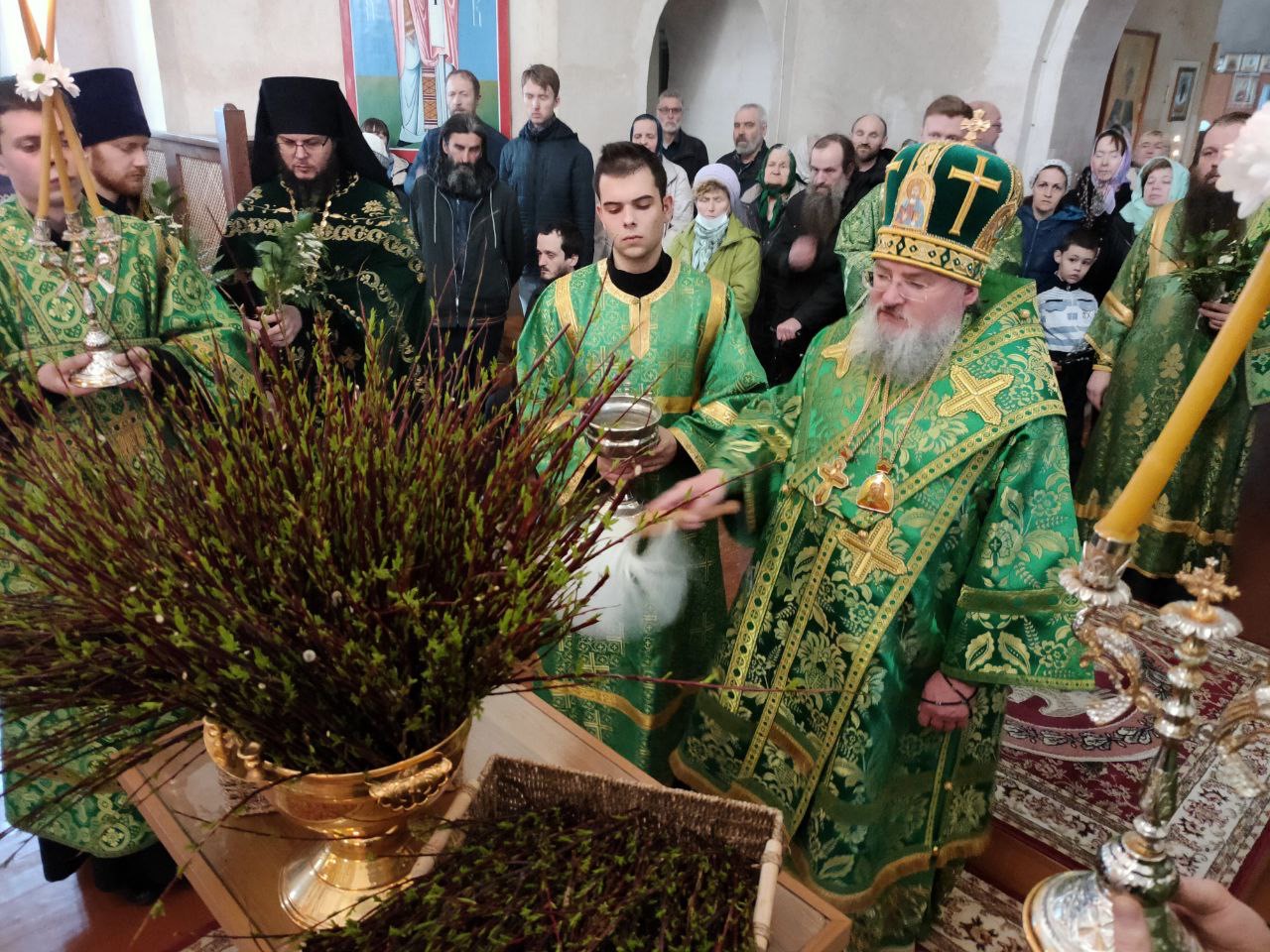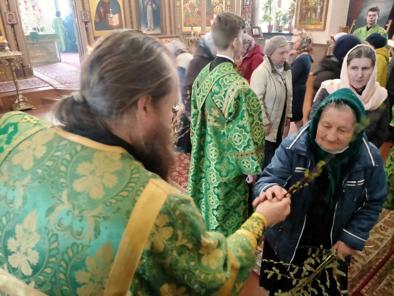На утрени, после прочтения Евангелия, согласно богослужебному уставу, владыка освятил ветви вербы.