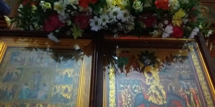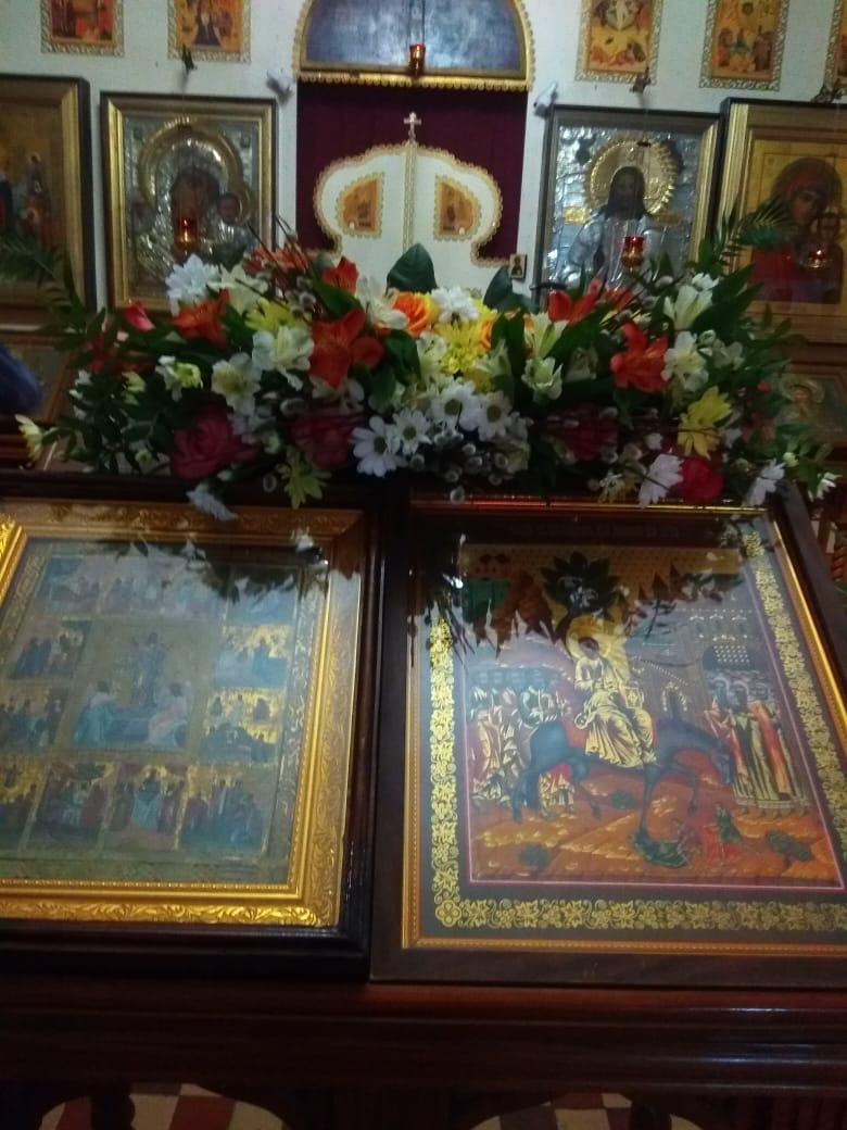 В завершение богослужения батюшка обратился к прихожанам с приветственным словом, поздравив их с великим двунадесятым праздником Входа Господня в Иерусалим.