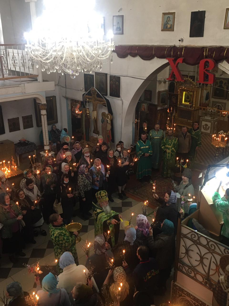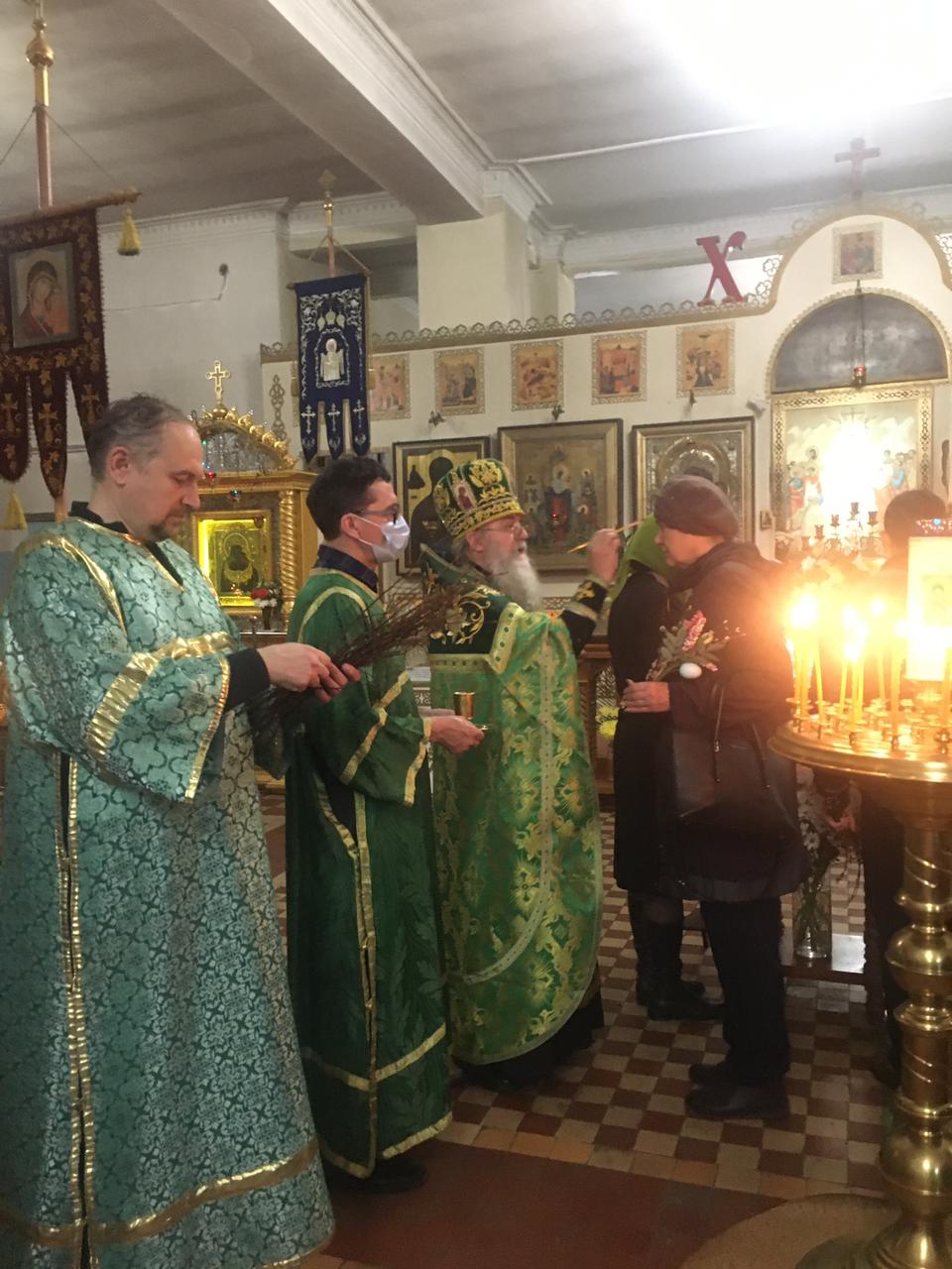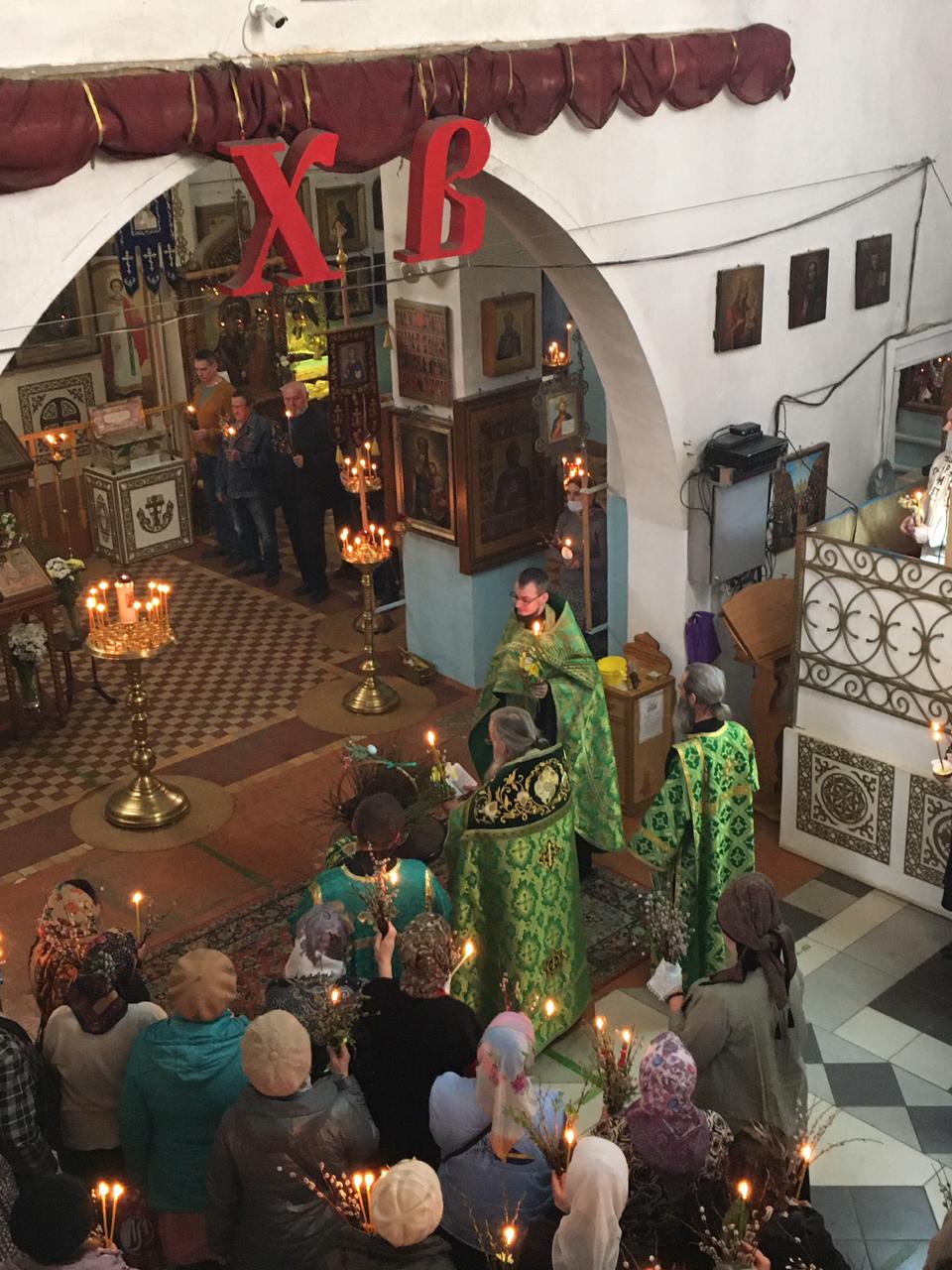 После чтения Евангелия отец Алексий совершил Чин освящения веточек верб, которые были принесены богомольцами на богослужение.