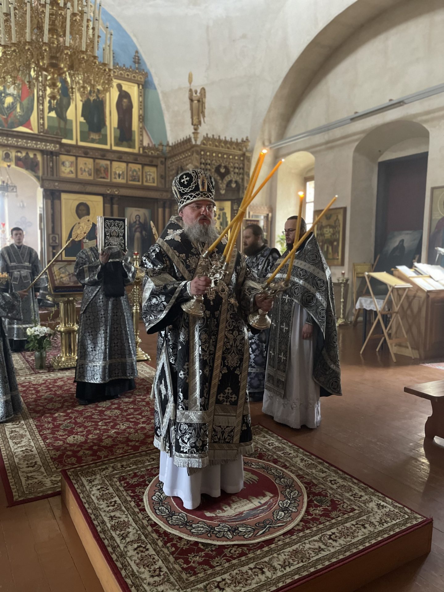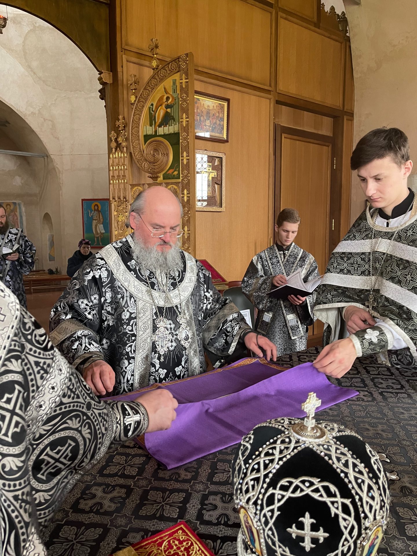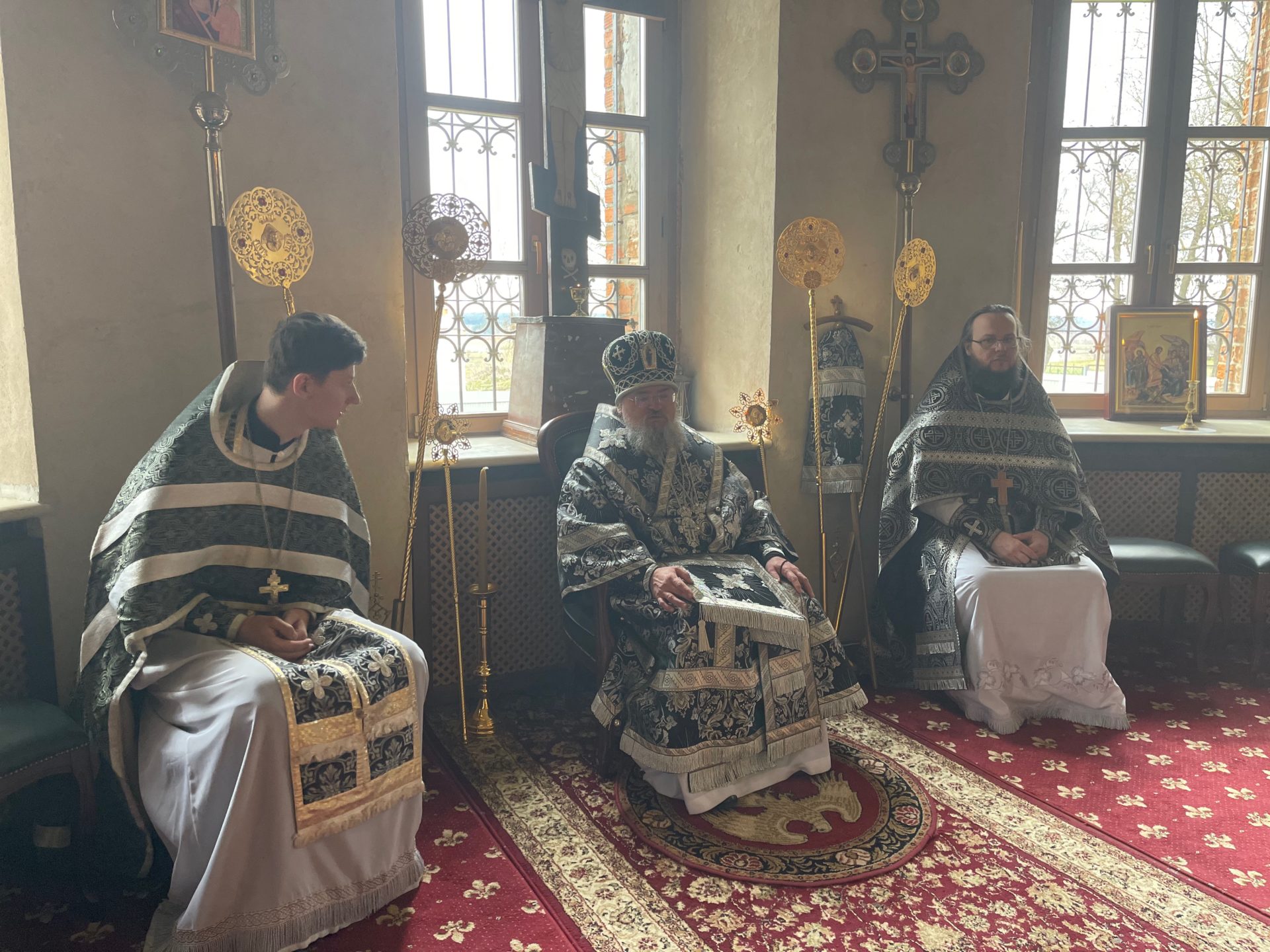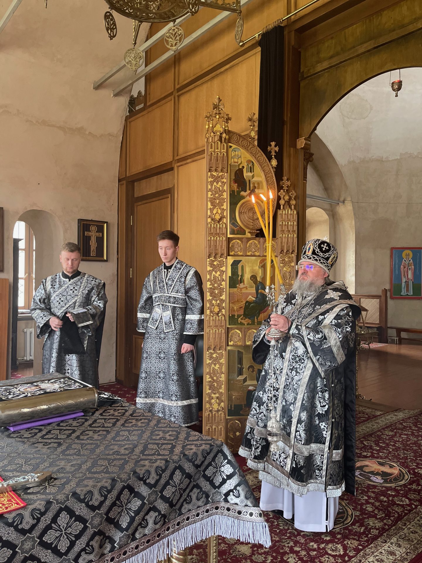 Архипастырю сослужили: настоятель храма иеромонах Паисий (Курмаз), иерей Филипп Лисенков, диакон Евгений Ковригин и диакон Евгений Чуркин.