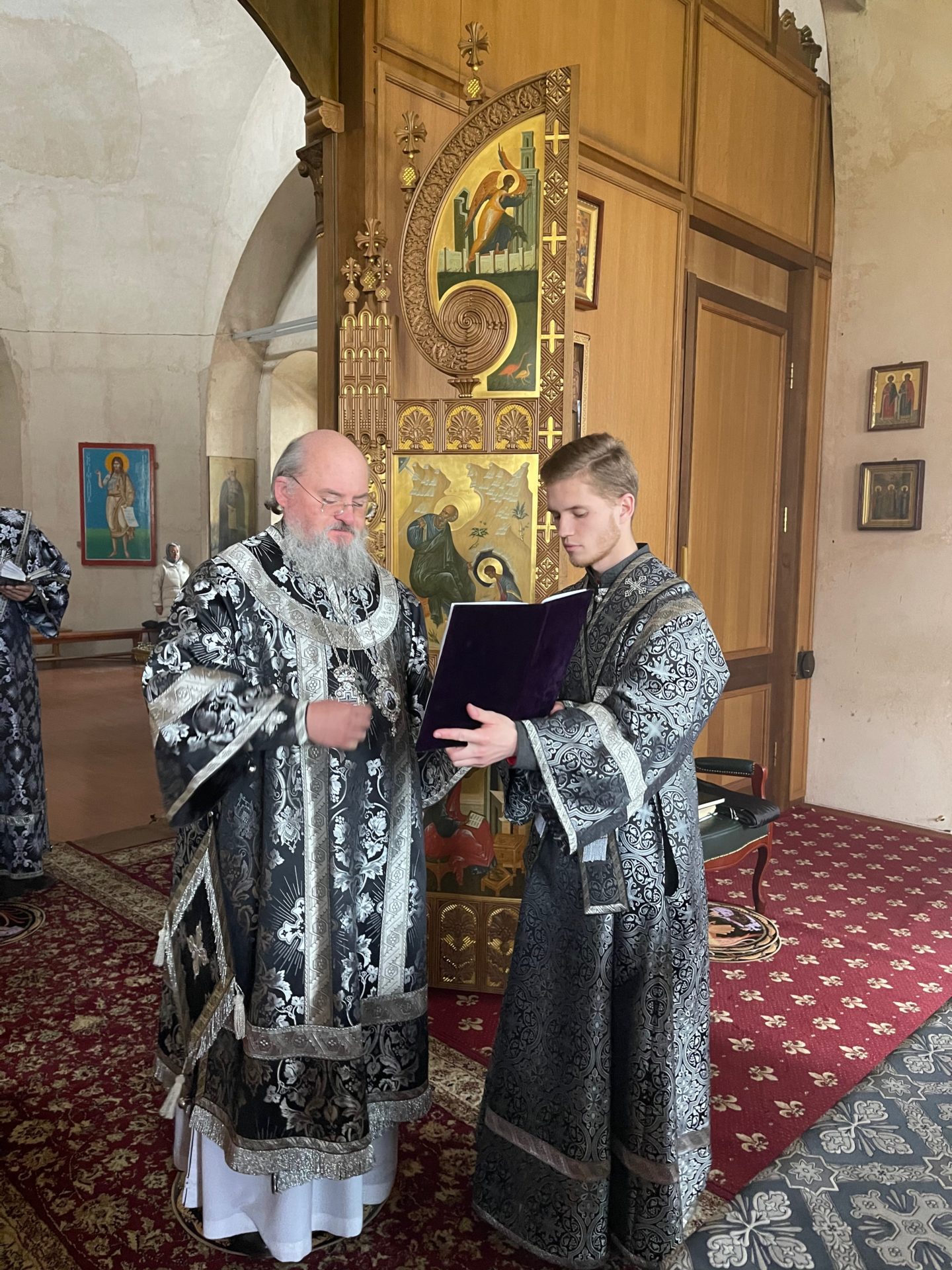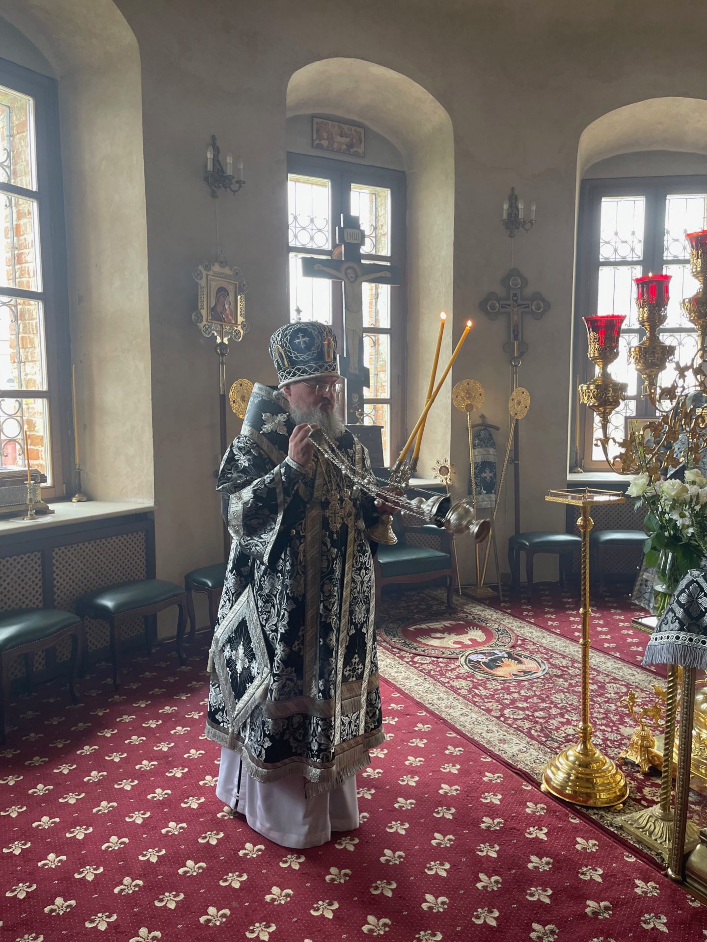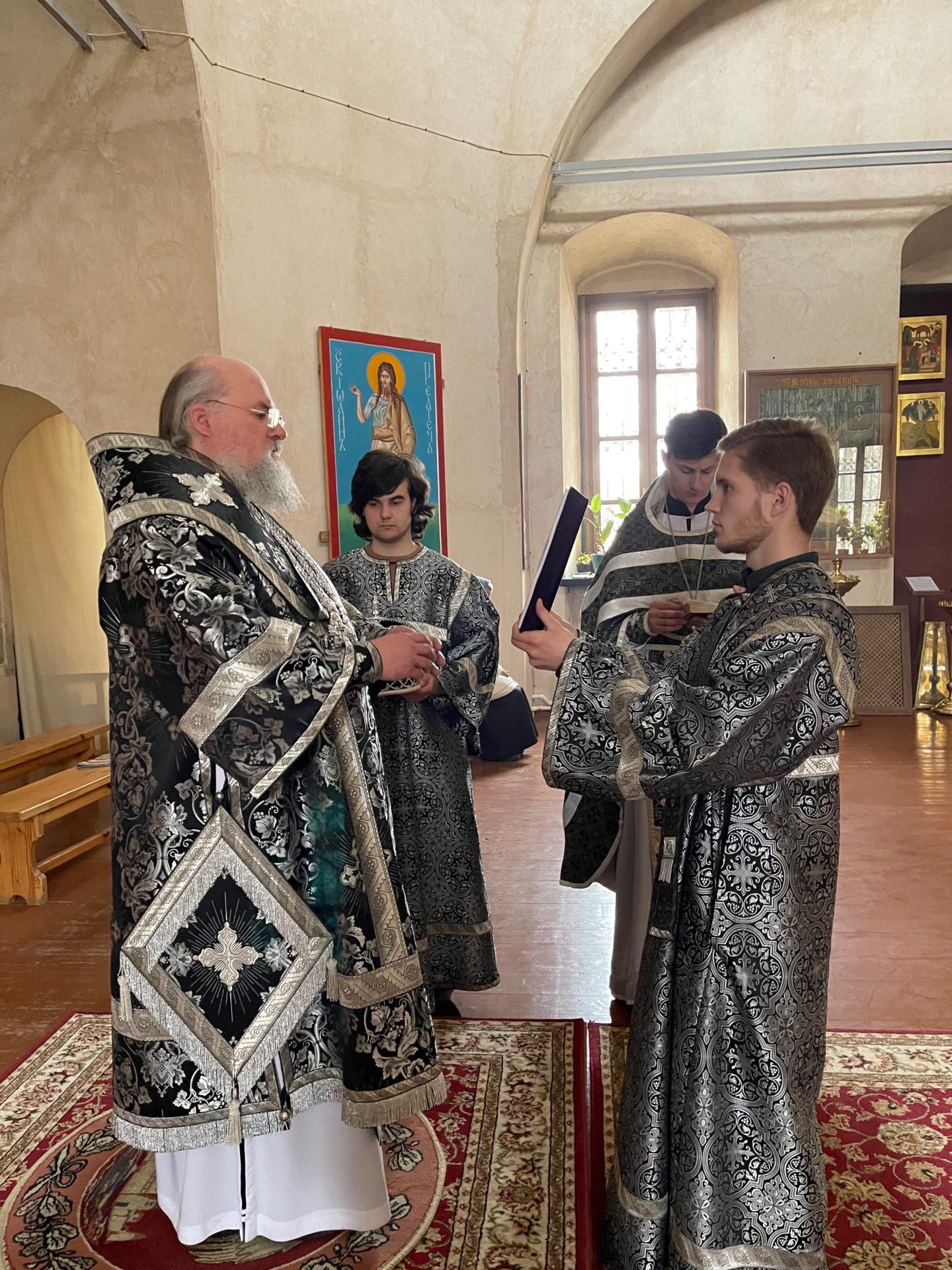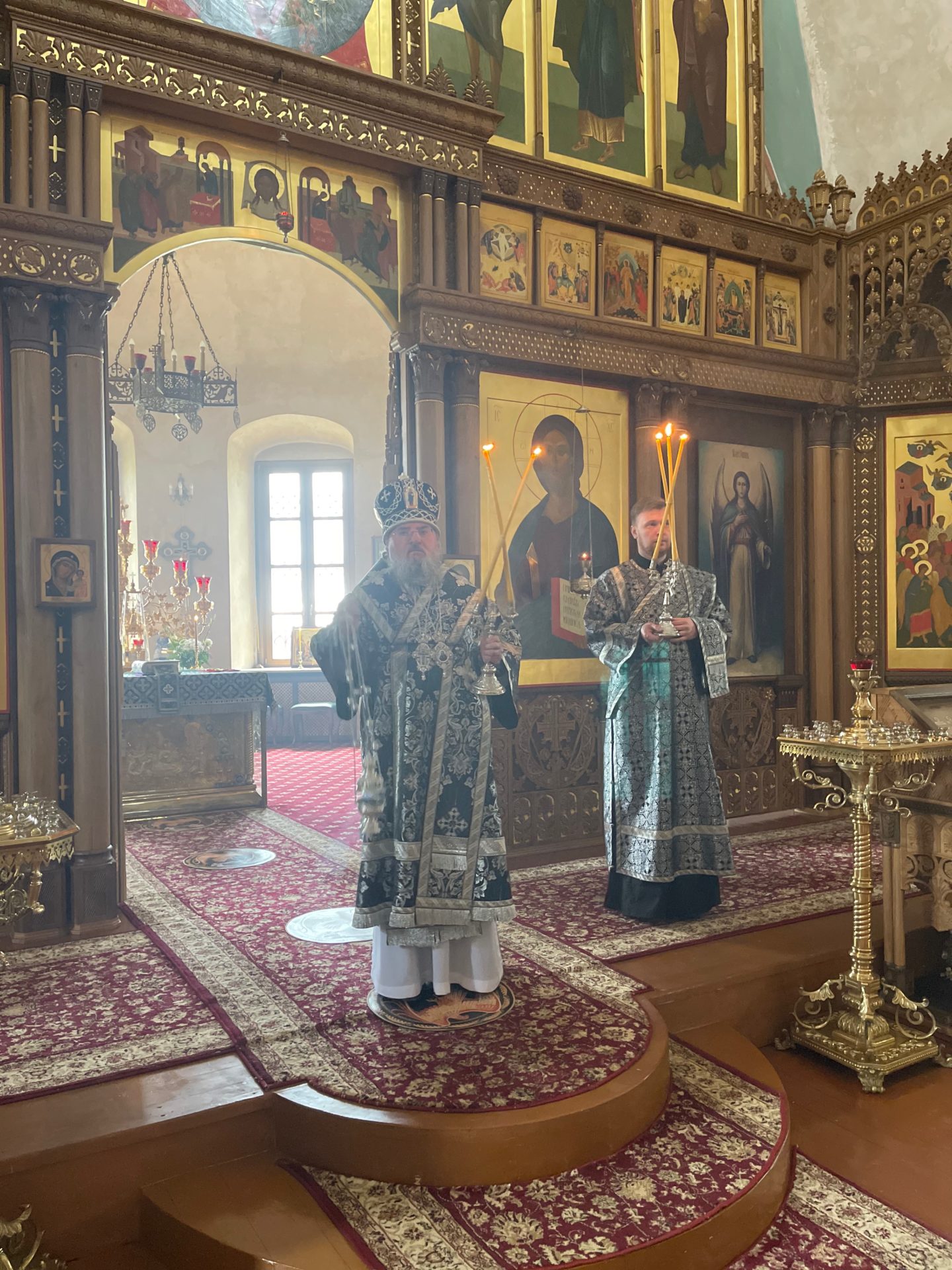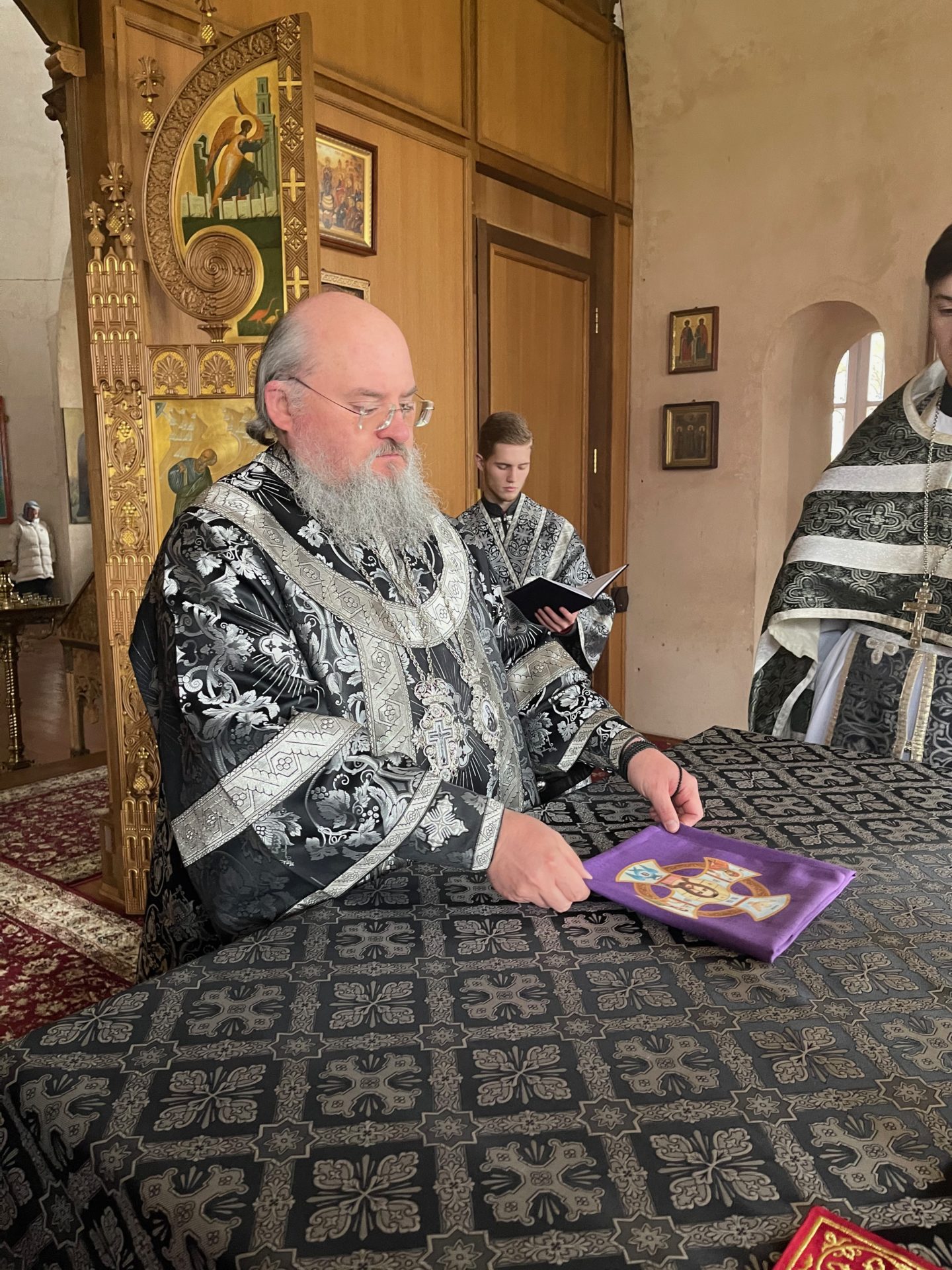 Архипастырю сослужили: настоятель храма иеромонах Паисий (Курмаз), иерей Филипп Лисенков, диакон Евгений Ковригин и диакон Евгений Чуркин.