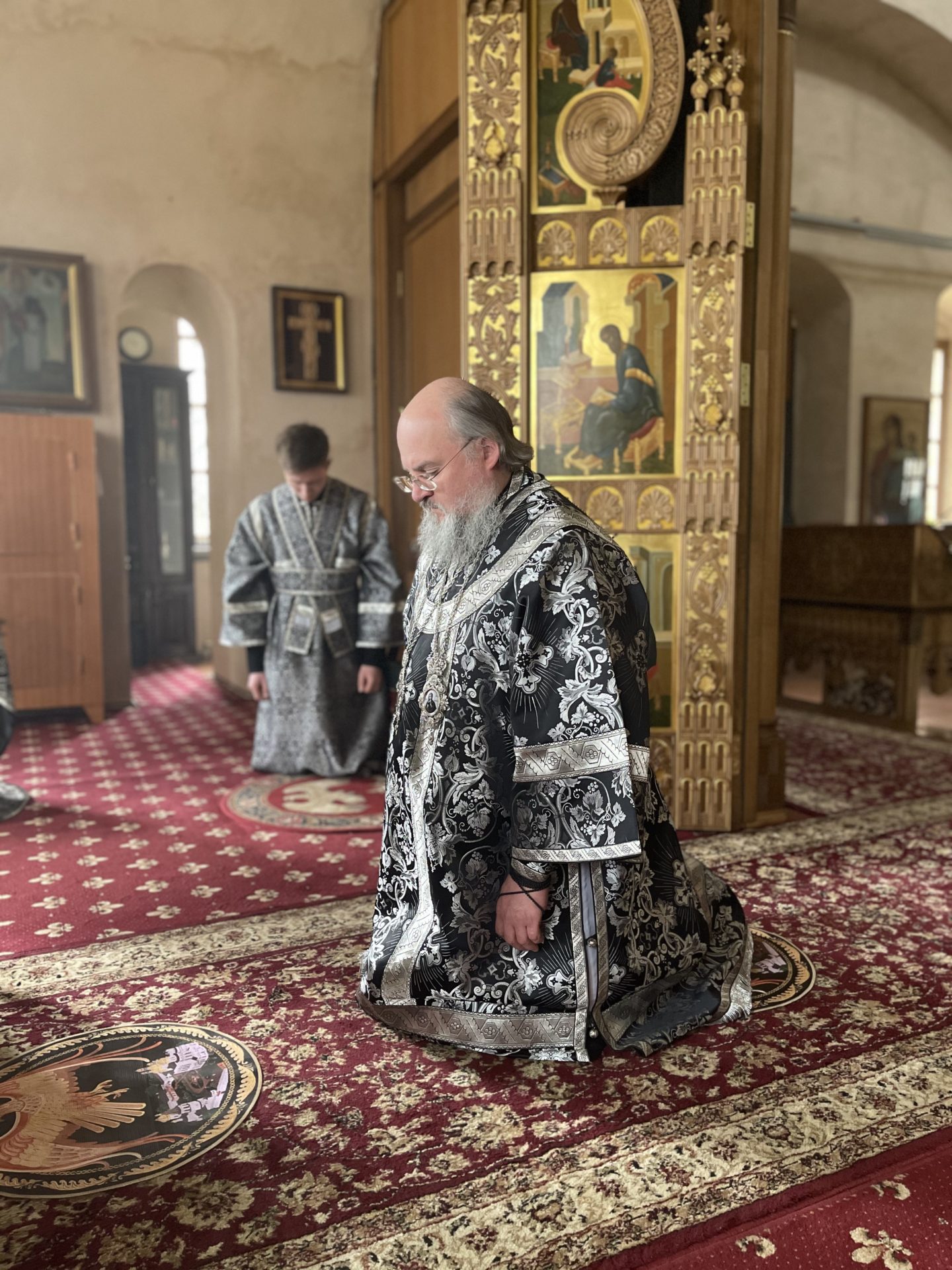 28 апреля. Великая Среда. Епископ Козельский и Людиновский Никита совершил вечерню и последнюю Божественную литургию Преждеосвященных Даров в Успенском кафедральном соборе города Козельска.