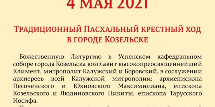 4 мая в Козельске состоится городской Пасхальный крестный ход