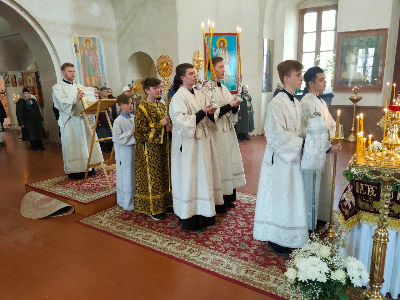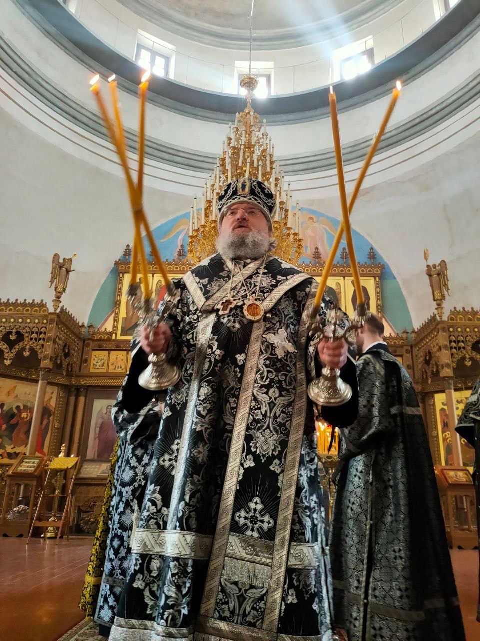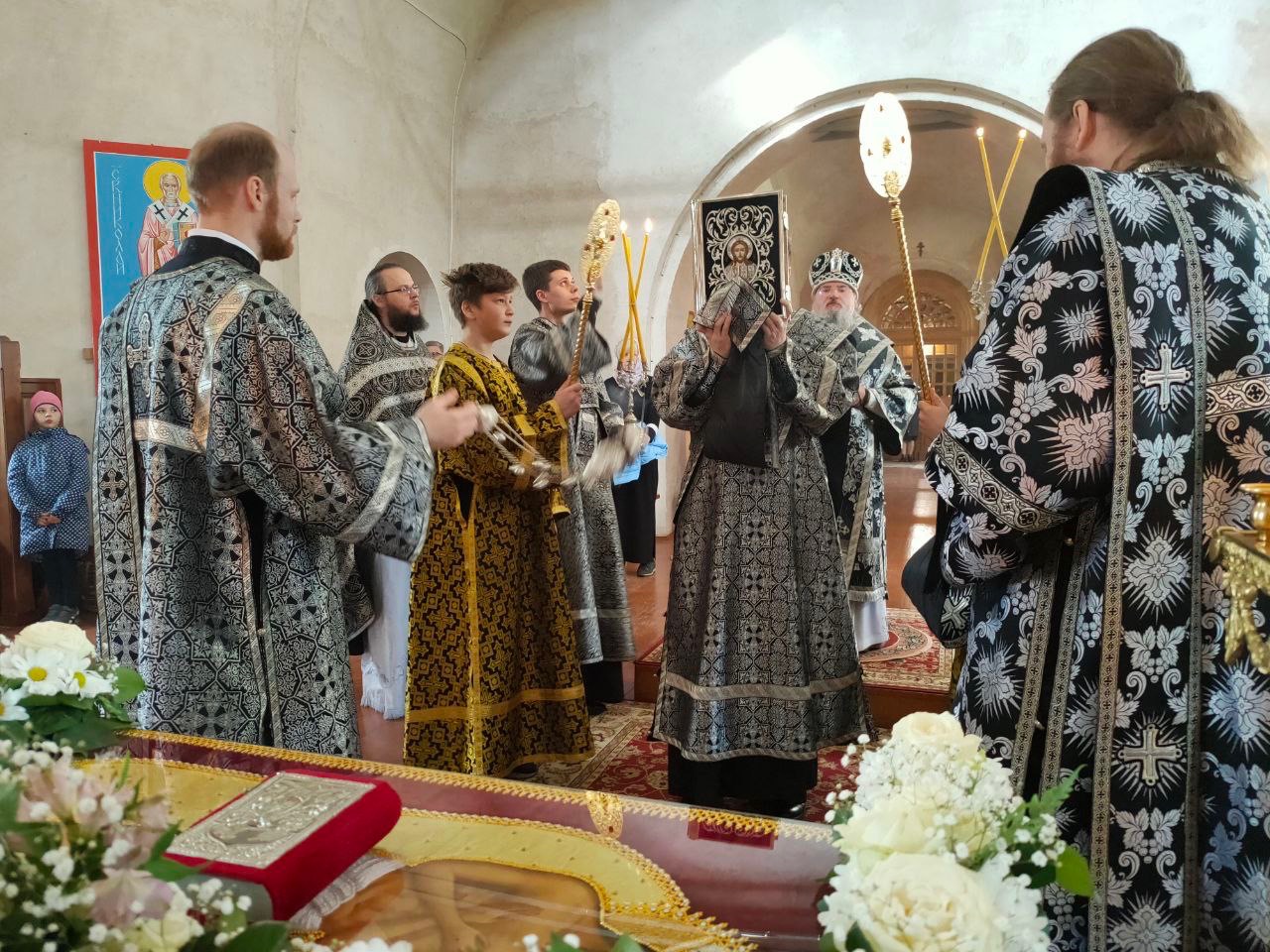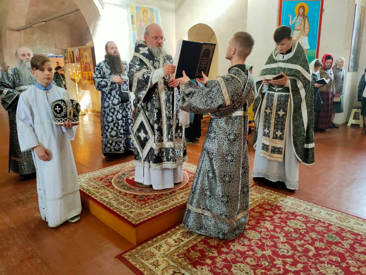 Архипастырю сослужили: иеромонах Паисий (Курмаз) – настоятель храма, иерей Филипп Лисенков, диакон Евгений Ковригин, иеродиакон Виталий (Павленко), иеродиакон Лука (Старостин) и диакон Евгений Чуркин.