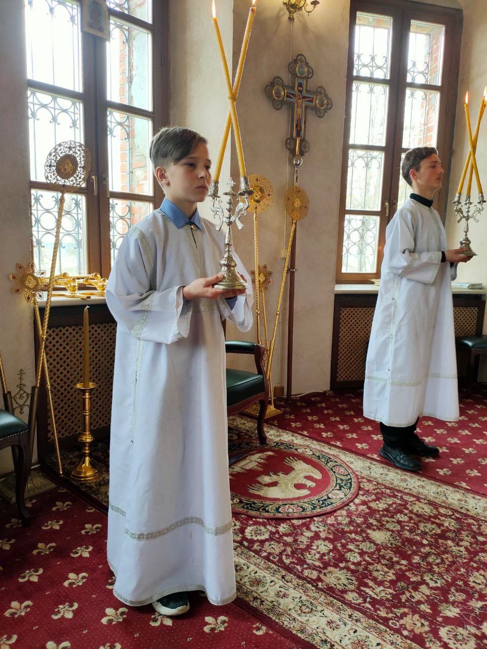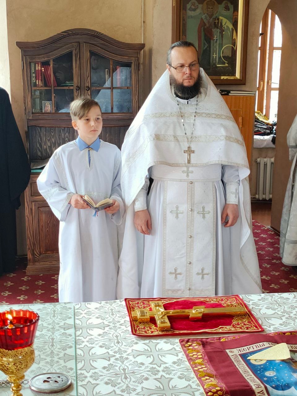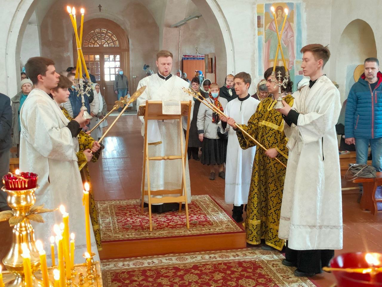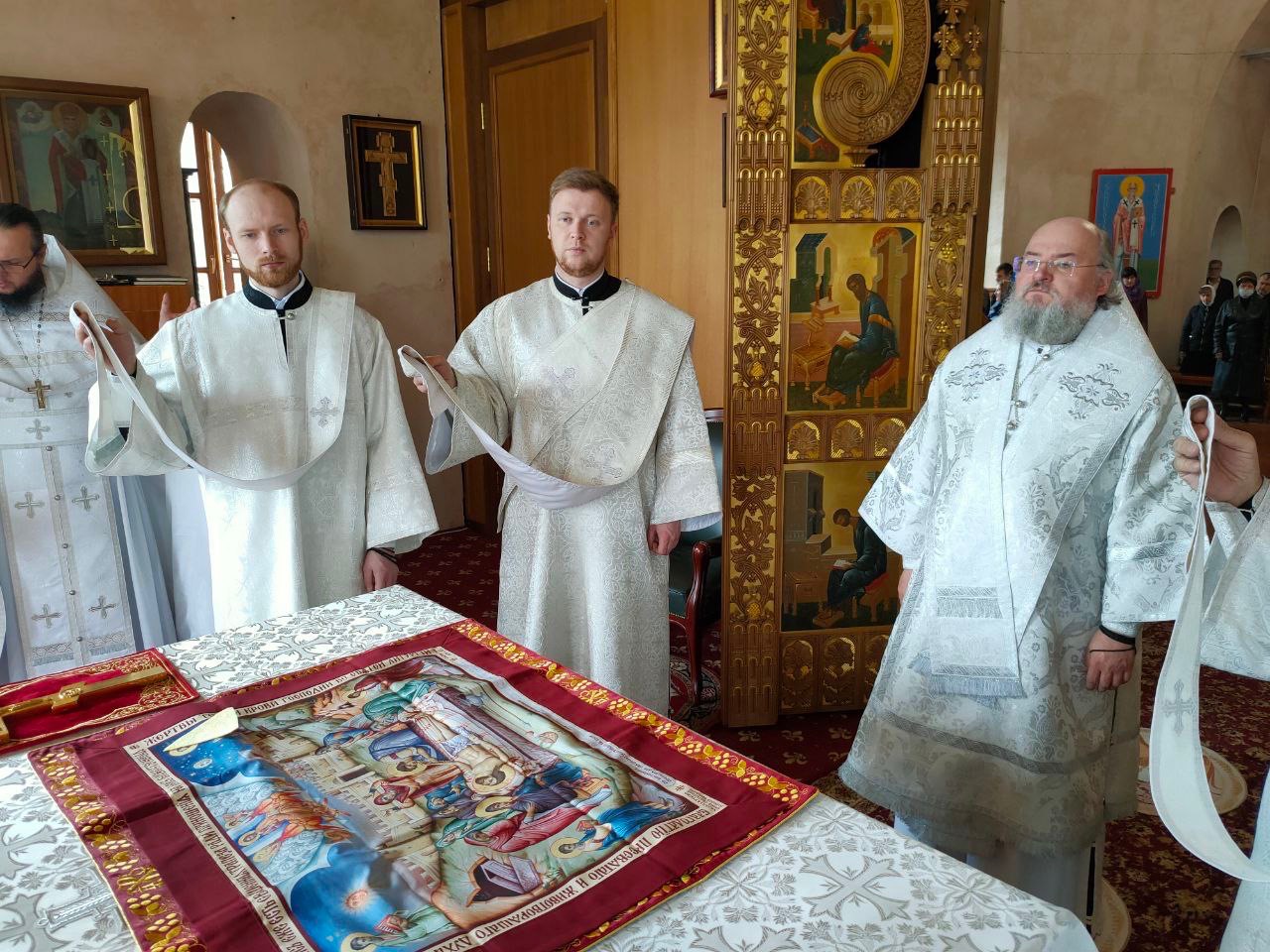 Архипастырю сослужили: иеромонах Паисий (Курмаз) – настоятель храма, иерей Филипп Лисенков, диакон Евгений Ковригин, иеродиакон Виталий (Павленко), иеродиакон Лука (Старостин) и диакон Евгений Чуркин.
