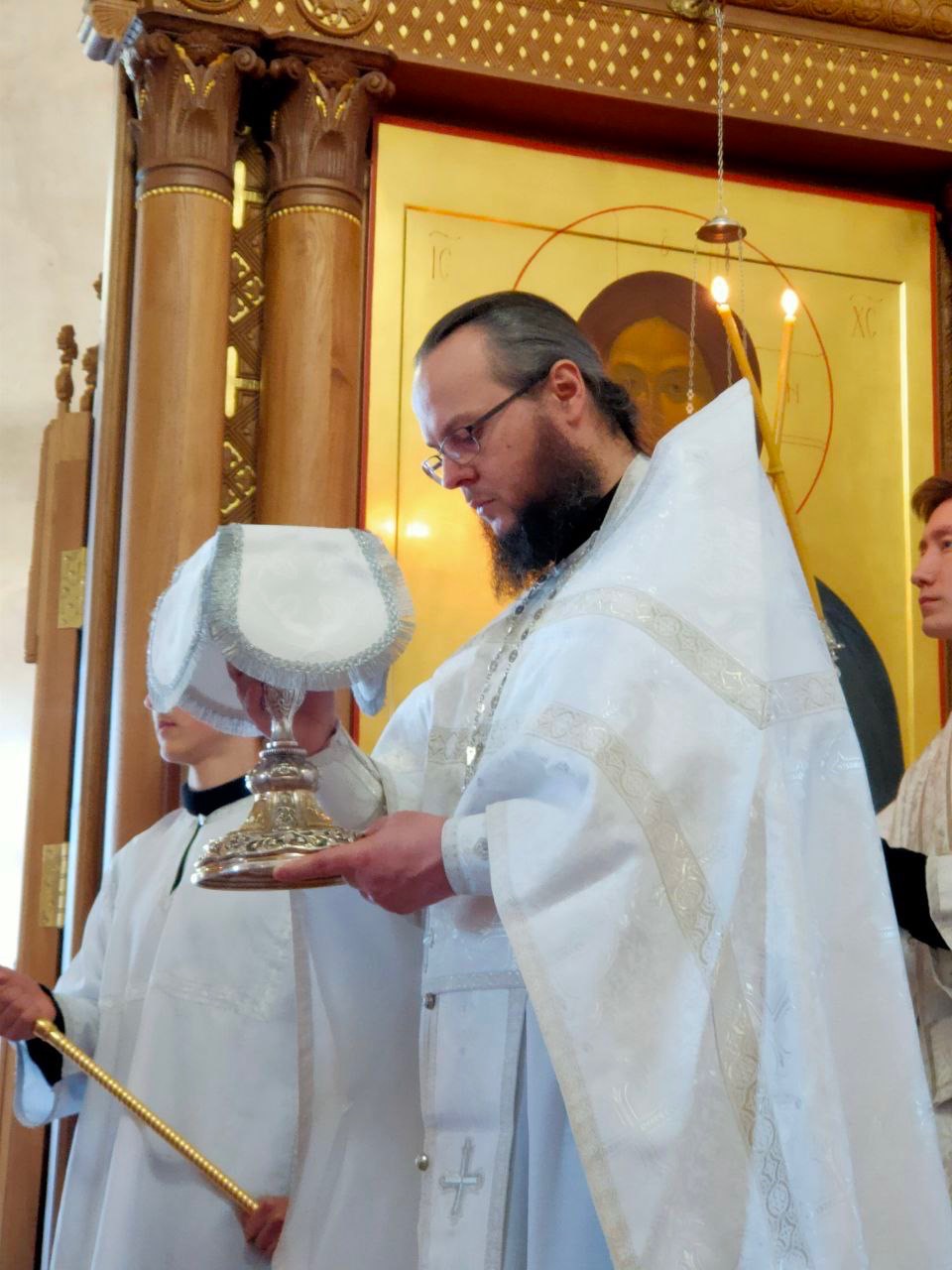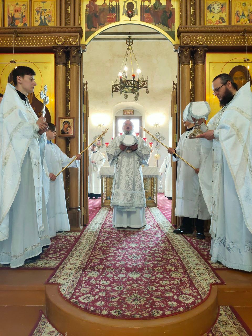 По отпусте литургии епископ Никита совершил освящение хлеба и вина, а затем обратился к богомольцам с архипастырским словом.