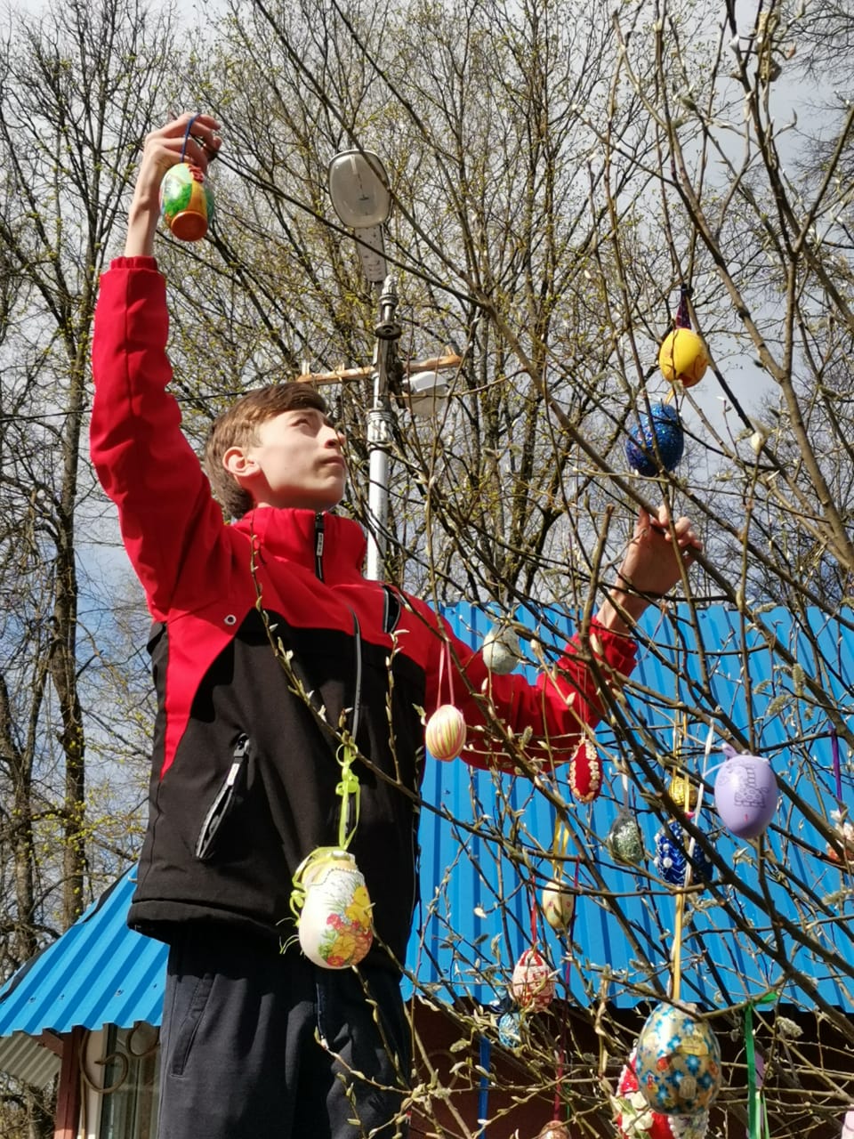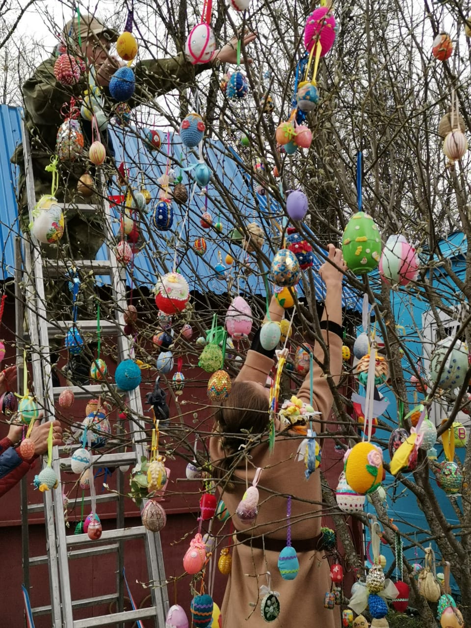 Пасхальное дерево в ограде Казанского собора города Людиново