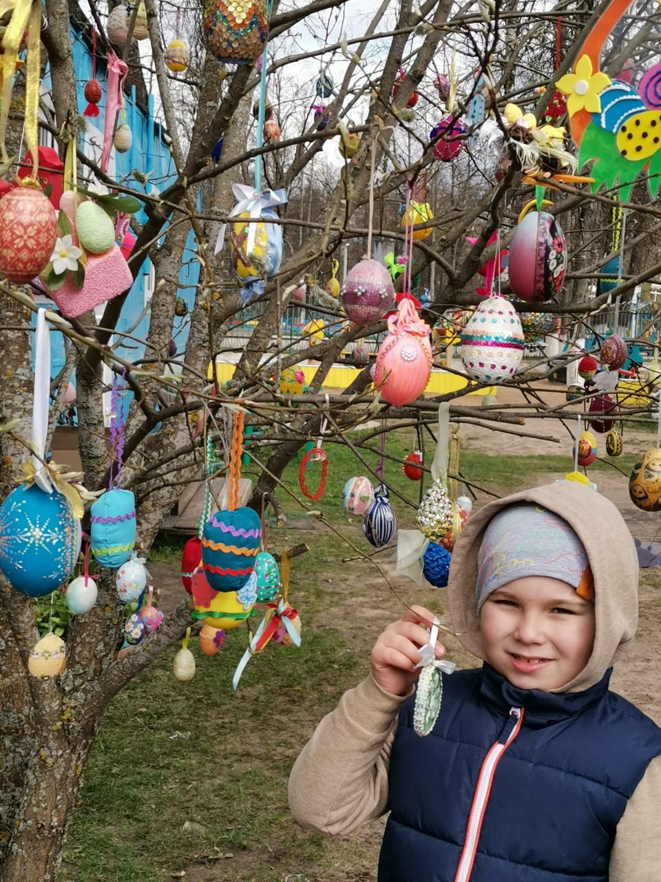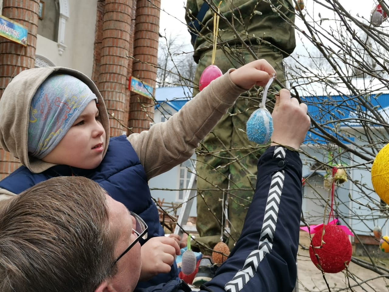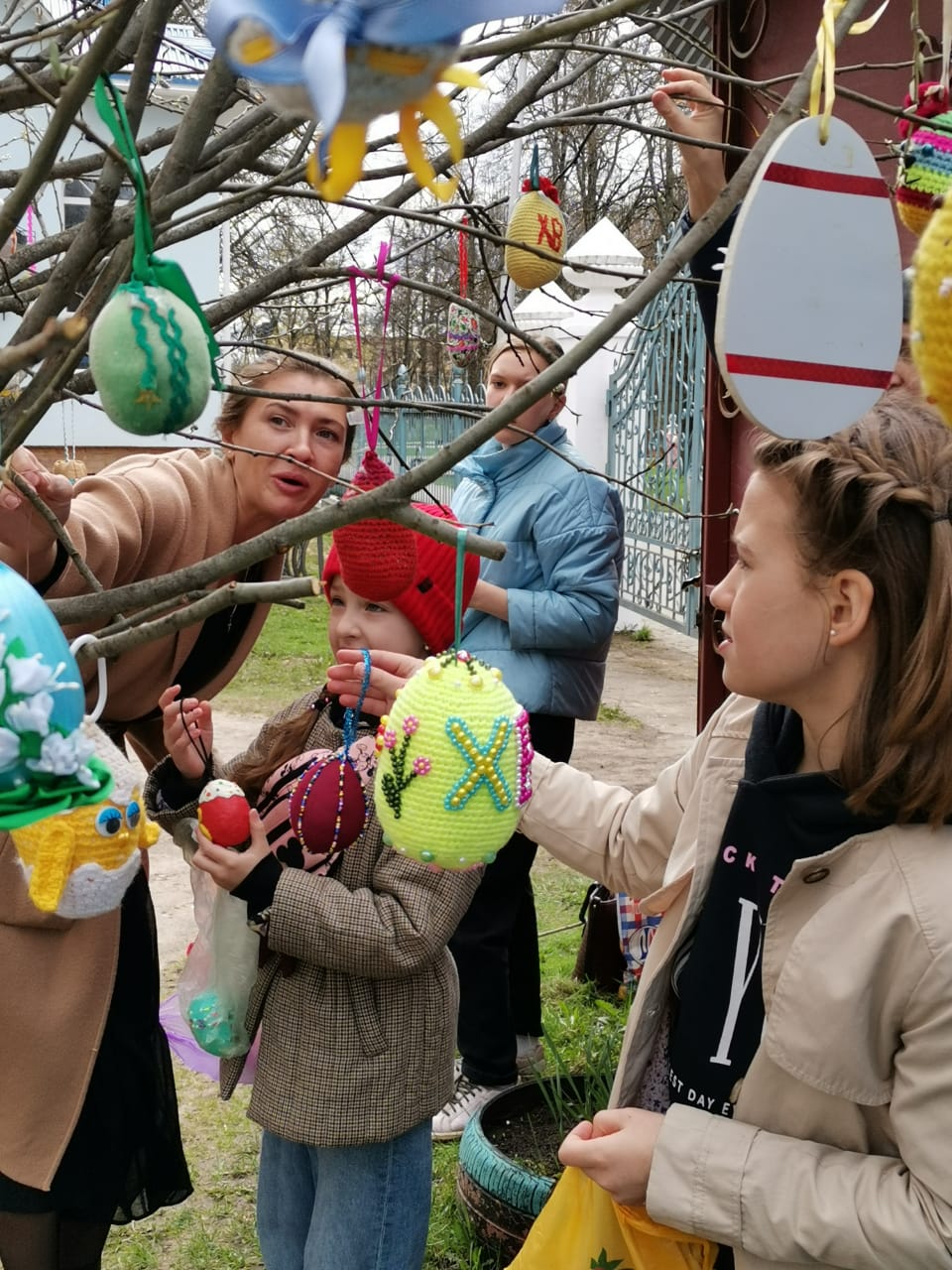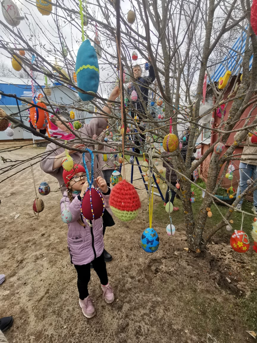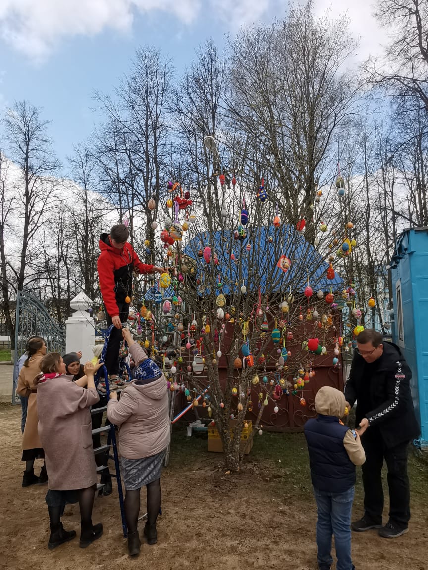 В Великую Субботу, 1 мая 2021 года, дети воскресной школы «Светоч», студии «Дошкольник», учителя и прихожане нарядили в ограде Казанского собора Пасхальное дерево. С удовольствием участвовали в этом добром деле и ученики из средней школы № 2 со своими педагогами. А в традиционной акции «Украсим Пасхальное дерево вместе» приняли участие многие детские сады и школы нашего города. Радость Воскресения Христова объединяет нас, наполняет нас добром.