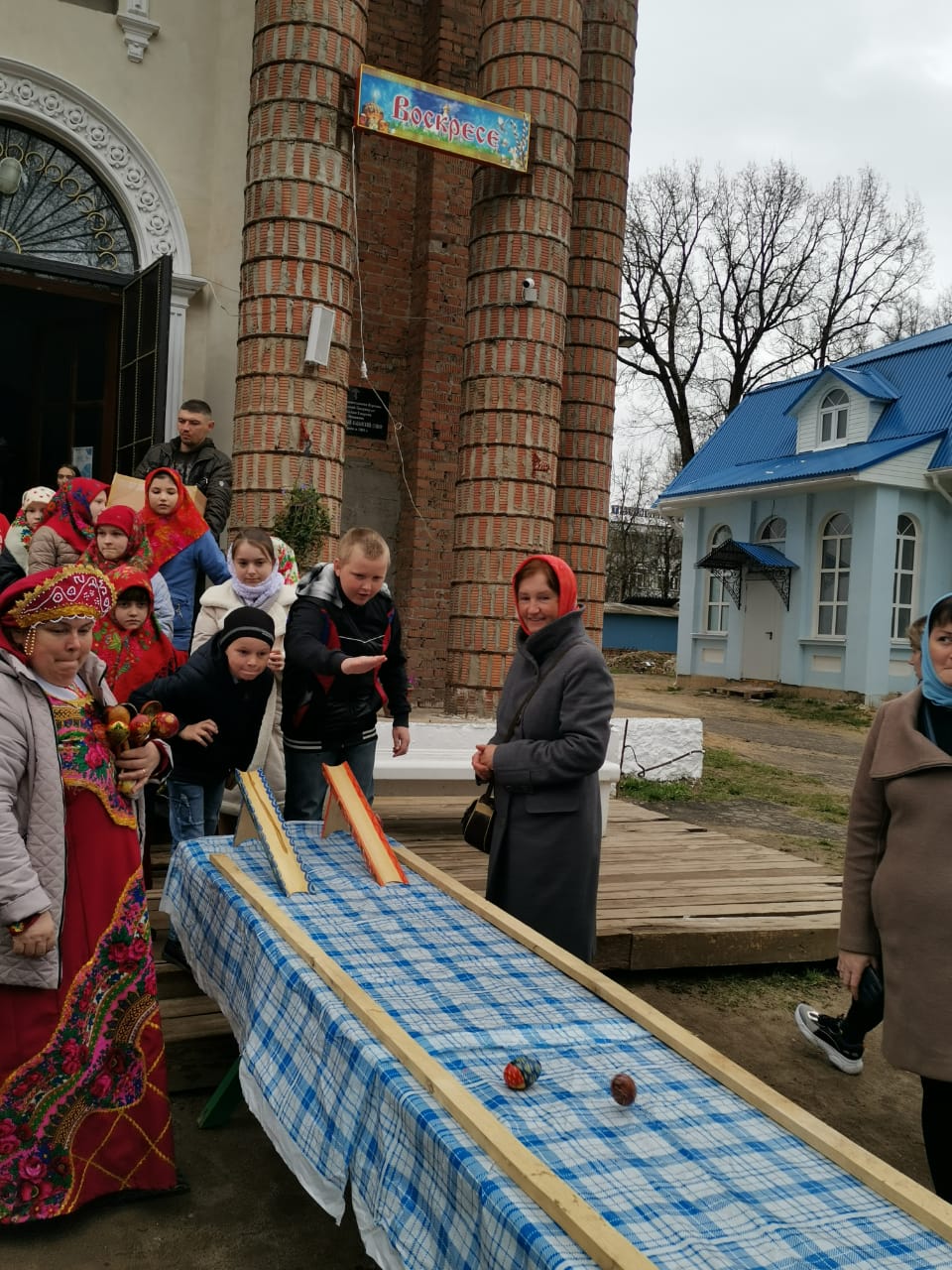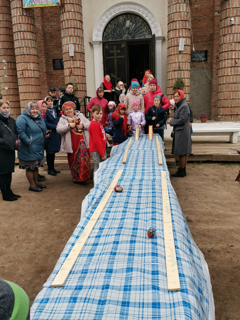 После молебна, по русской традиции, дети и взрослые катали яйца, звонили в колокола, пели праздничные песни. И, конечно, не обошлось без пасхальных подарков – шоколадок для детей от наших добрых и внимательных благодетелей.