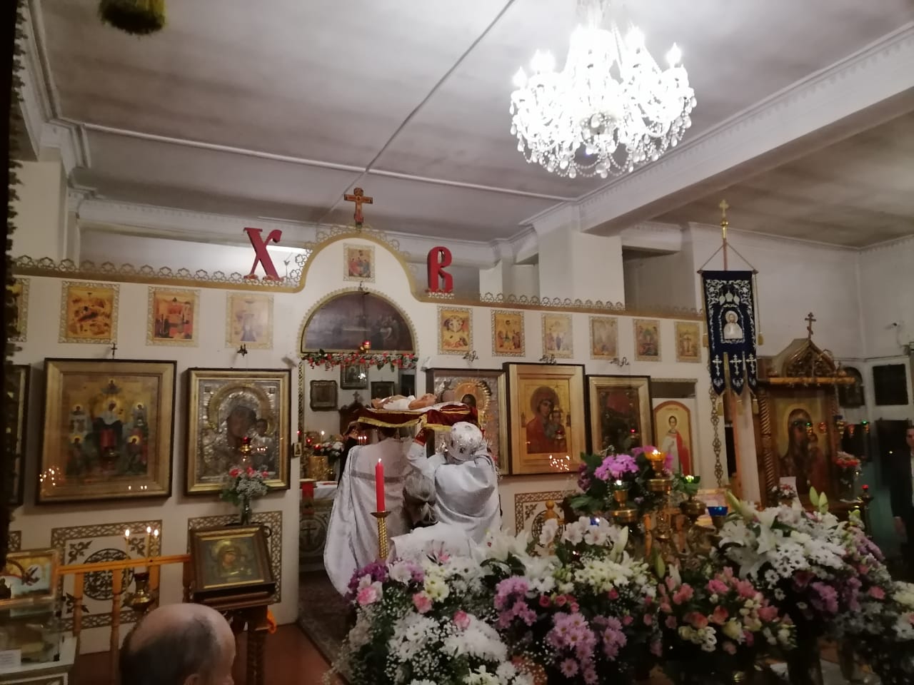 За полчаса до 12 часов ночи началась полунощница: было совершено каждение перед Плащаницей, затем Плащаницу перенесли в алтарь, возложив на Святой Престол, где она будет находиться до Отдания Пасхи.