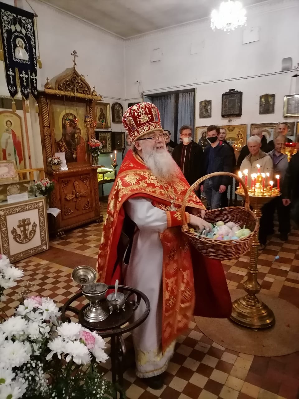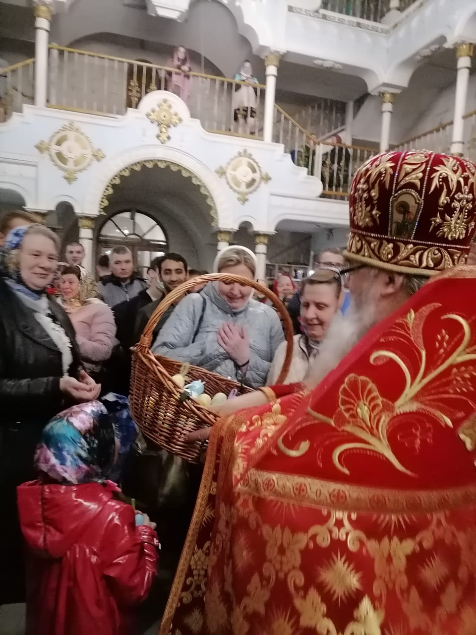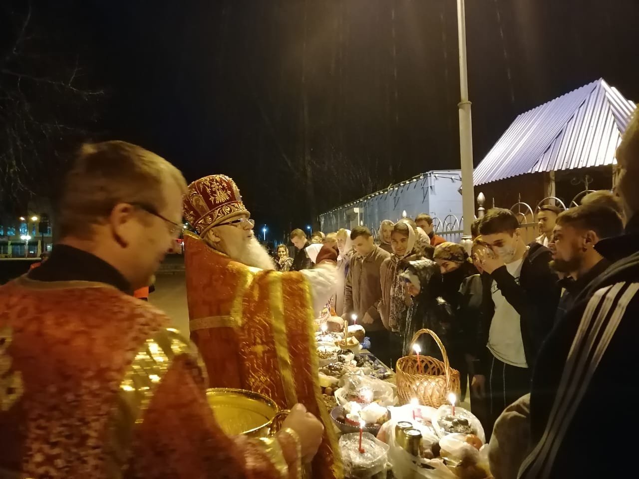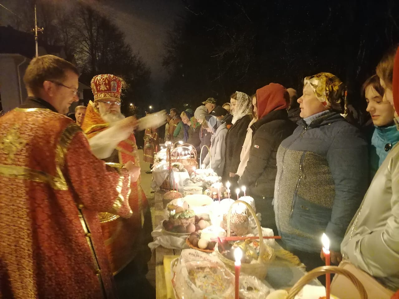 В Пасхальную ночь были оглашены праздничные Послания, звучали Пасхальные песнопения и поздравления, освящались Пасхальным чином куличи и пасхи. С искренней радостью приветствовали друг друга люди «Христос Воскресе! Воистину Воскресе Христос!»