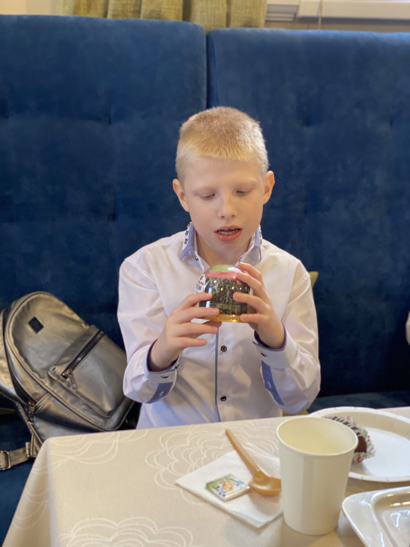 В кафе был организован уголок, который посвящен пасхальному детскому творчеству, детки за несколько недель на занятиях в воскресной школе создавали чудесные поделки — разрисовывали деревянные яйца и матрёшек. Любой желающий может взять себе понравившуюся поделку и оставить скромное пожертвование.