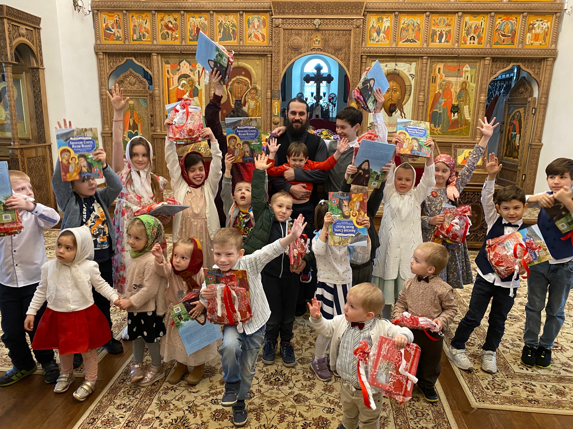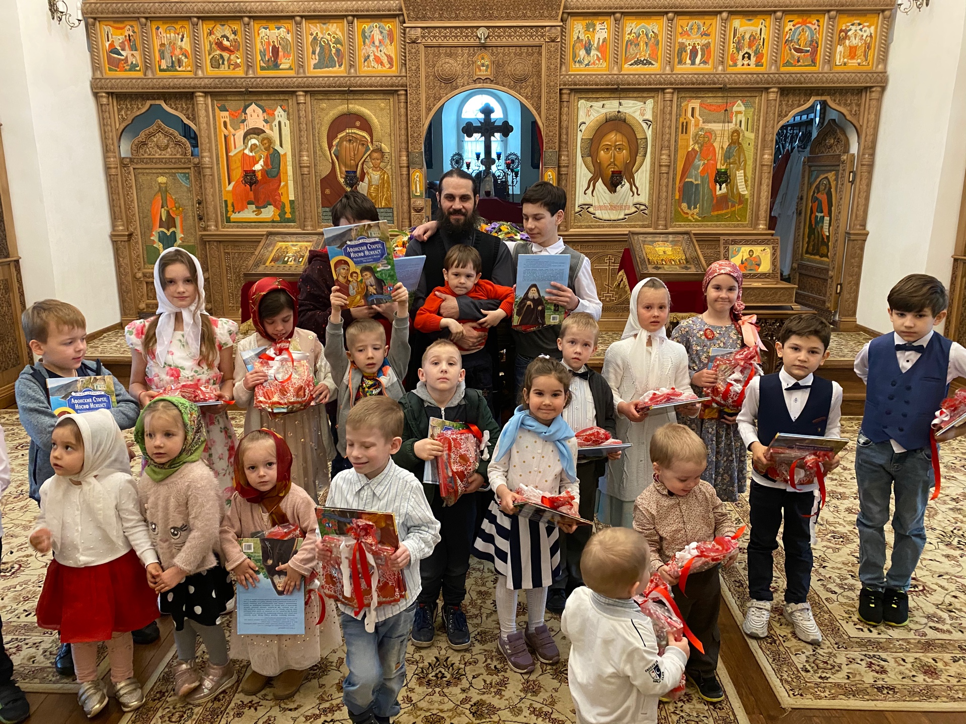По окончании праздника настоятель храма иерей Максим Изопов поблагодарил детей за их талантливые выступления, вручая всем пасхальные подарки — детские книги и сладости.