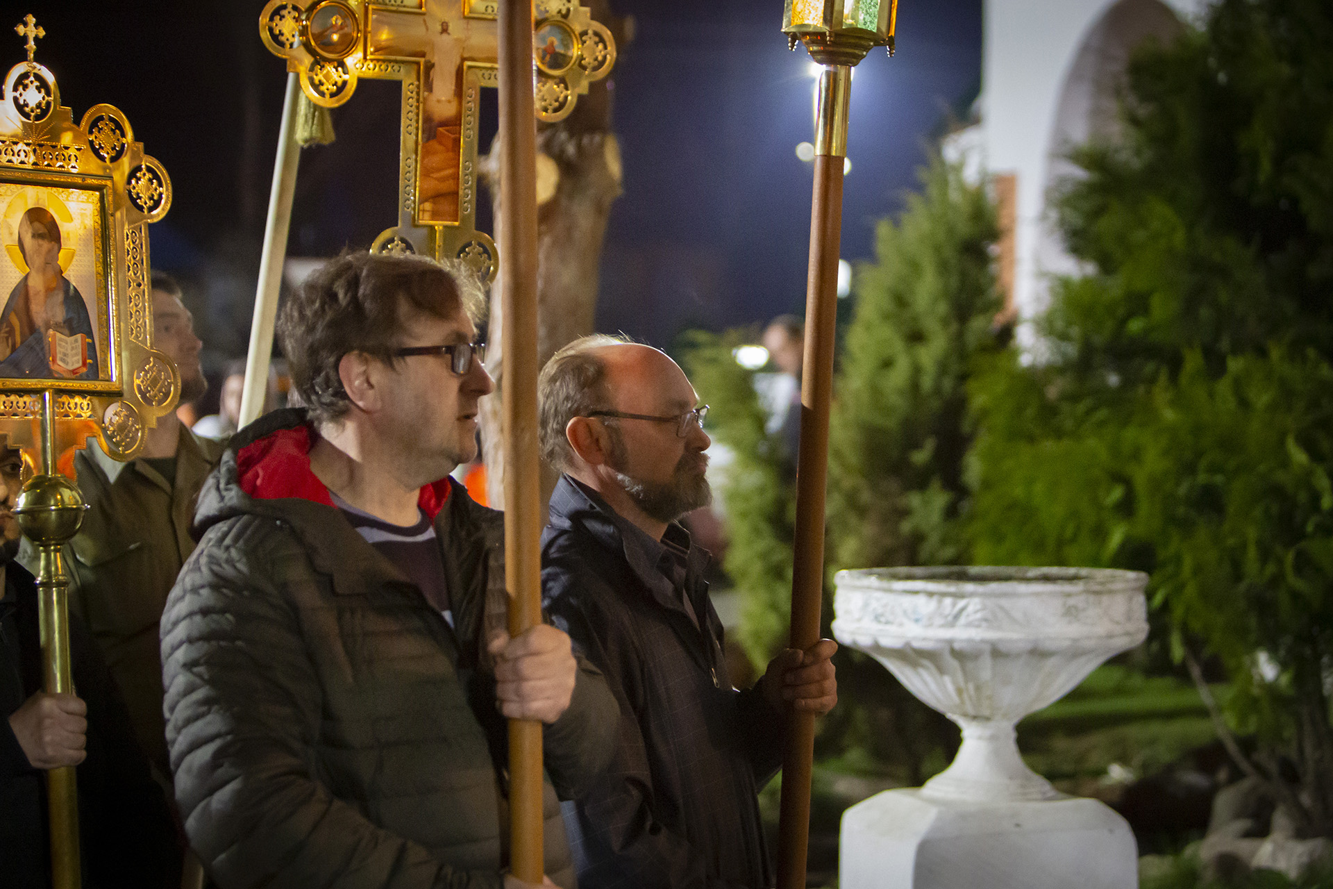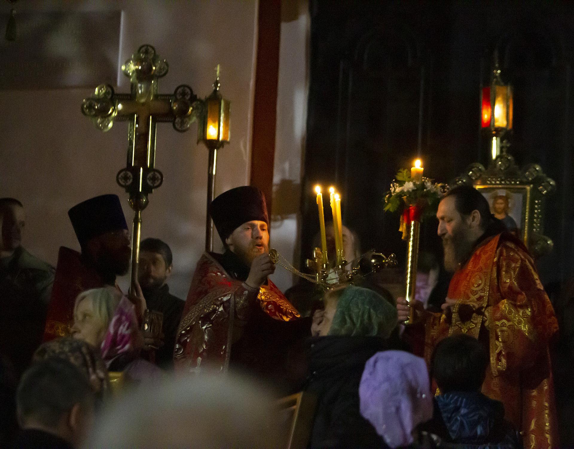 Богослужения совершил клирик храма Преображения Господня иерей Симеон Худяков в сослужении диакона Валерия Волкова. В праздничное ночное богослужение был совершён Крестный ход. Во время праздничной Пасхальной утрени в храм прибыл Благодатный огонь из Иерусалима.