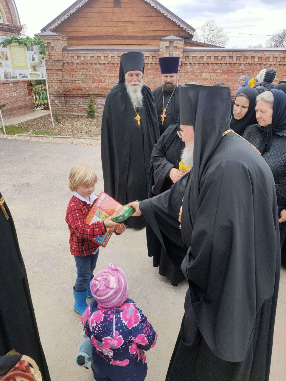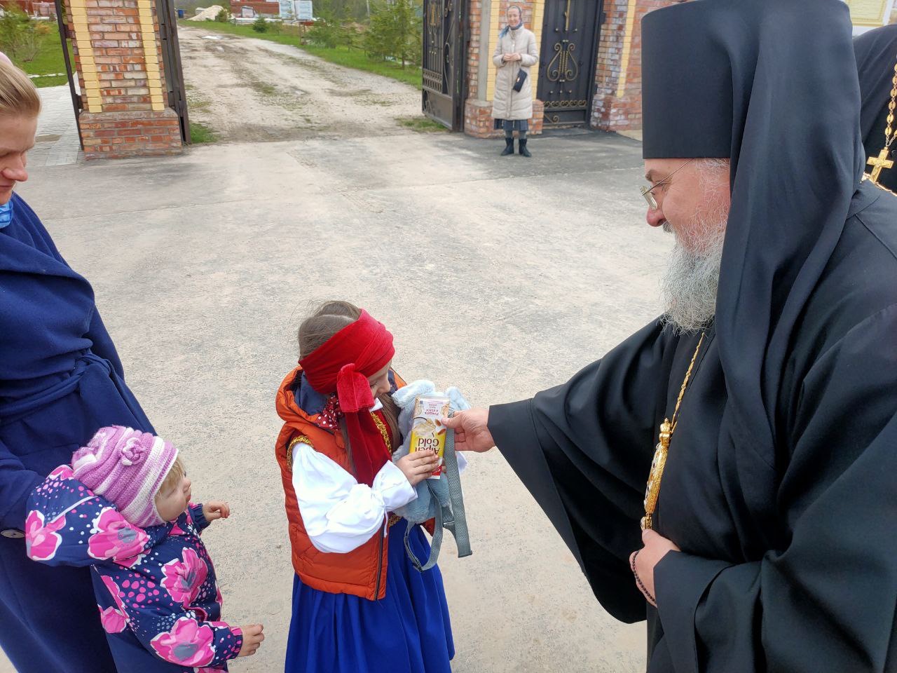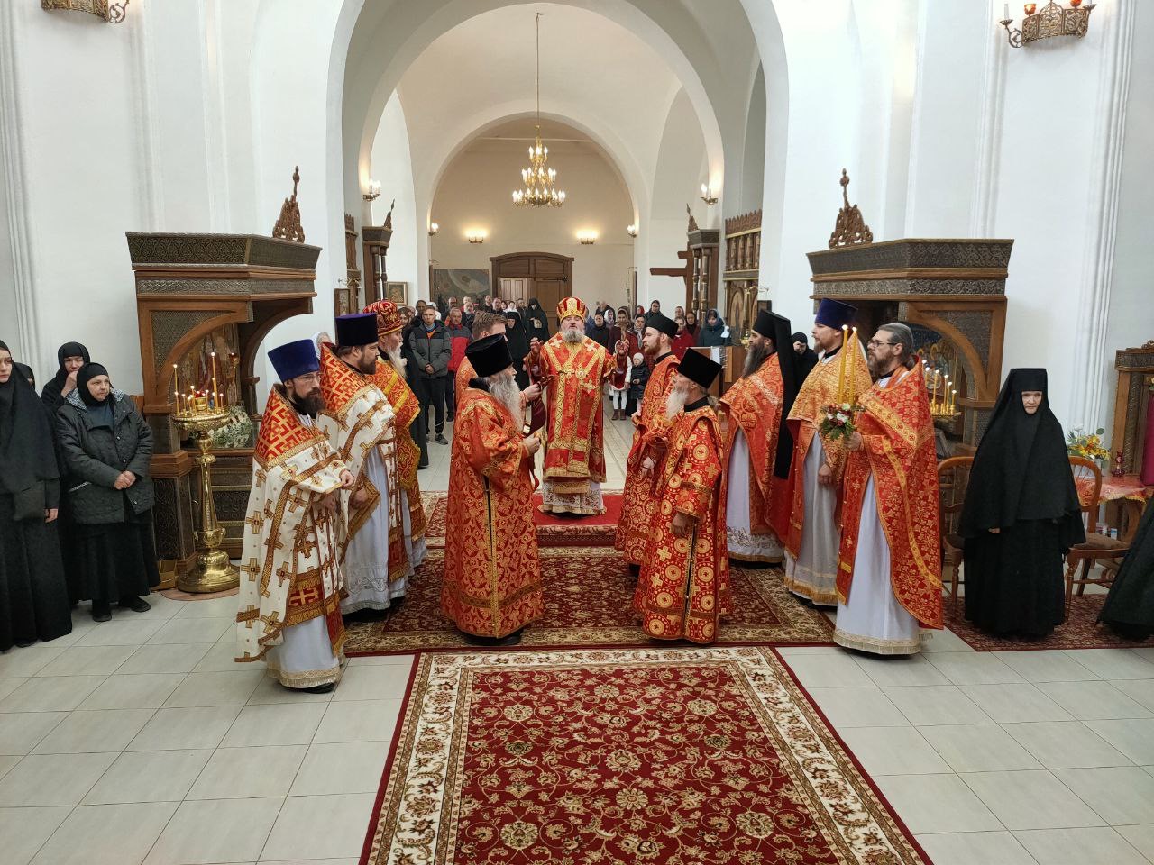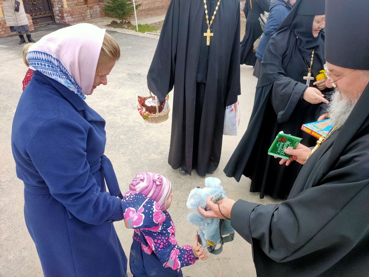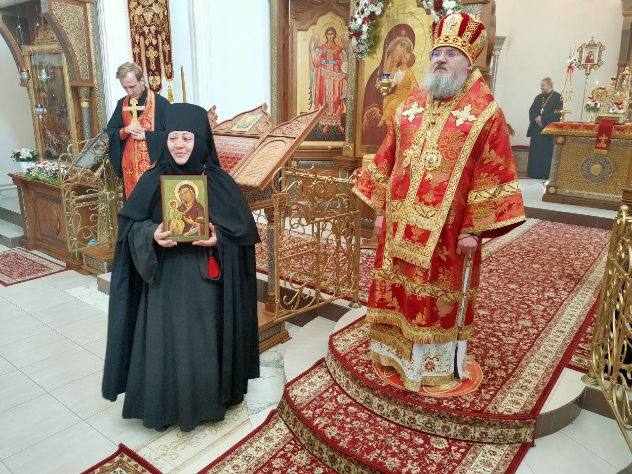 Архипастырь поздравил настоятельницу монастыря игумению Виталию с днем тезоименитства, поблагодарил ее за труды по обустройству новосозданной обители и преподнес ей святую просфору и букет цветов.