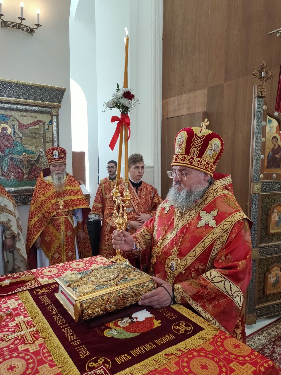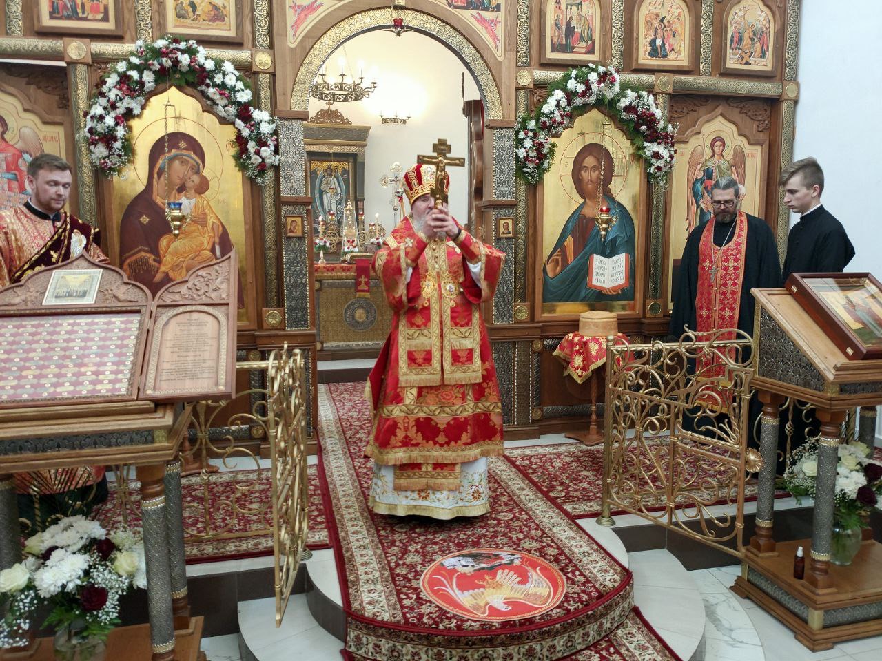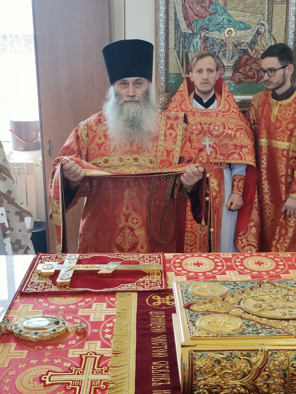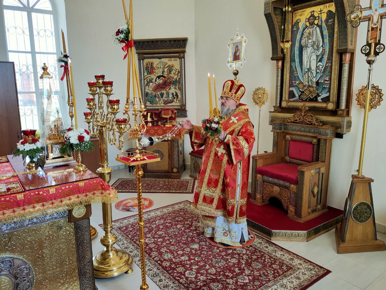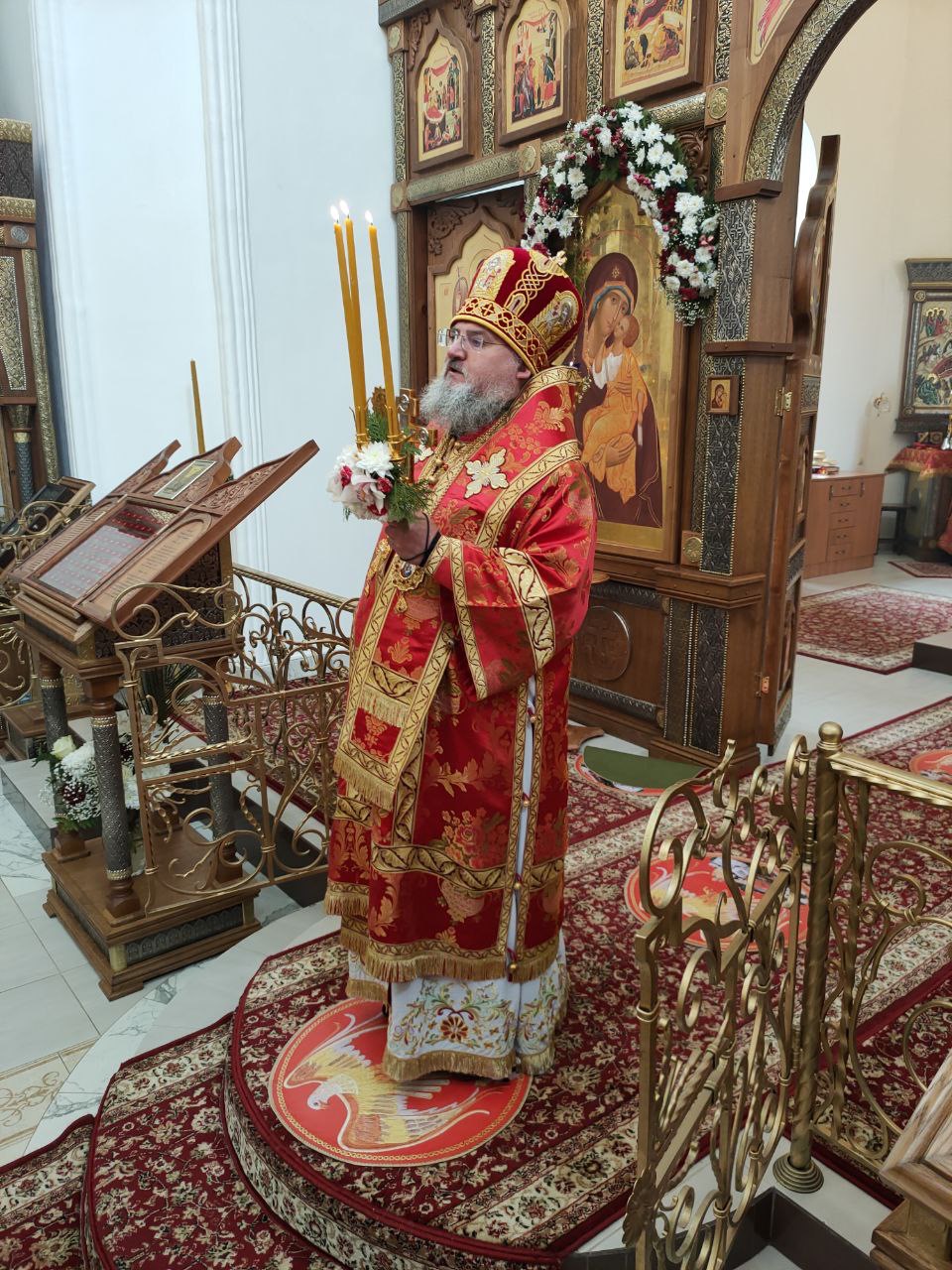 Архипастырь поздравил настоятельницу монастыря игумению Виталию с днем тезоименитства, поблагодарил ее за труды по обустройству новосозданной обители и преподнес ей святую просфору и букет цветов.