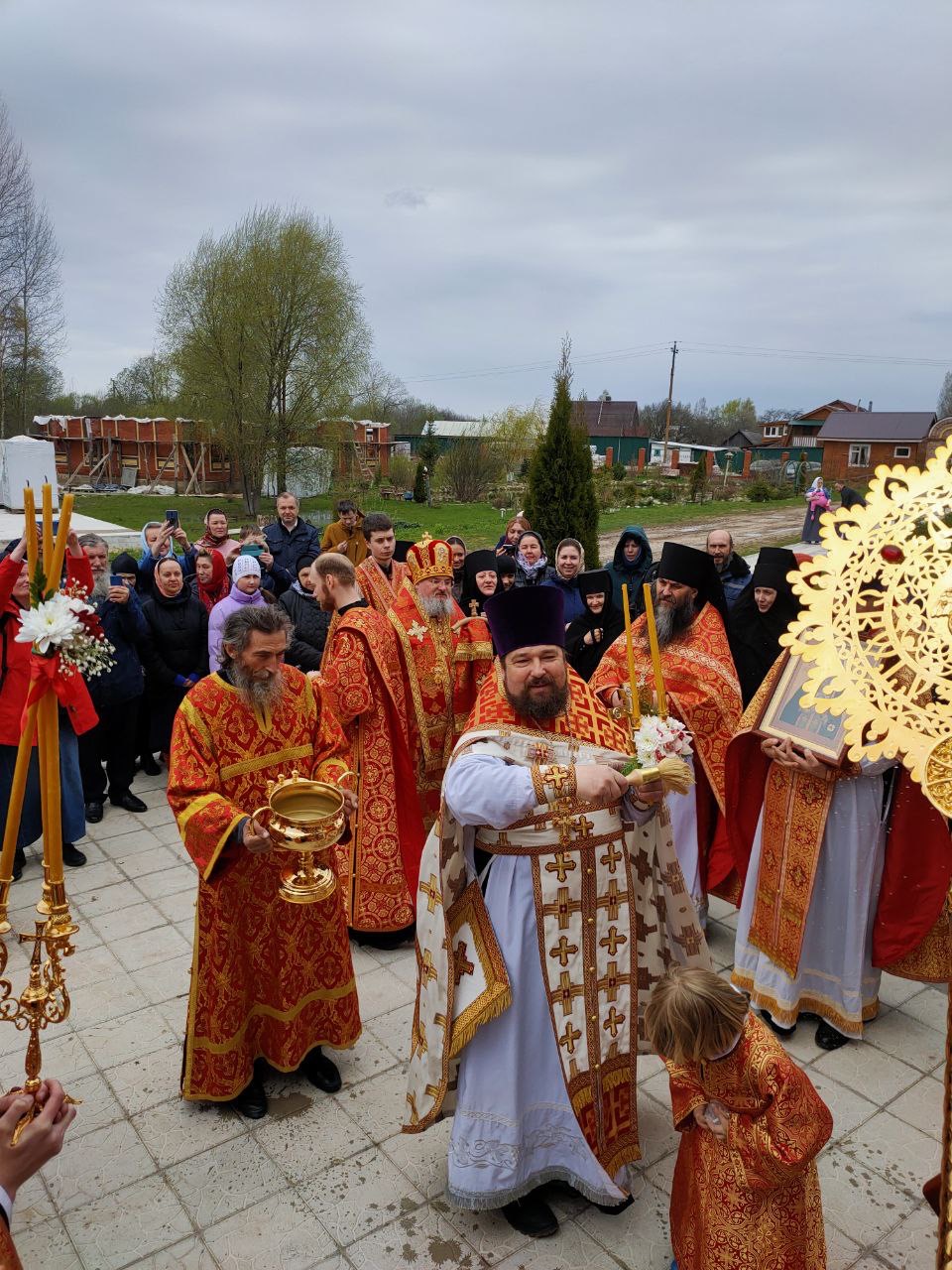 По заамвонной молитве состоялся праздничный пасхальный крестный ход вокруг храма, по завершении которого владыка обратился к богомольцам с проповедью.