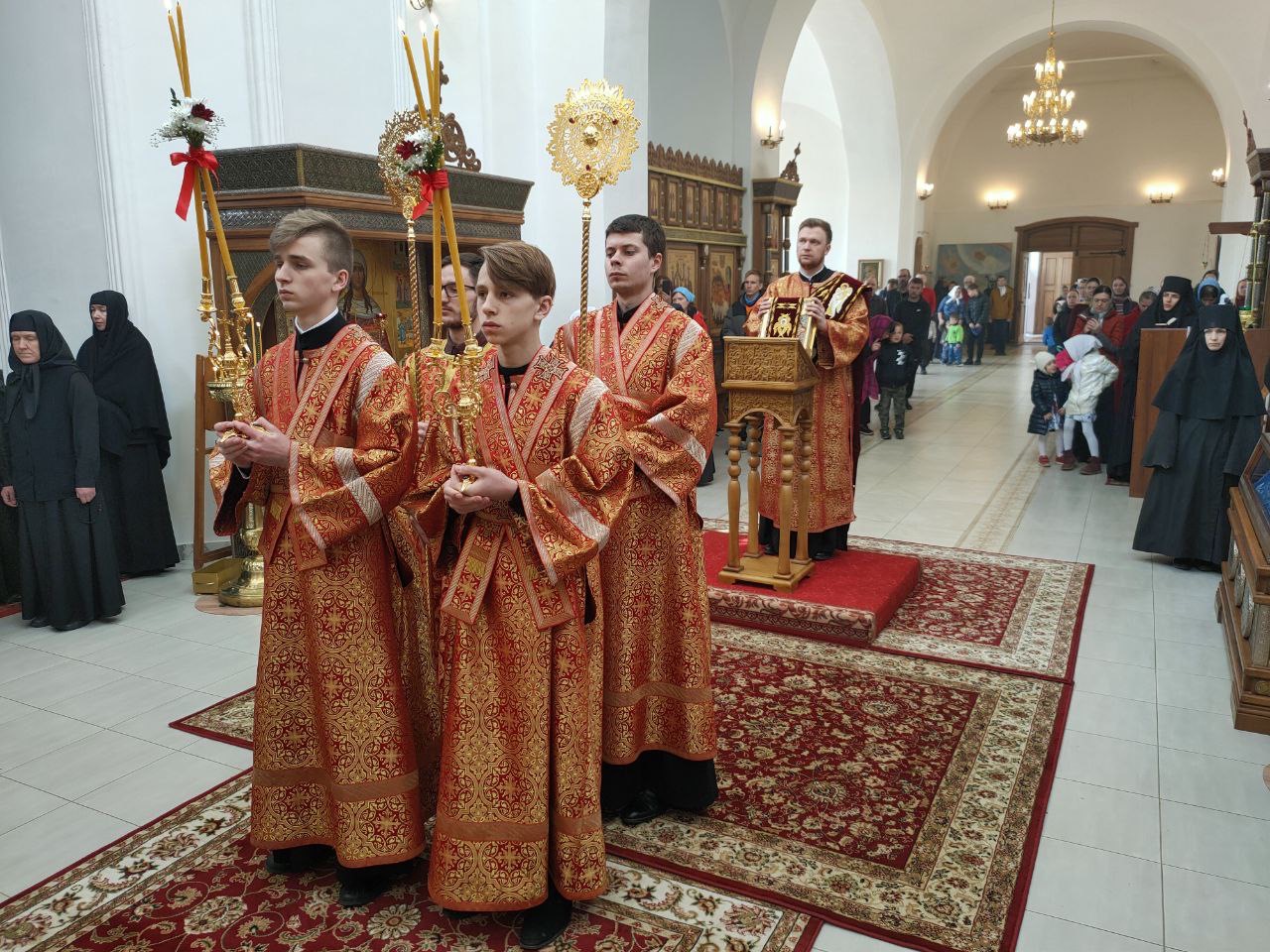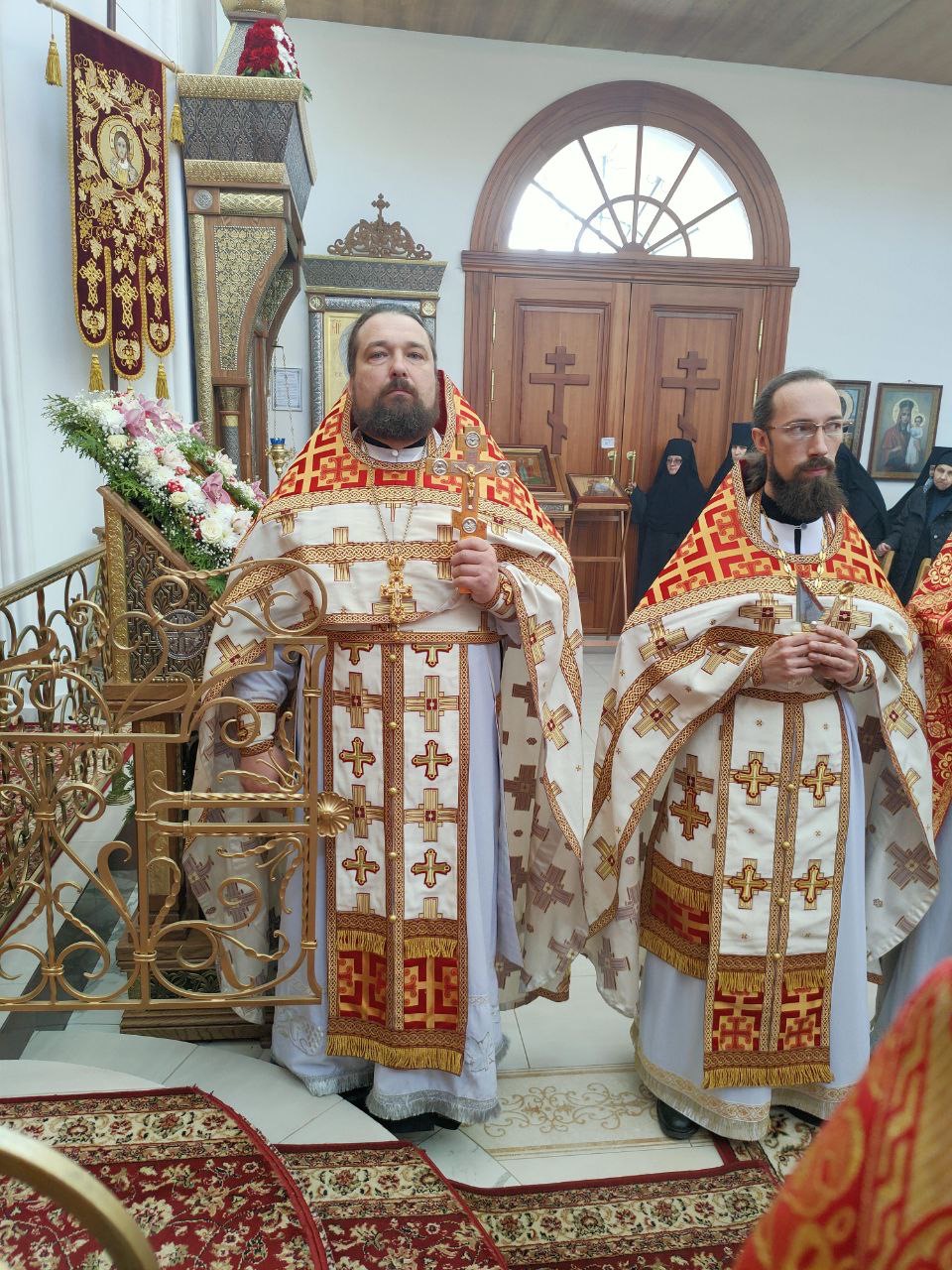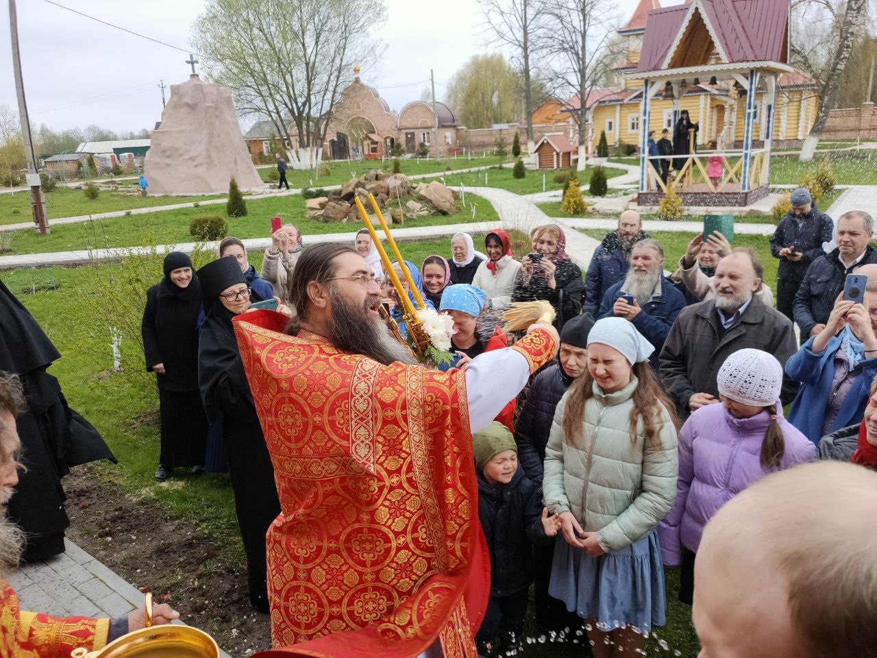 За богослужением молились: настоятельница монастыря игумения Виталия (Кочетова) с сестрами обители, старшие сестры женских монашеских общин Козельской епархии: монахиня Иоанна (Павлова) – община святых Жен Мироносиц в селе Клыково; монахиня Афанасия (Алексеева) – община мученика Антипы в селе Антипово; монахиня Анастасия (Дремина) – Вознесенская община в городе Козельске. В этот день монастырь посетили многочисленные паломники.