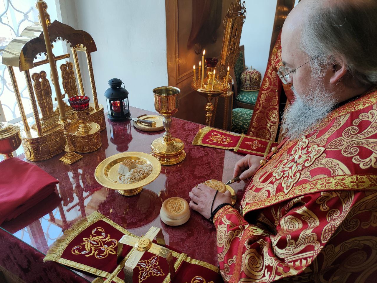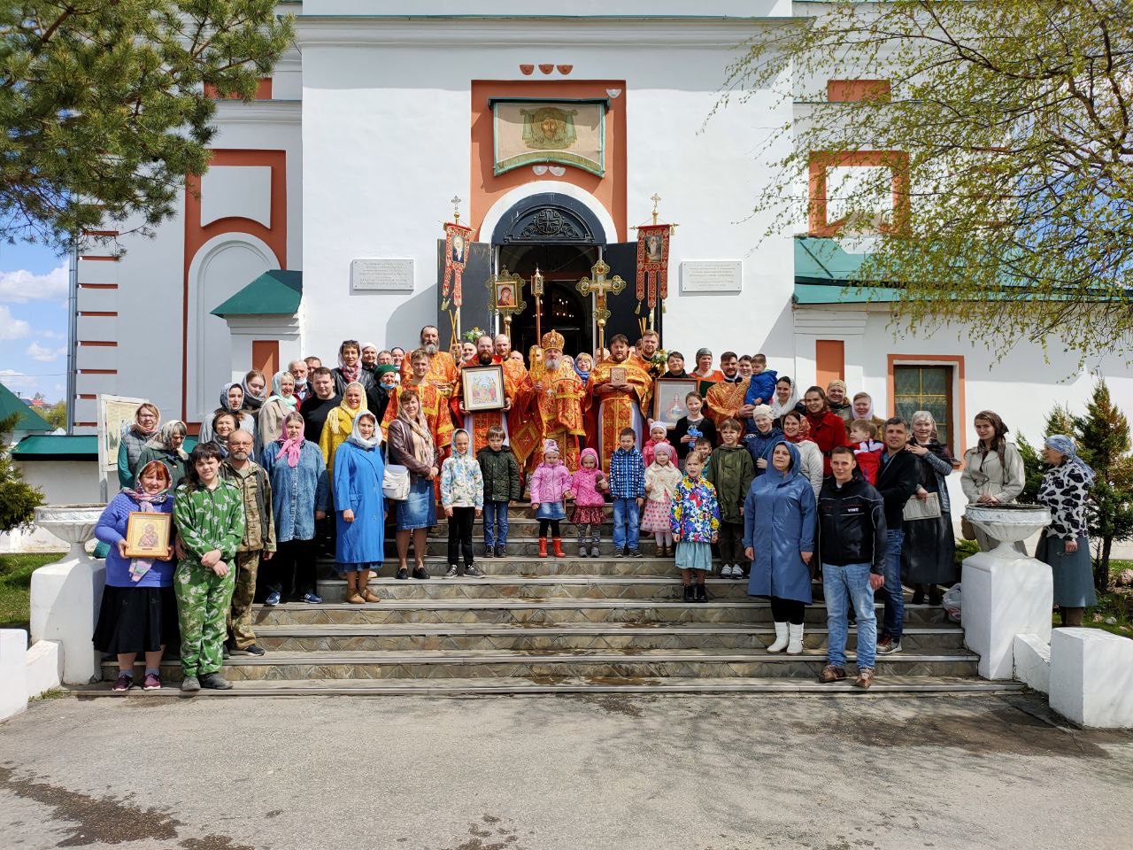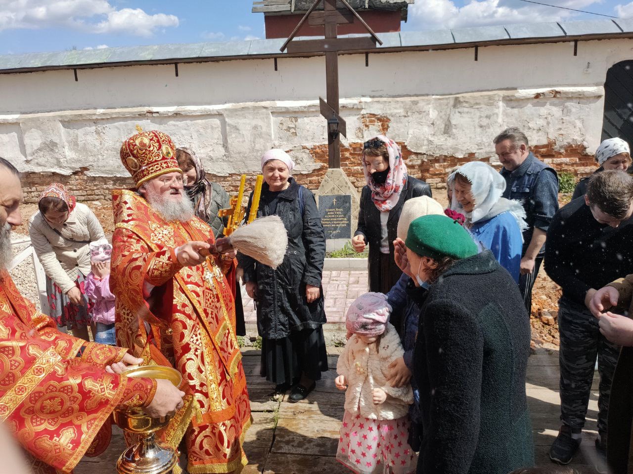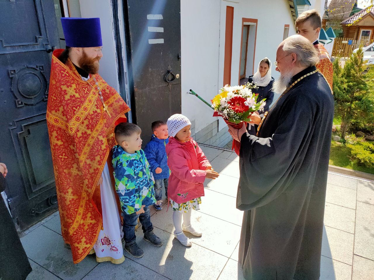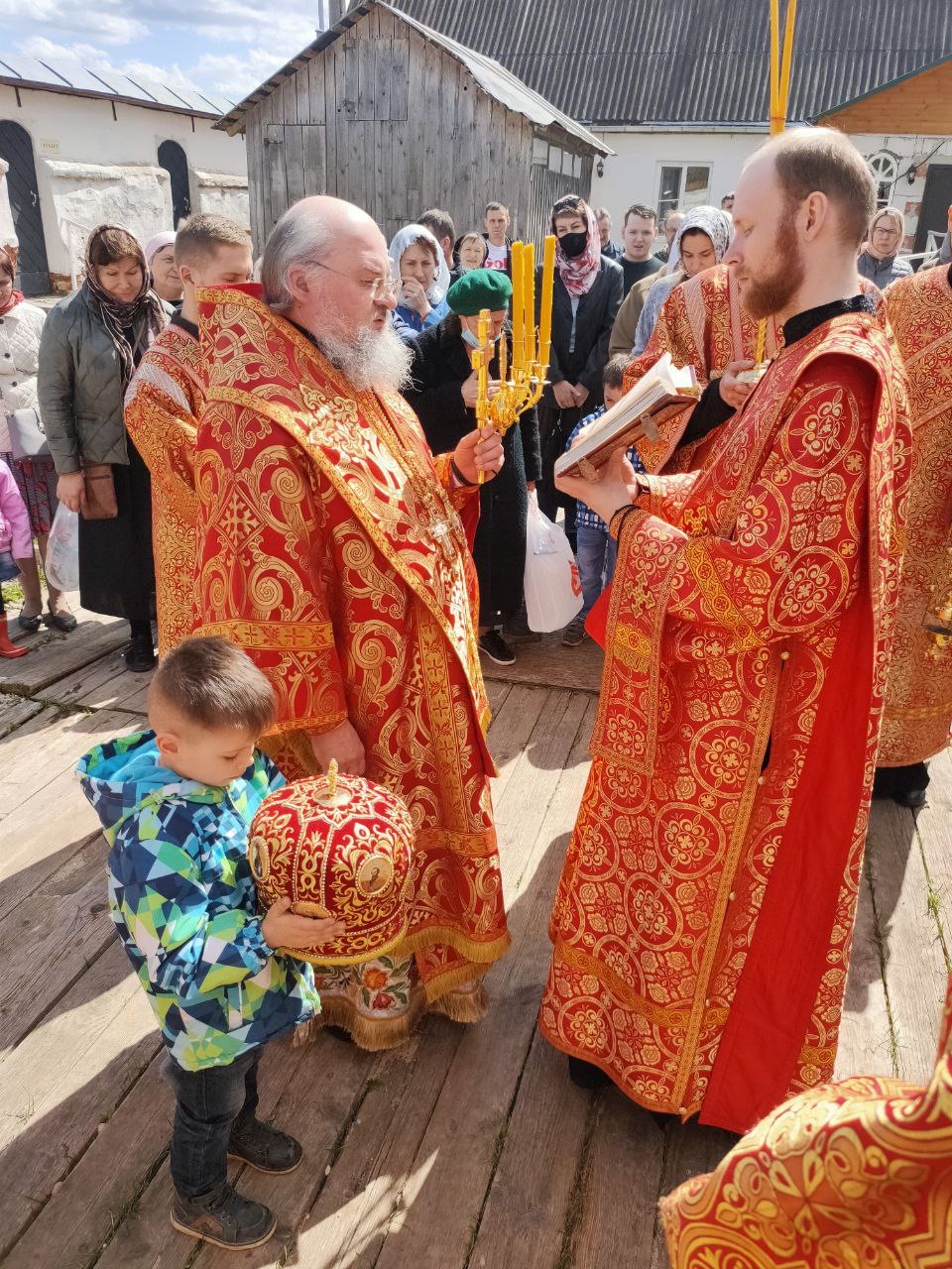 Преосвященному владыке сослужили: протоиерей Антоний Хатунцев, настоятель храма — иерей Тихон Худяков, иерей Симеон Худяков, диакон Евгений Ковригин, диакон Евгений Васильев, диакон Валерий Волков и иеродиакон Лука (Старостин).
