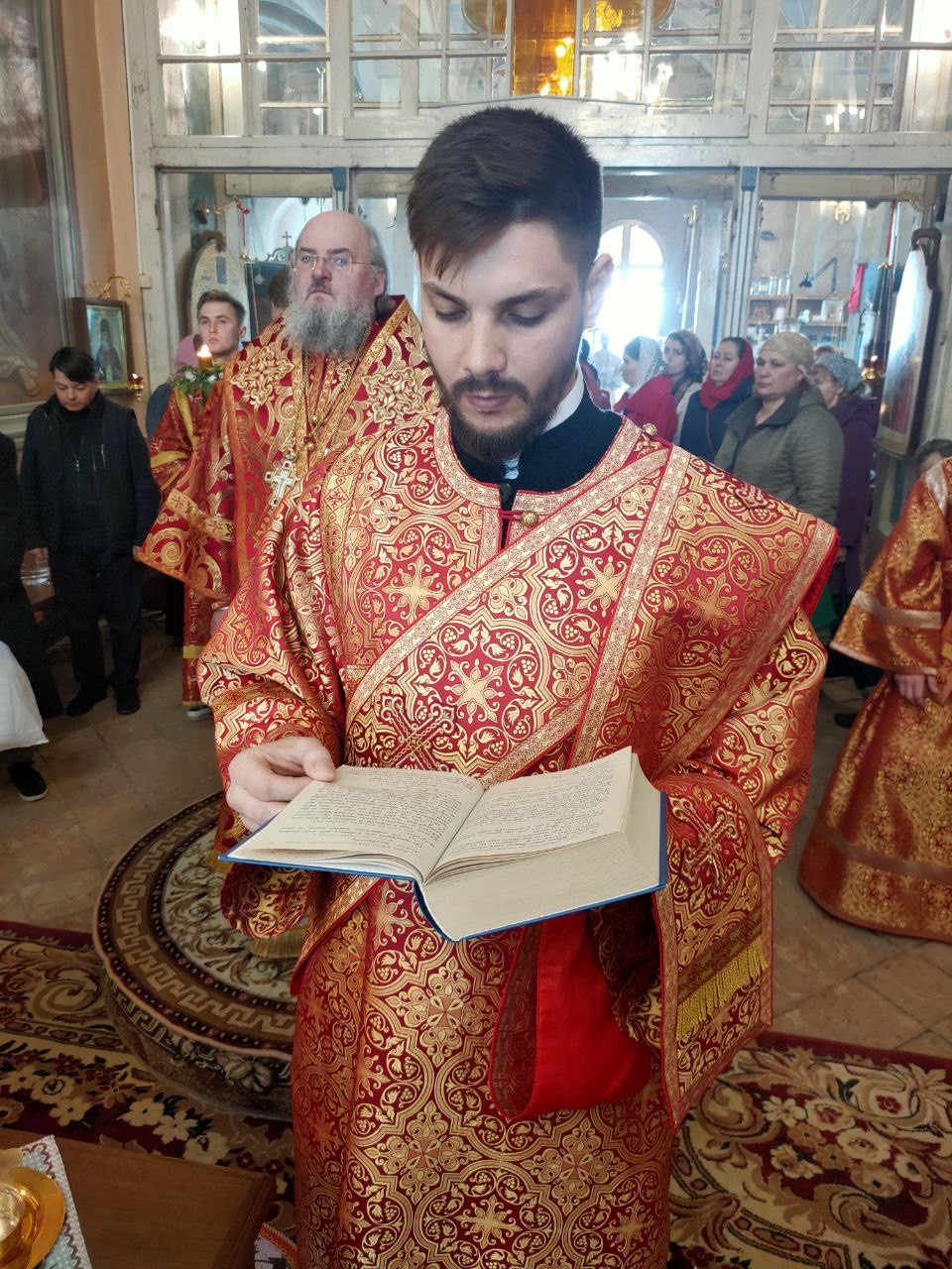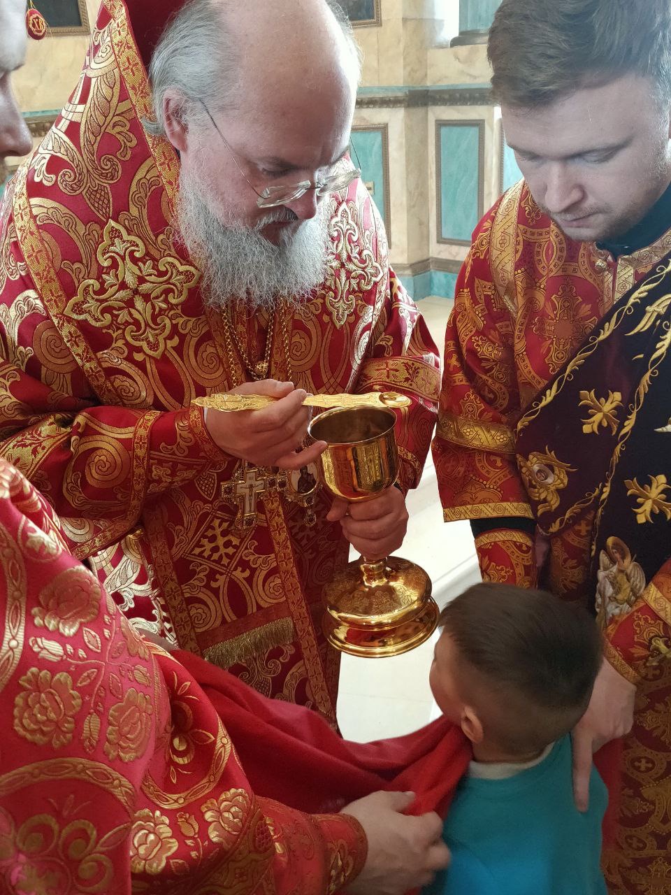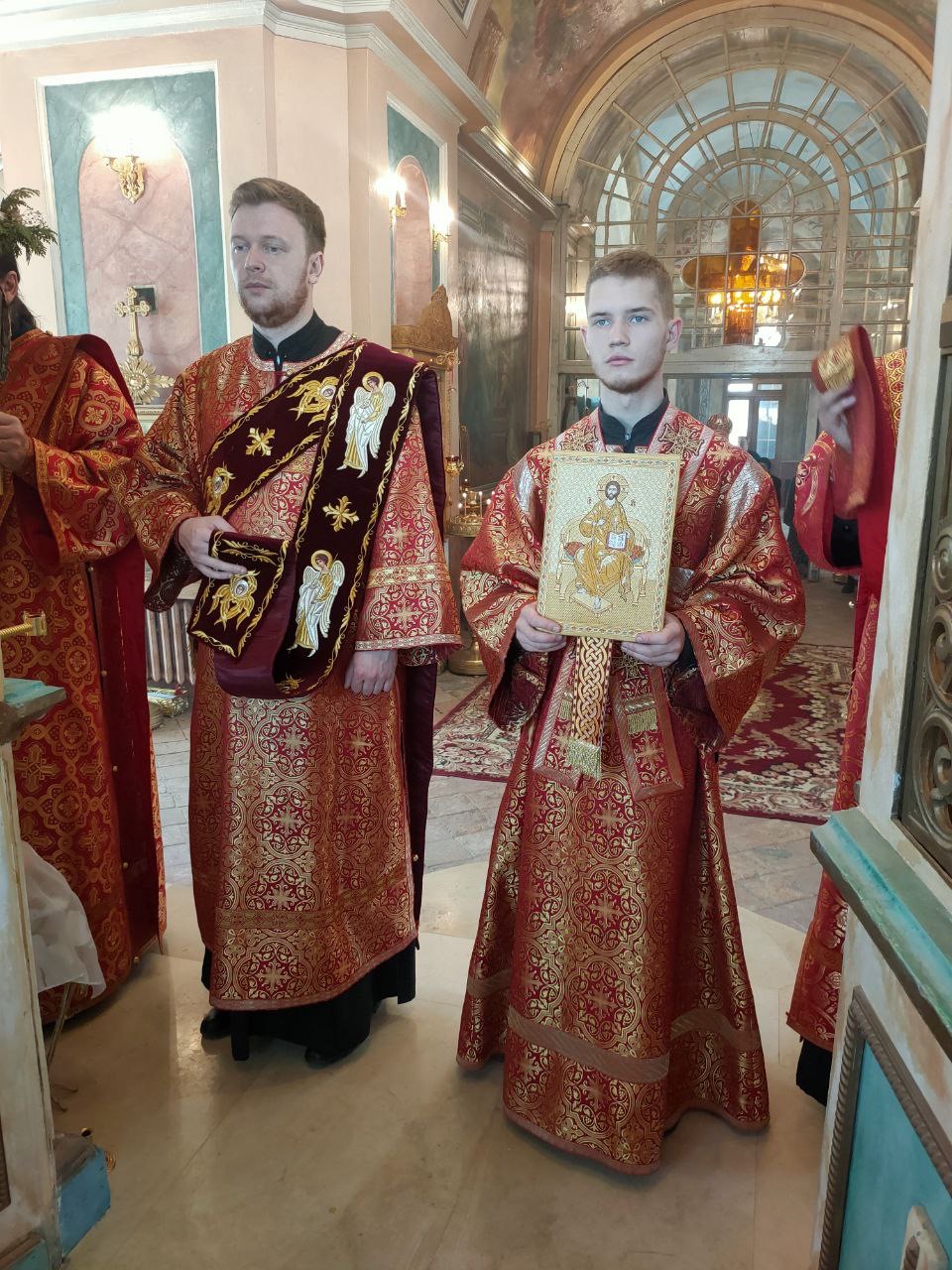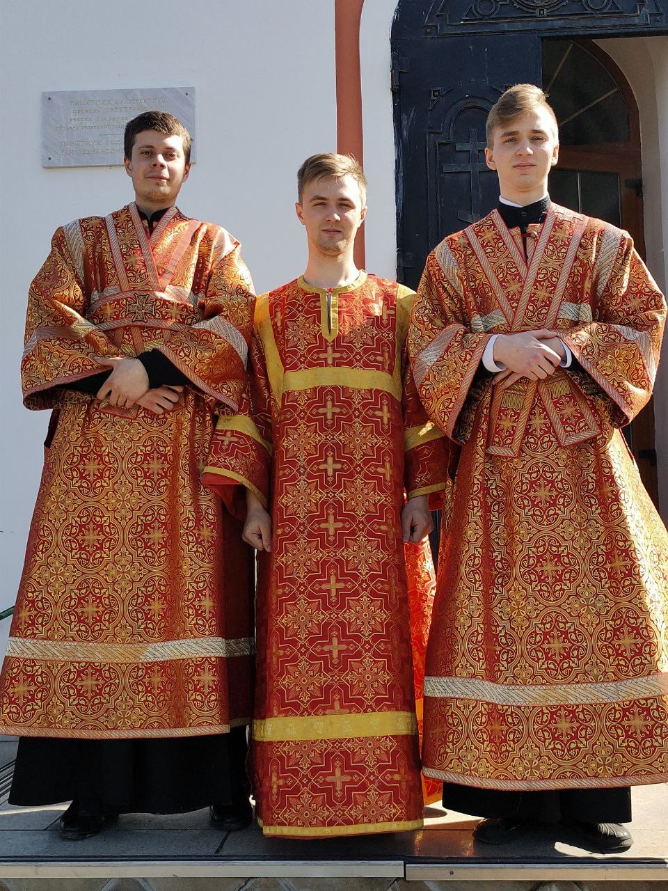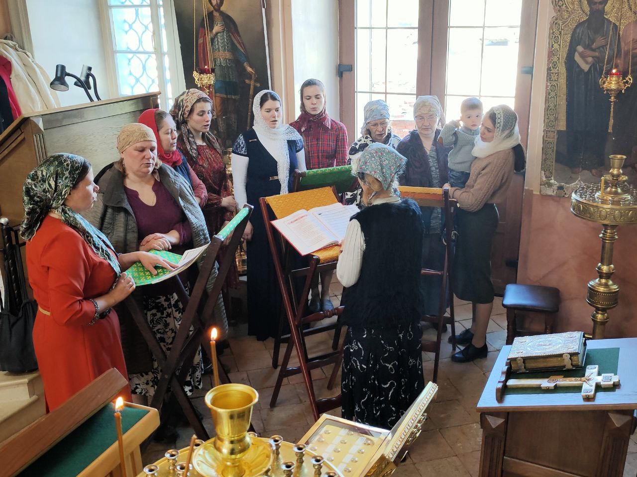 Преосвященному владыке сослужили: протоиерей Антоний Хатунцев, настоятель храма — иерей Тихон Худяков, иерей Симеон Худяков, диакон Евгений Ковригин, диакон Евгений Васильев, диакон Валерий Волков и иеродиакон Лука (Старостин).