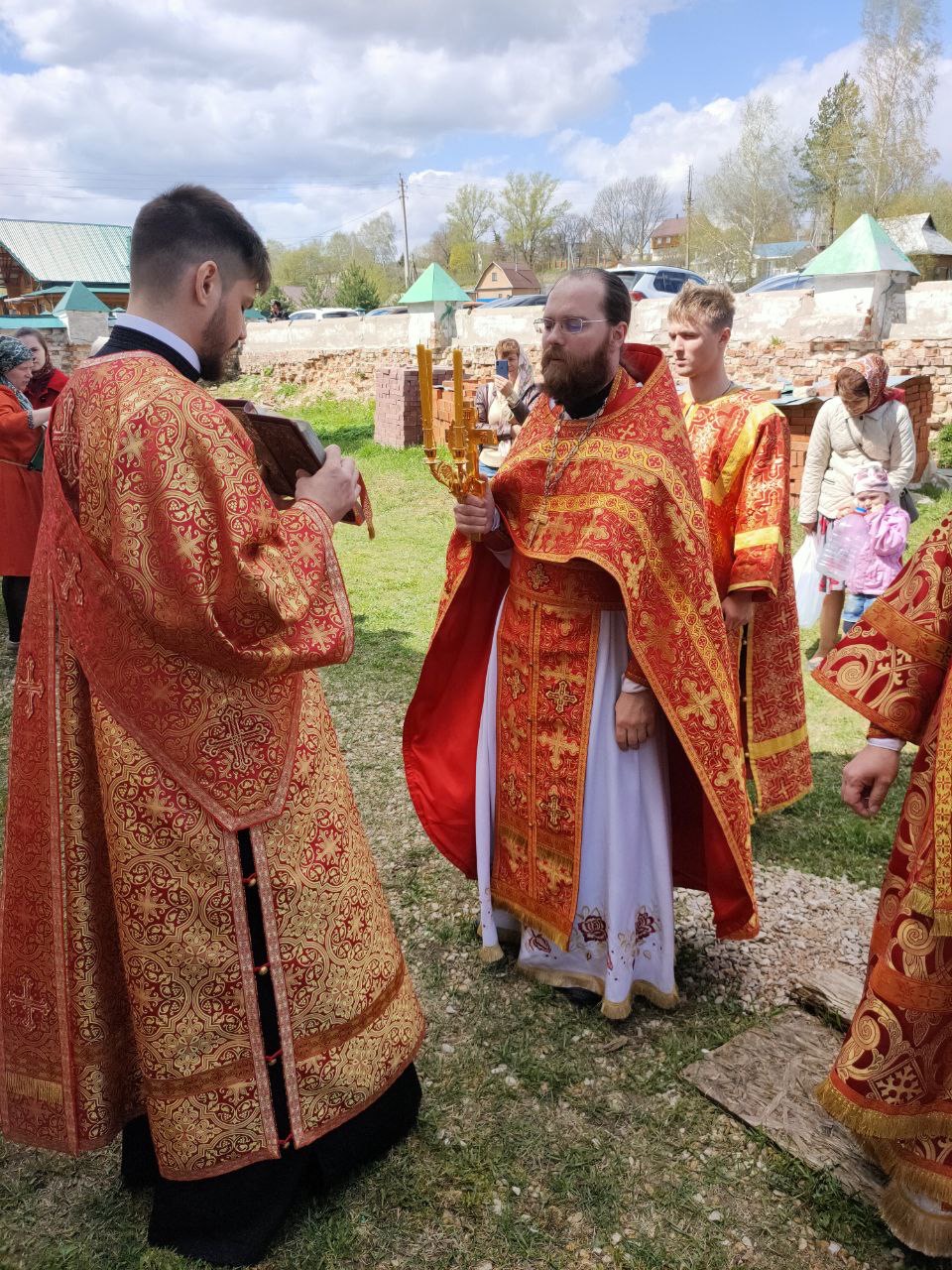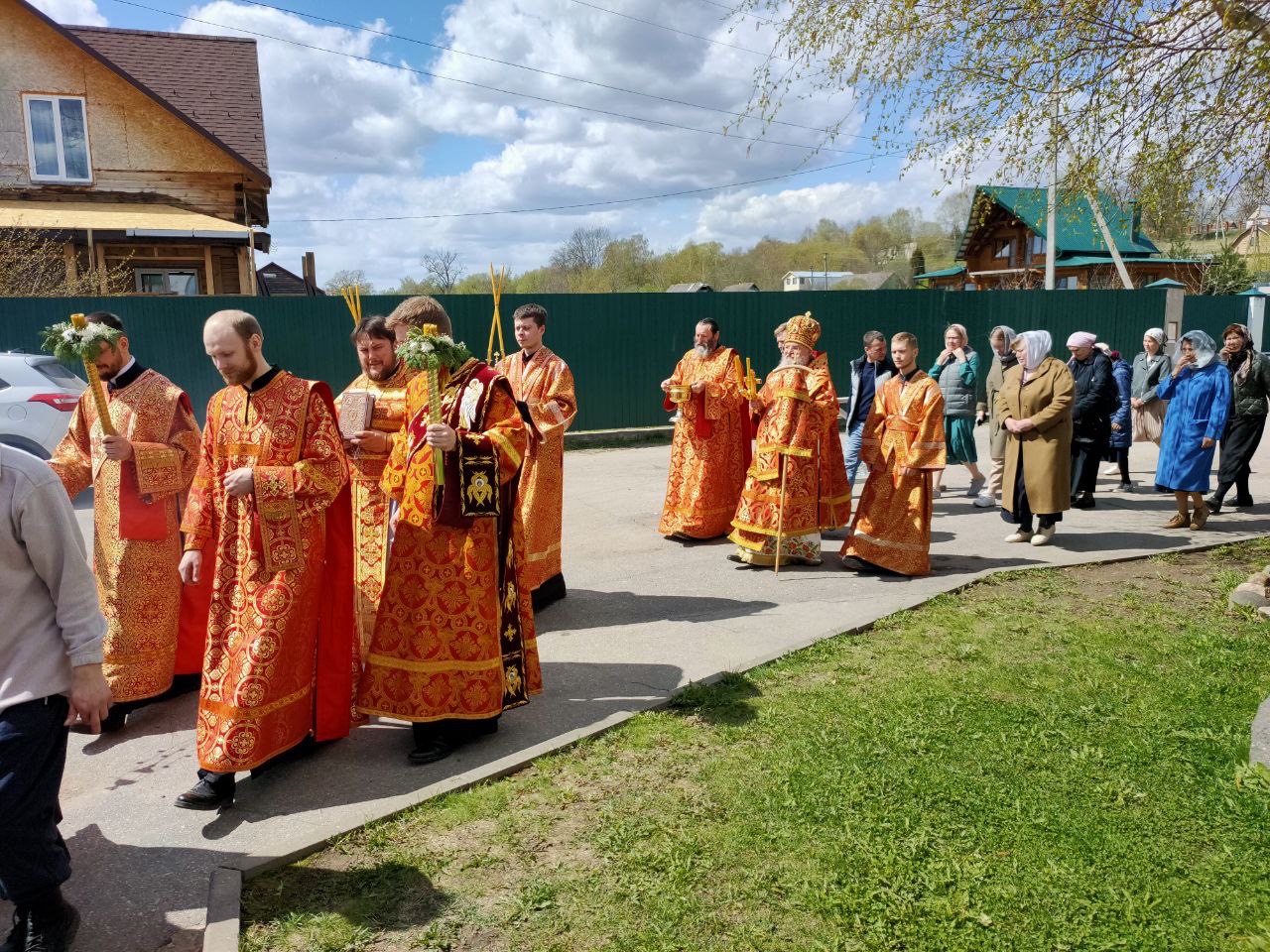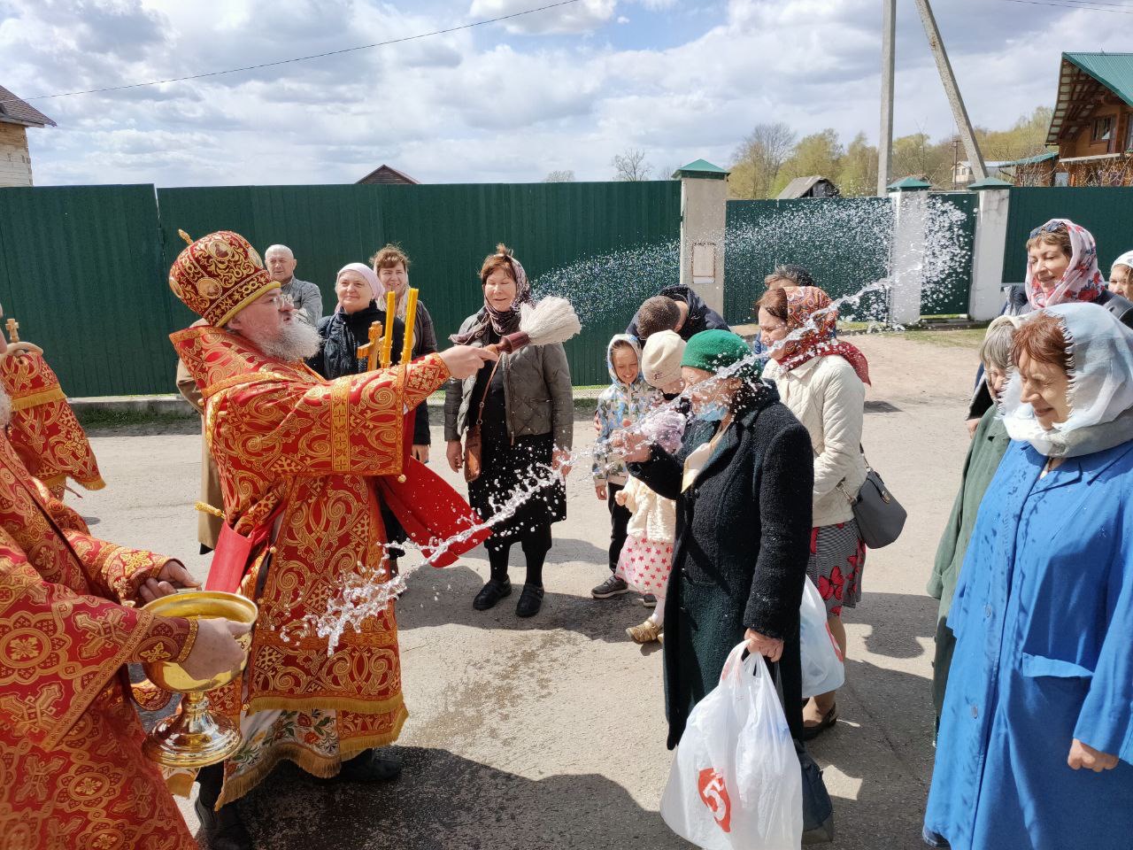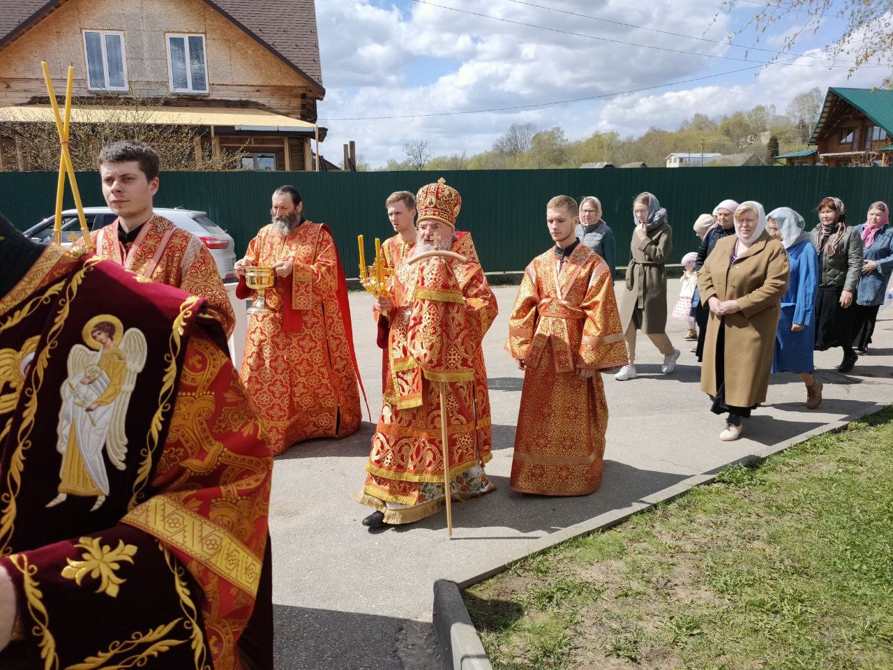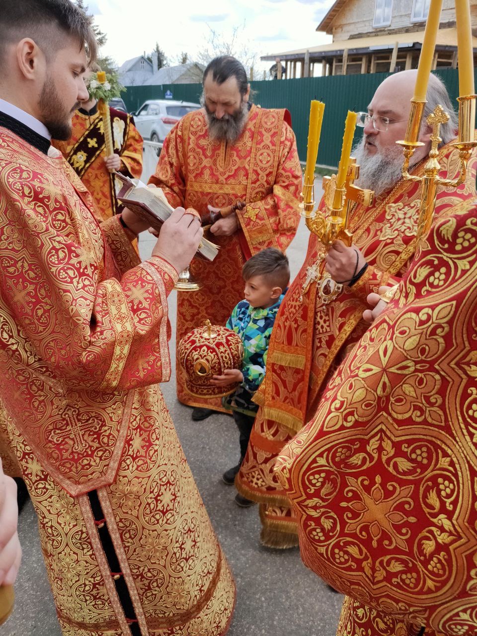 По заамвонной молитве священнослужители совершили освящение воды, а затем состоялся праздничный пасхальный крестный ход вокруг храма.