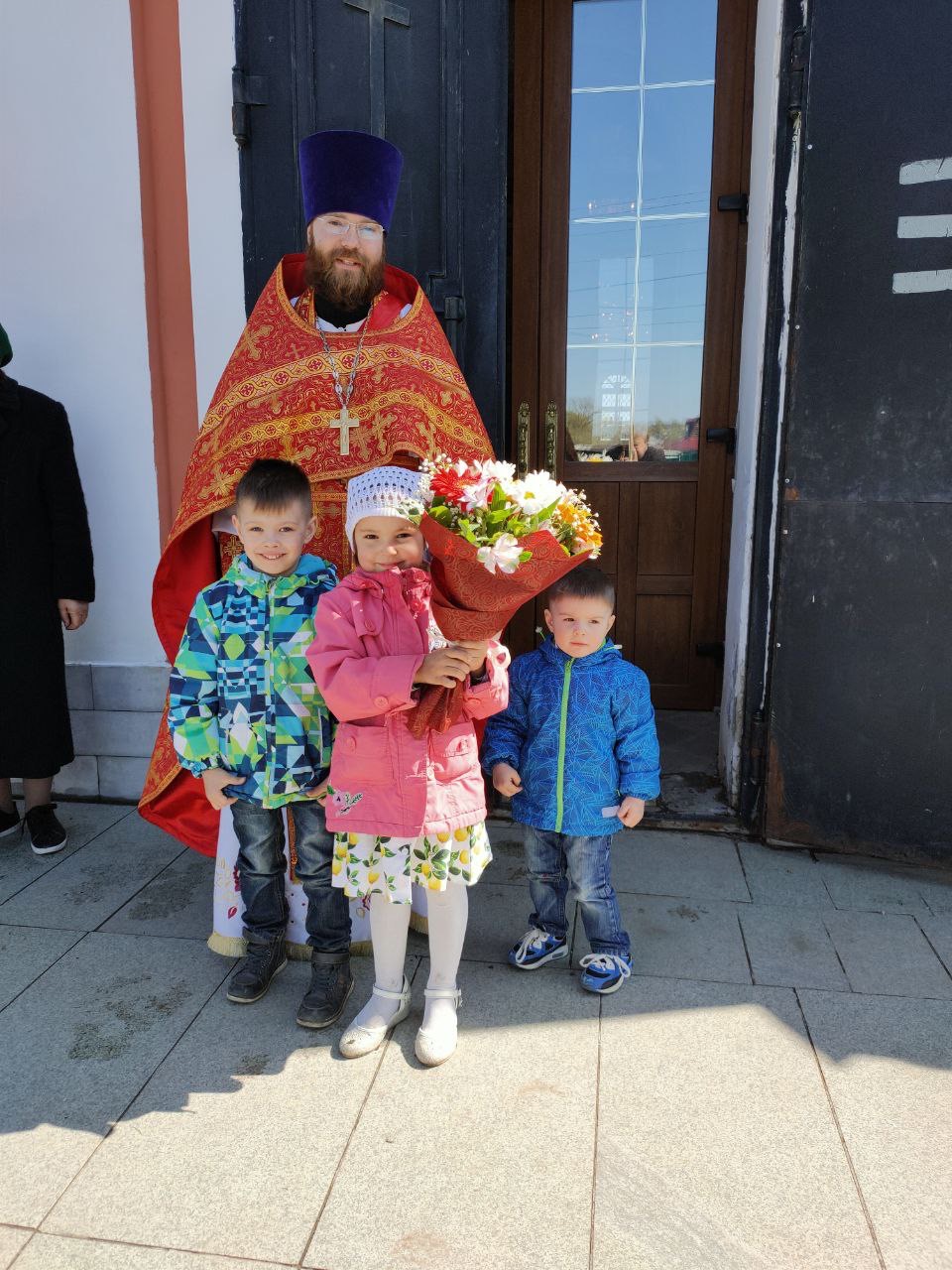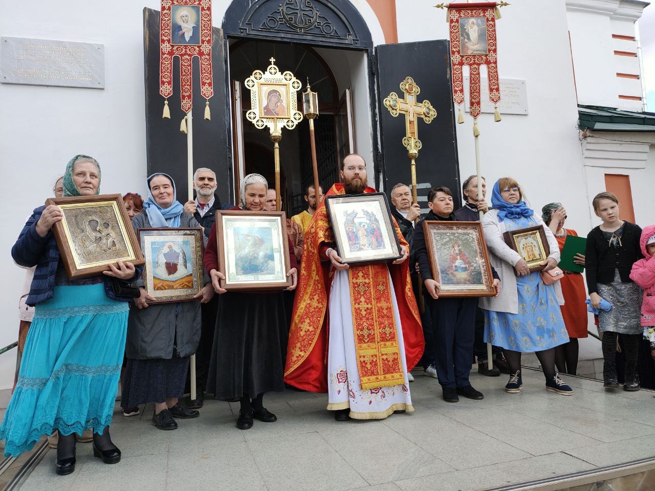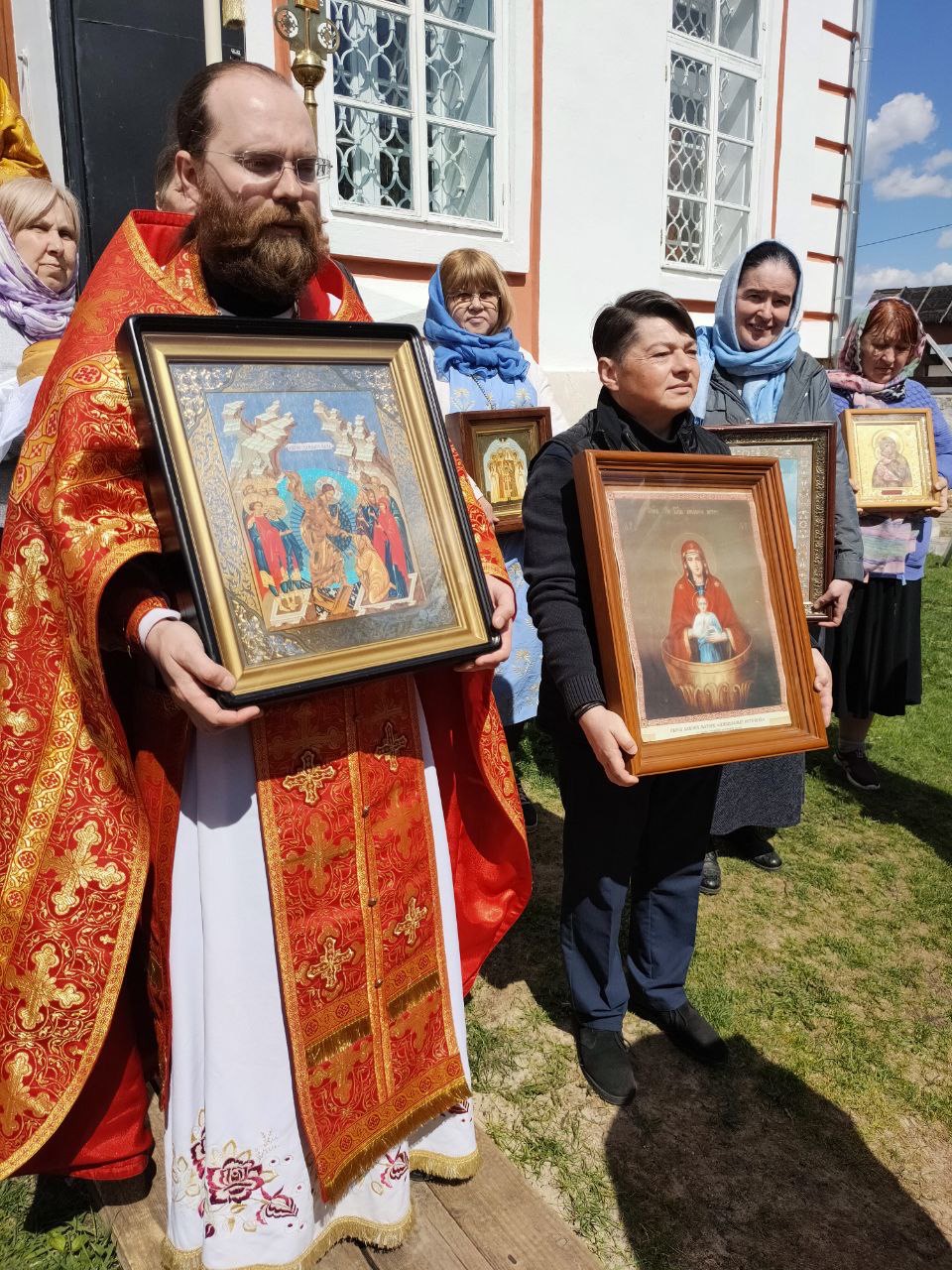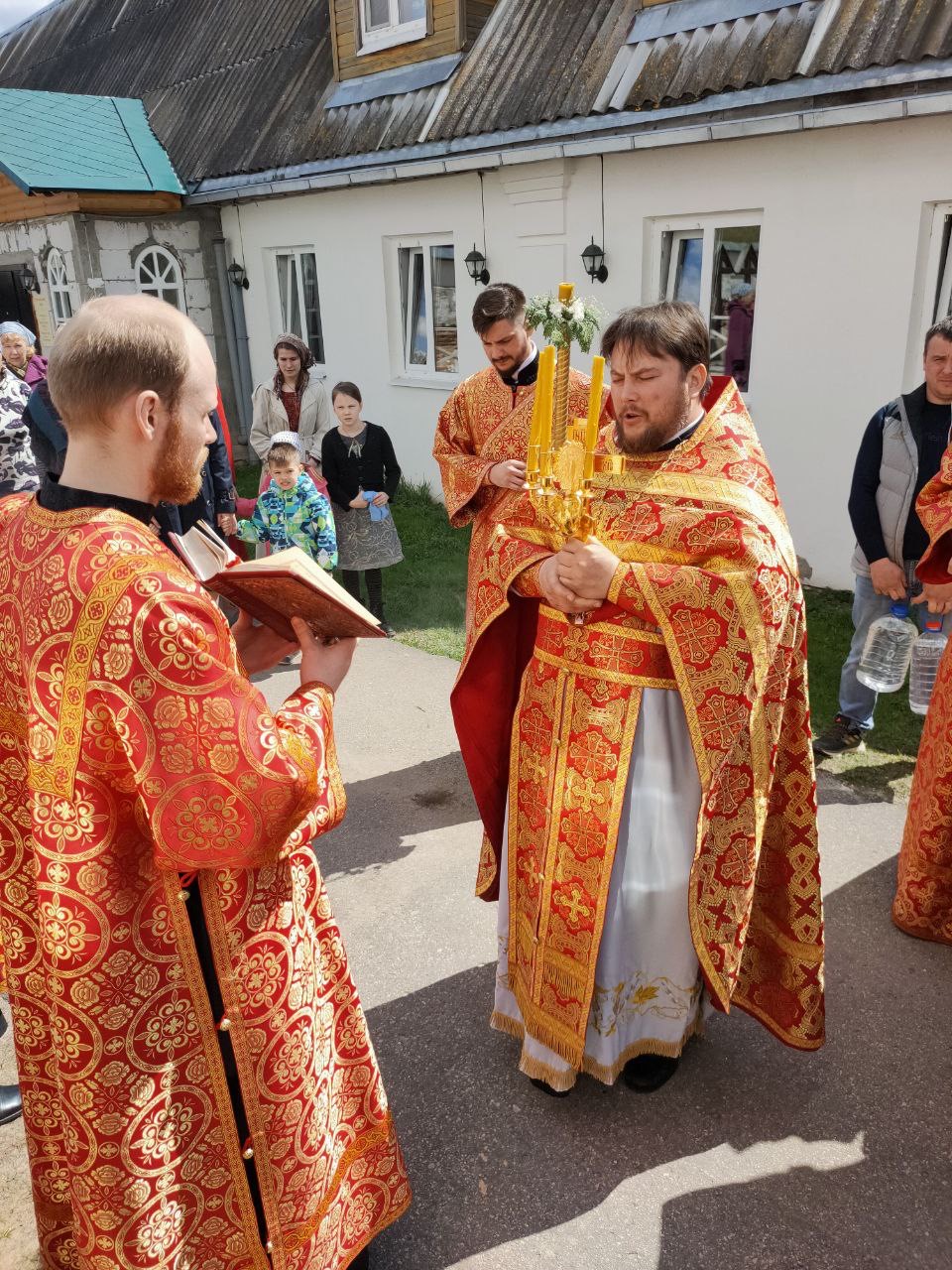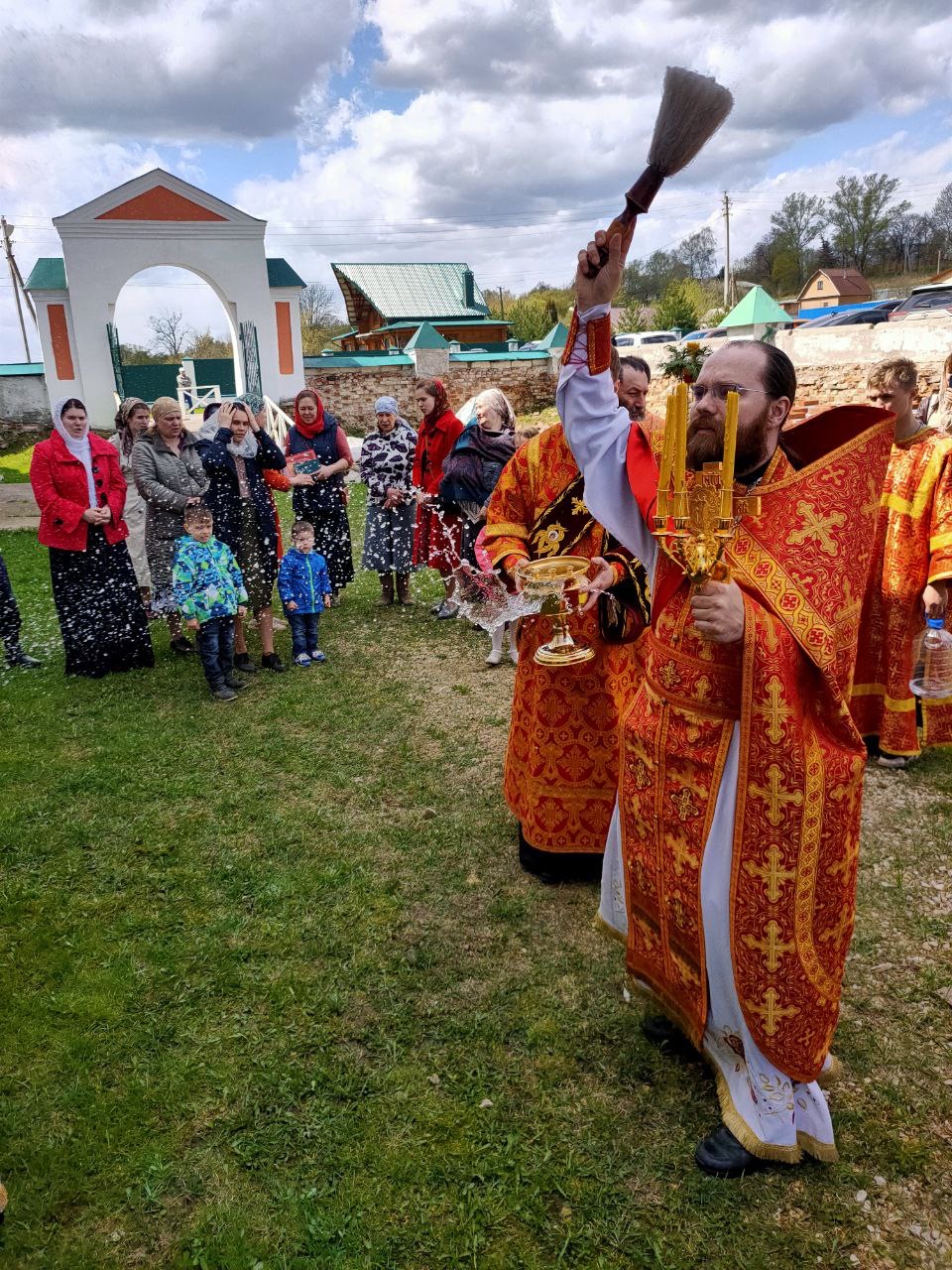 По заамвонной молитве священнослужители совершили освящение воды, а затем состоялся праздничный пасхальный крестный ход вокруг храма.
