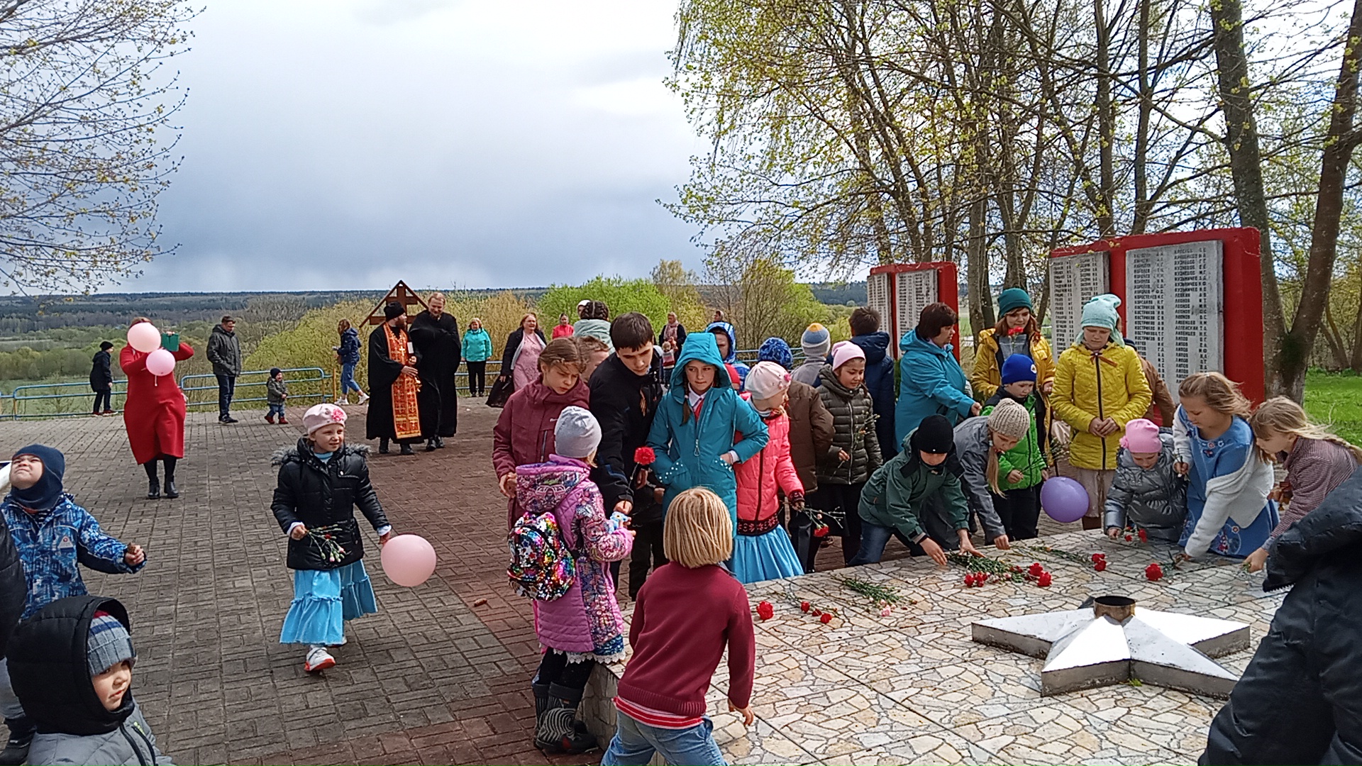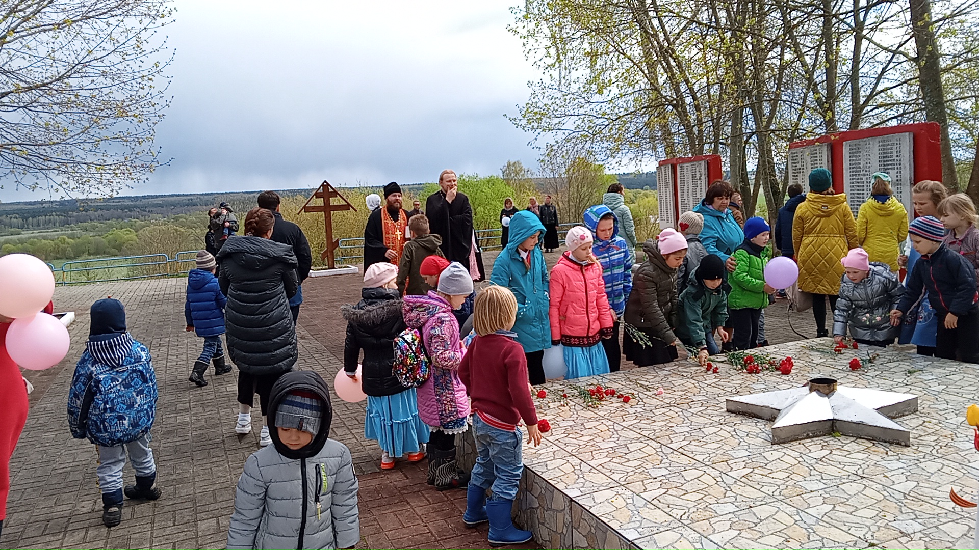 9 мая, в день Великой Победы, настоятель храма Благовещания Пресвятой Богородицы города Козельска иерей Сергий Барыкин и настоятель храма Преображения Господня в селе Нижние Прыски иерей Тихон Худяков совместно с воспитанниками Епархиального Социального центра помощи семье и детям «Рождественский» и воскресной школы храма Благовещения Пресвятой Богородицы отслужили благодарственный молебен и литию у Мемориала погибшим воинам в Великой Отечественной Войне в селе Нижние Прыски. По окончании литии дети возложили цветы к памятному знаку, прочитали фамилии павших сельчан. Из многих семей воевали все мужчины-от 3 до 10 человек.