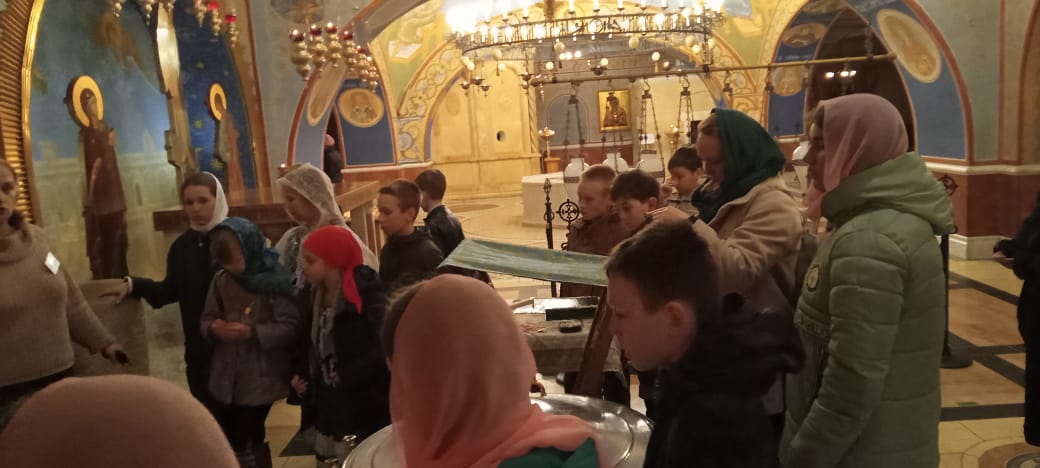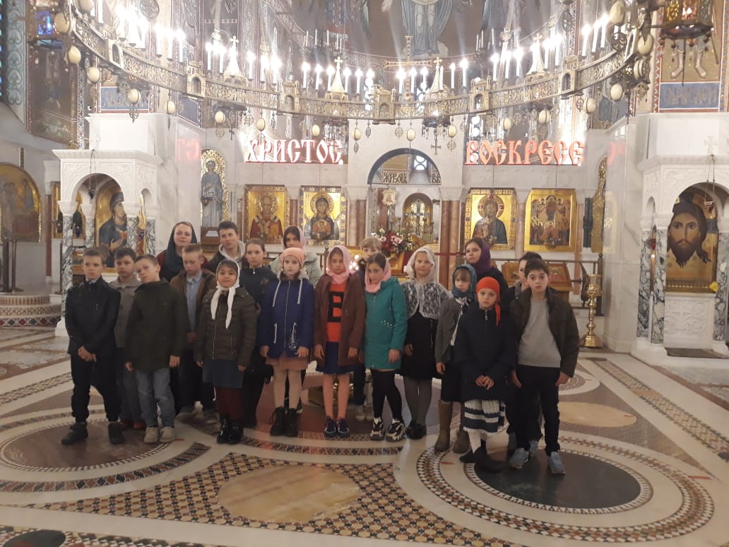 Дети встретились с настоятелем подворья монастыря Оптина Пустынь архимандритом Мелхиседеком, который благословил детей и сказал им много теплых слов. Экскурсия в храме Покрова Пресвятой Богородицы для детей была не первый раз, поэтому встречали детей в храме как старых добрых друзей. Затем наши путешественники поехали в храм Христа Спасителя.