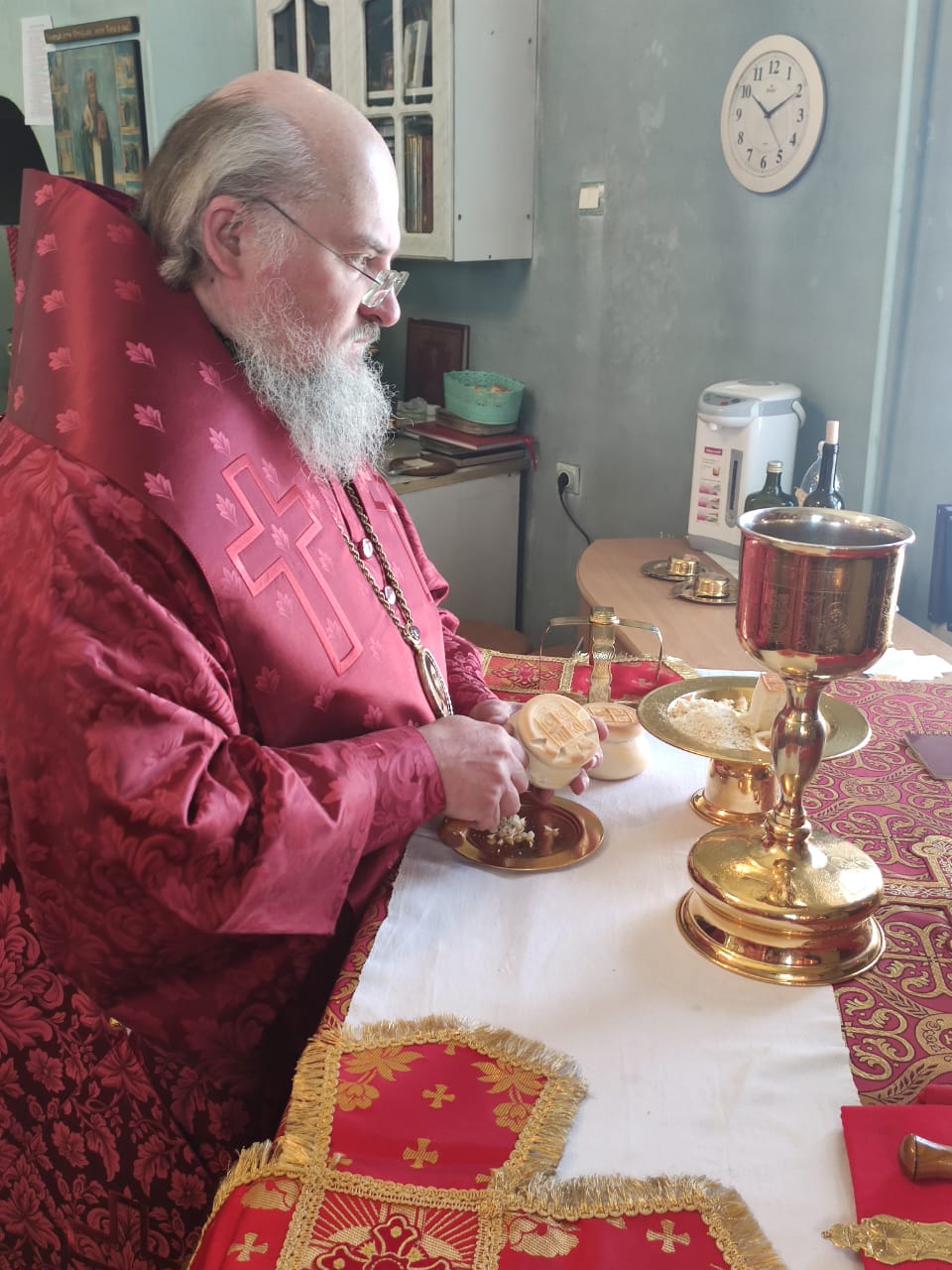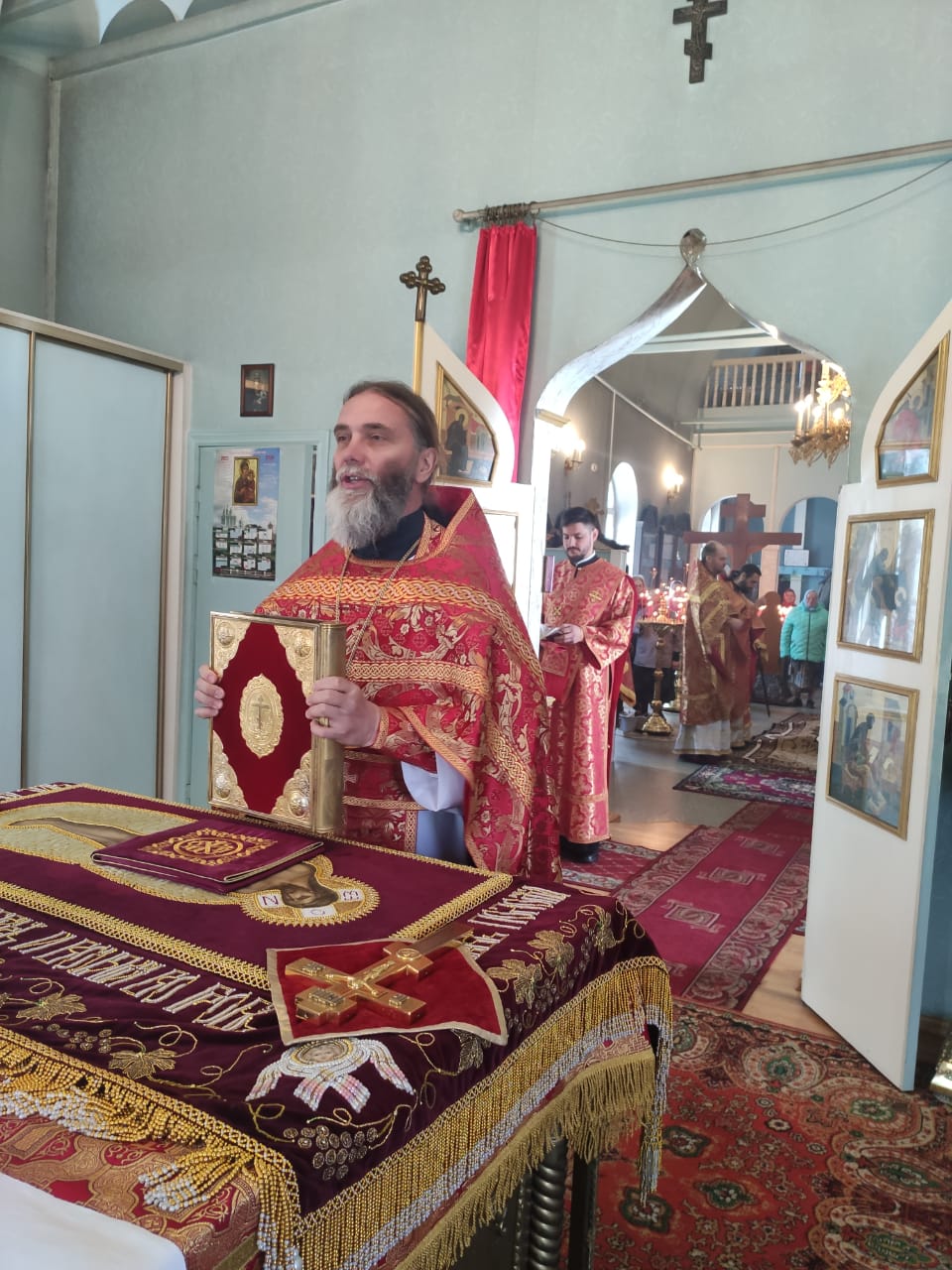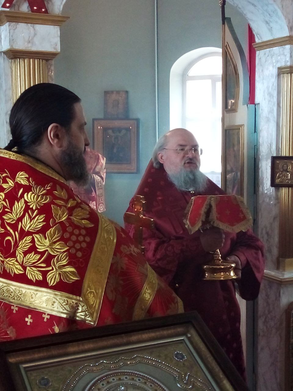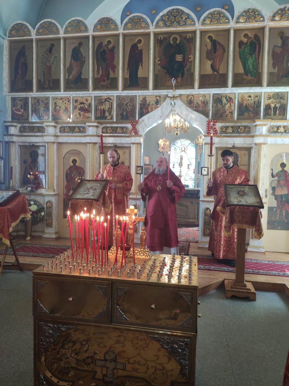 Преосвященнейшему владыке сослужили: благочинный округа протоиерей Сергий Вишняков, протоиерей Павел Синицын – настоятель храма, протоиерей Георгий Кривенко, протоиерей Антоний Хатунцев, иерей Павел Кузнецов, диакон Евгений Васильев и иеродиакон Лука (Старостин).