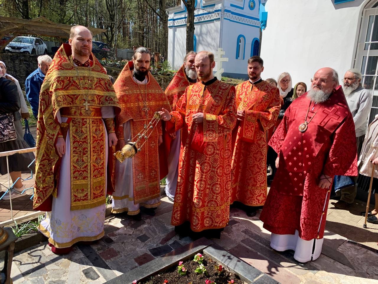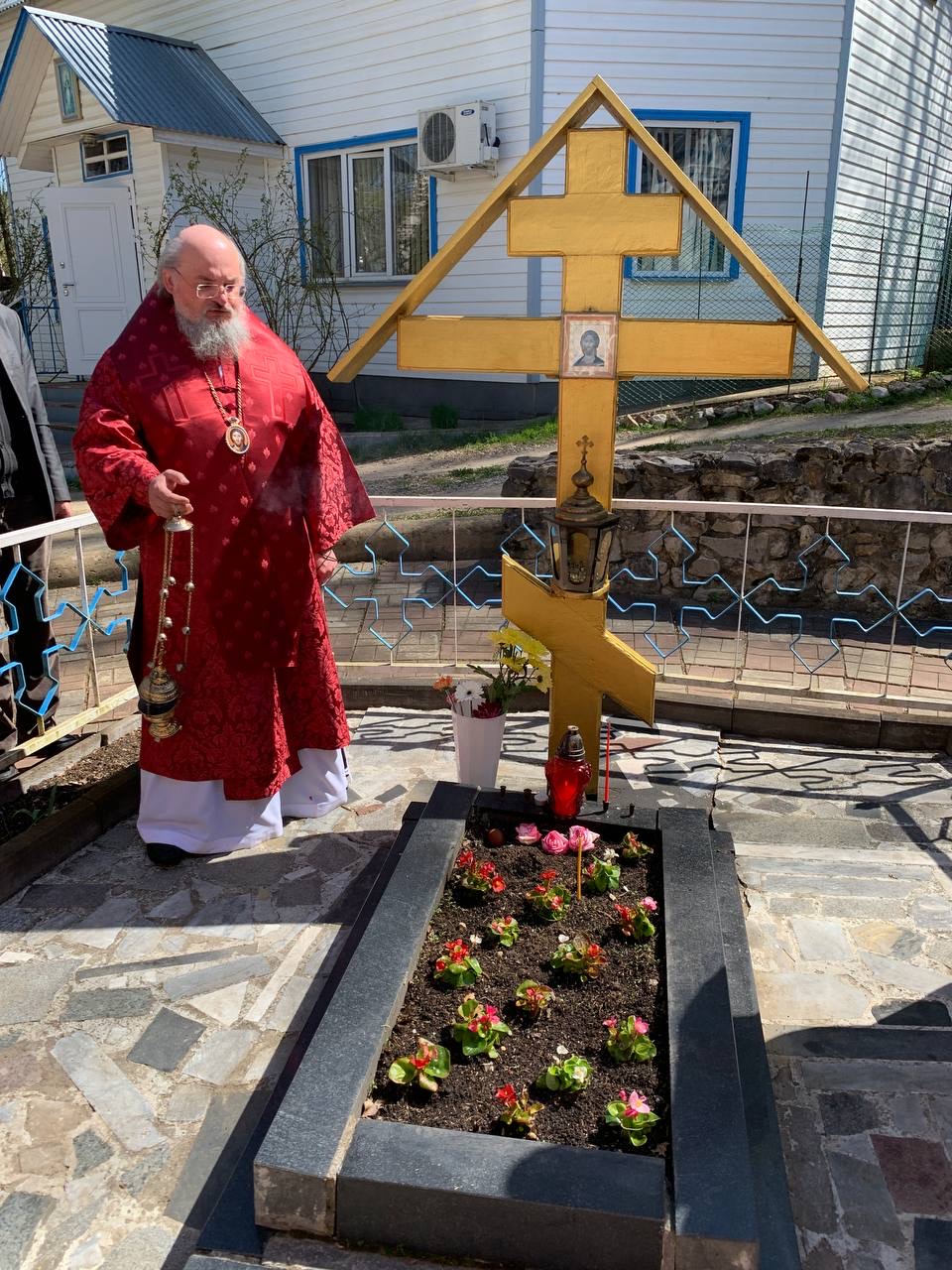 После храмового богослужения владыка Никита совершил панихиды на могилах своих сродников, покоящихся на городском кладбище.
