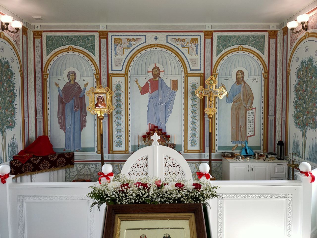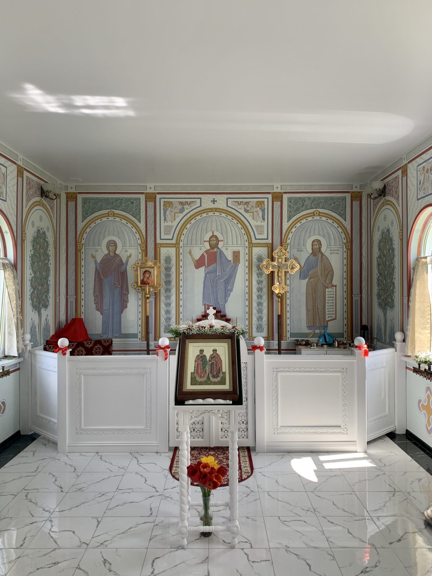 Весной 2017 года вставлены окна, и началась внутренняя отделка. Был сделан потолок, установлен теплый пол и оштукатурены стены. Весной и летом 2018 года полностью закончили внешнюю отделку. Первый молебен был проведен в середине декабря 2018 года. После чего раз в месяц священник Лев Шиповский, которому было поручено окормление прихода, совершал молебны для местного населения. Отцом Львом был найден человек, который взялся расписывать храм. Иконописец из Москвы, Олег. Им было полностью проработано внутреннее убранство и выбран стиль оформления алтаря.