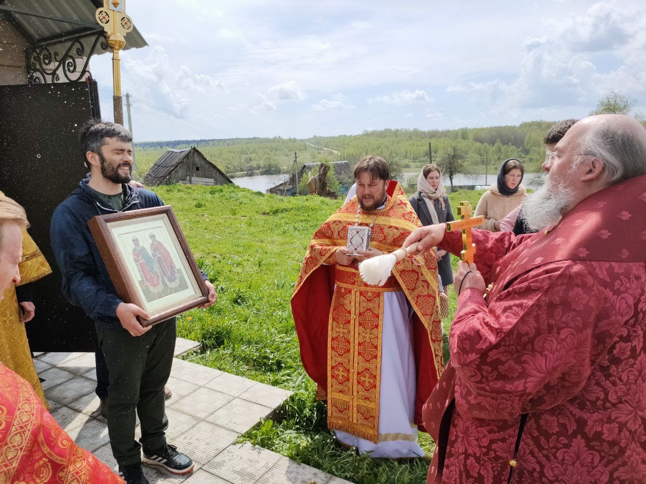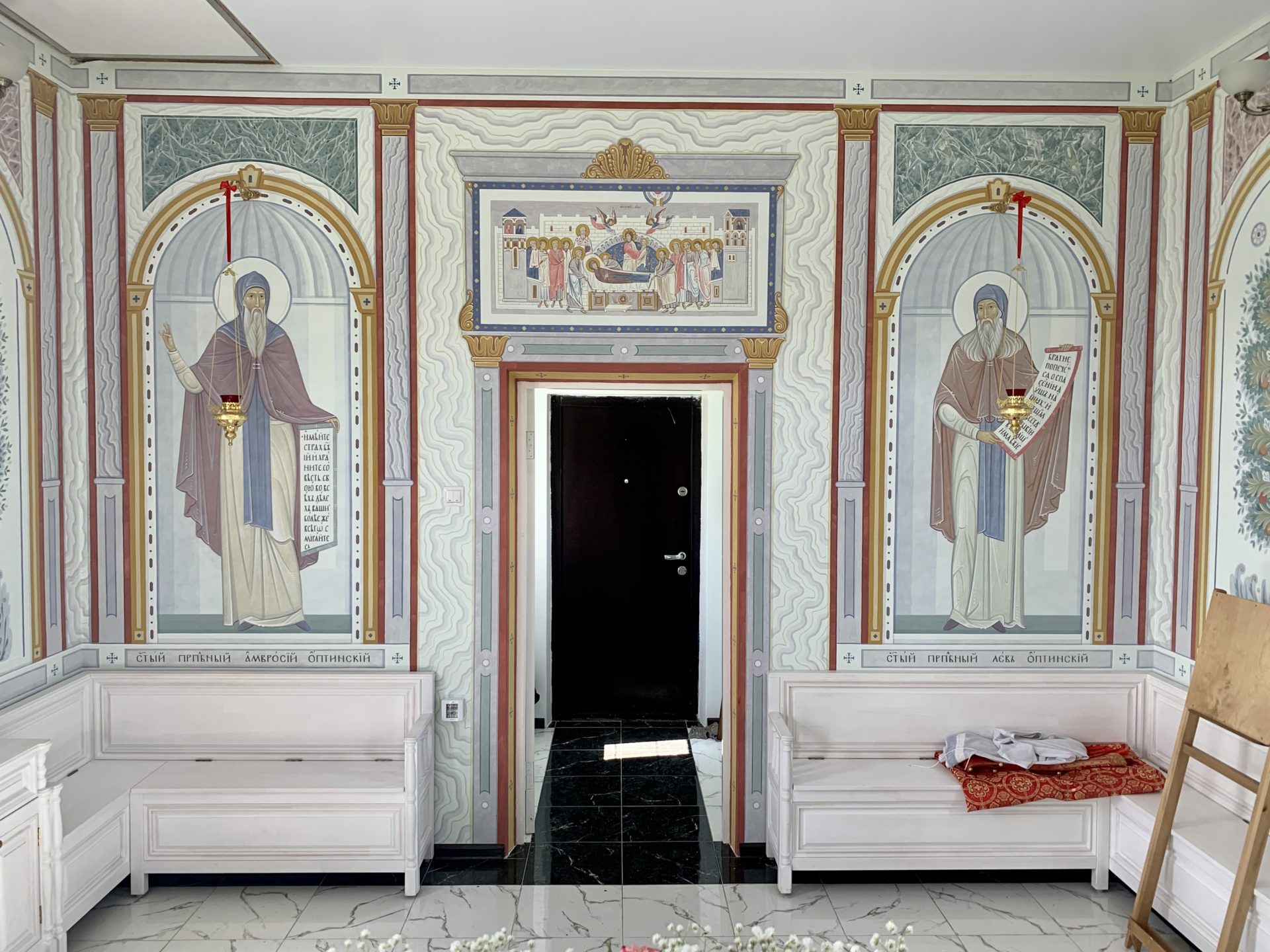 1-го мая 2019 года Олег приступил к росписи стен. 15 мая иереями  Львом Шиповским, Тихном Худяковым и Сергием Барыкиным был отслужен молебен в день памяти благоверных князей Бориса и Глеба и совершен крестный ход. Это событие совпало с Пасхальными днями. Летом были заказаны алтарная преграда и сам алтарь, изготовлением которых занимался мастер из Козельска. 9 июня была сделана отмостка и уложена плитка вокруг храма и вымощена тропинка к входу. В конце июля начало августа была закончена роспись стен и установлены алтарная преграда и сам алтарь. отец Лев постоянно проводил водоствятные молебны и требы для верующих.  Основные работы были закончены.