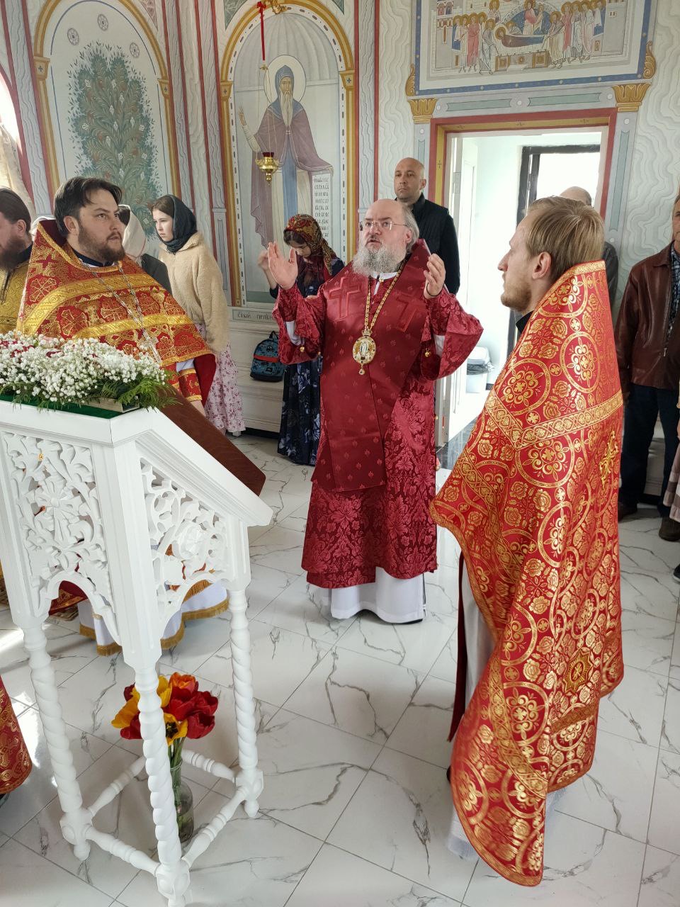 Архипастырю сослужили: протоиерей Антоний Хатунцев, иерей Лев Шиповский – настоятель храма и диакон Евгений Васильев.
