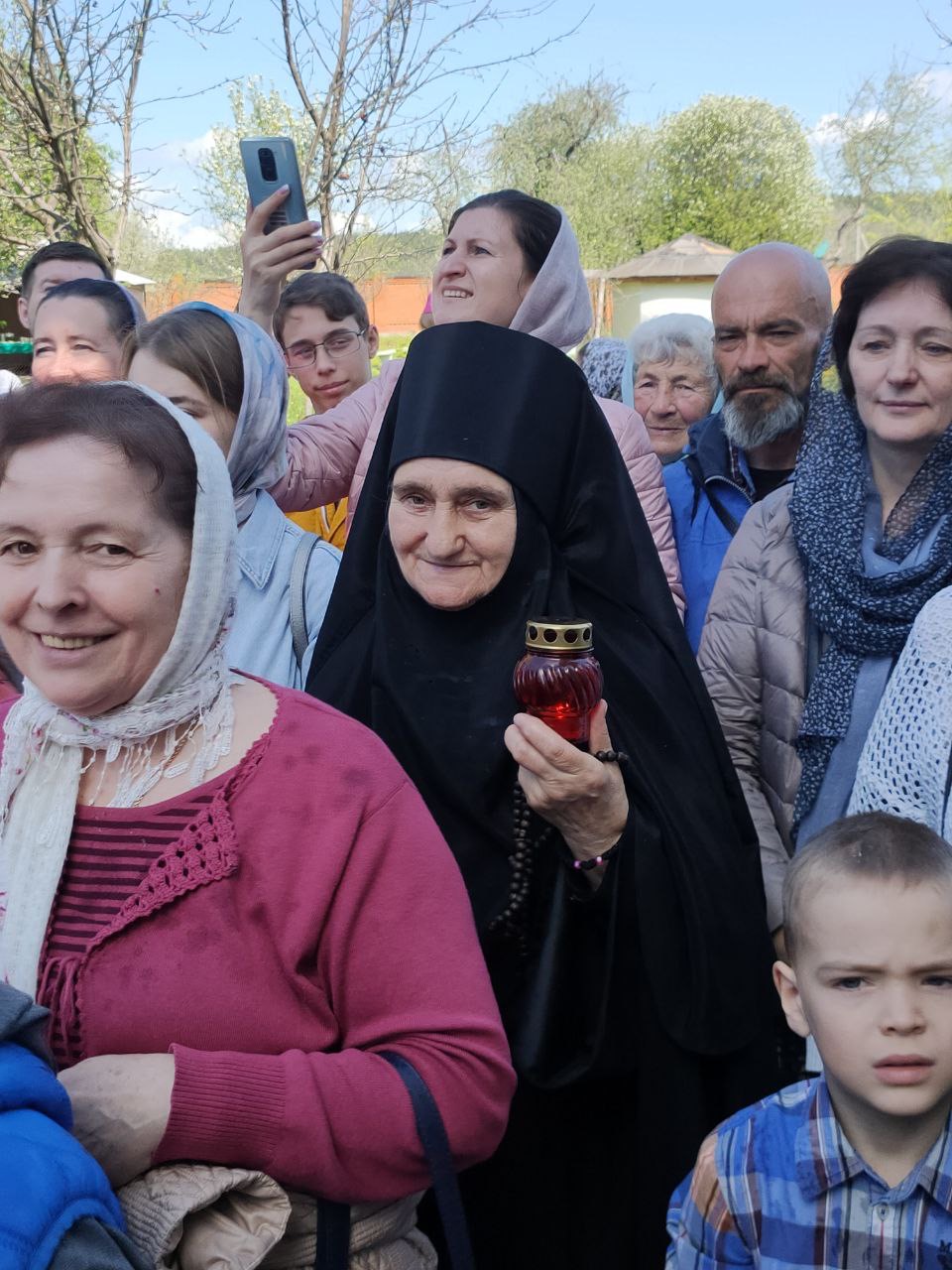 За литургией молились: старшая сестра Мироносицкой женской монашеской общины монахиня Иоанна (Павлова), а также игумения монастыря Успенская Феклина пустынь в селе Сенино Виталия (Кочетова), старшая сестра женской монашеской общины в честь мучеников Антипы и Назария в селе Антипово Козельского района монахиня Афанасия (Алексеева), старшая сестра Вознесенской монашеской женской общины в городе Козельске монахиня Анастасия (Дремина).